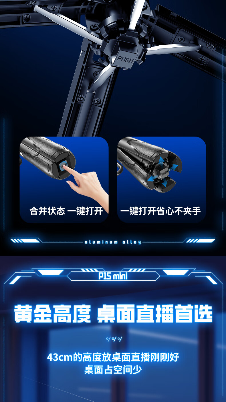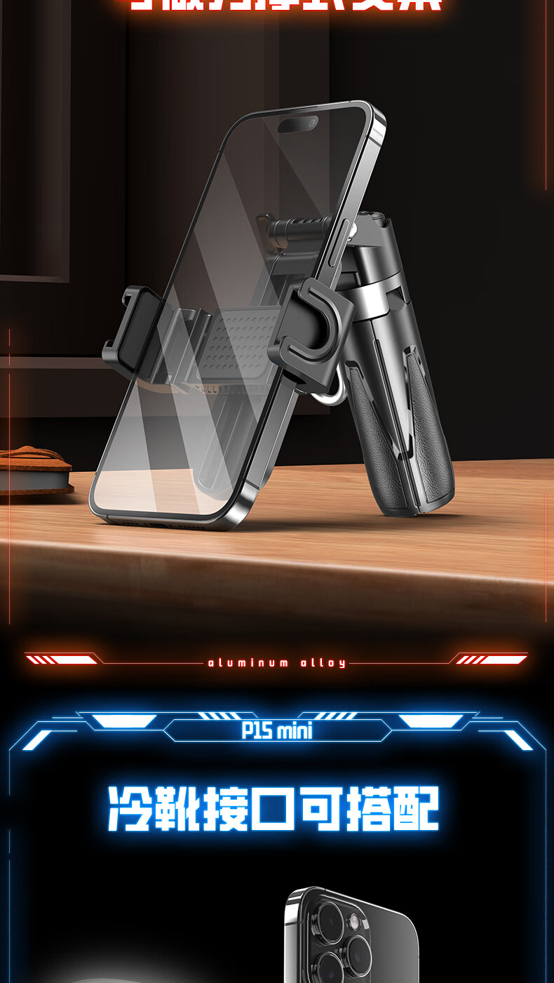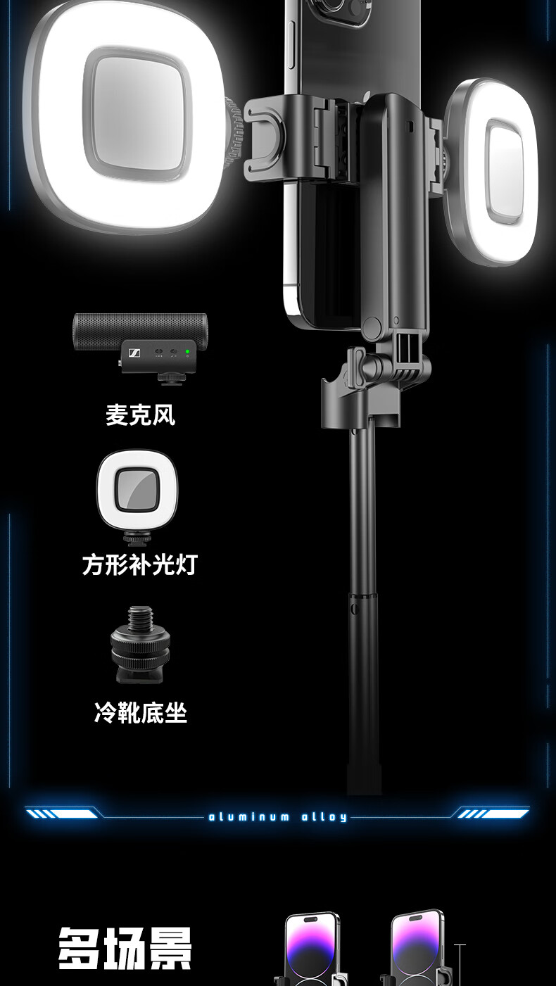 逗映(FUNSNAP)新款通用迷你自拍杆落地四脚支架360度旋转拍摄拍照神器多功能手持蓝牙铝合金mini自拍杆 【黑色基础款】手持桌面单柄助拍+充电蓝牙遥控器