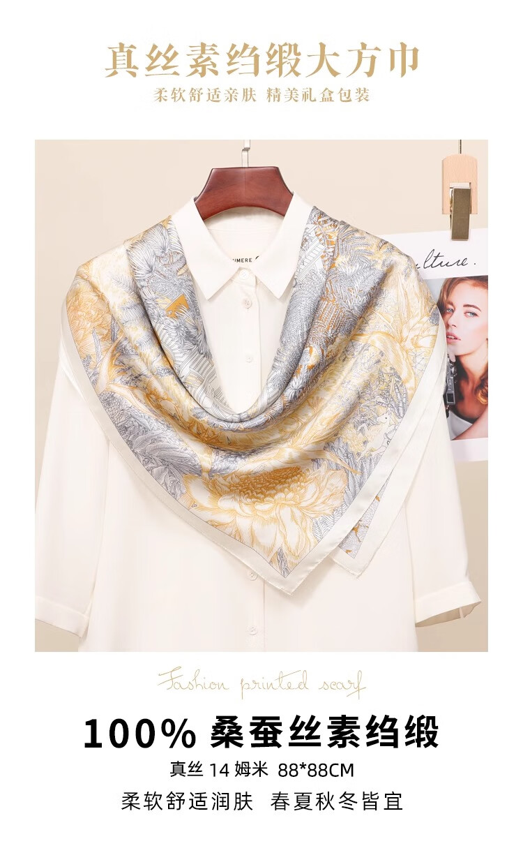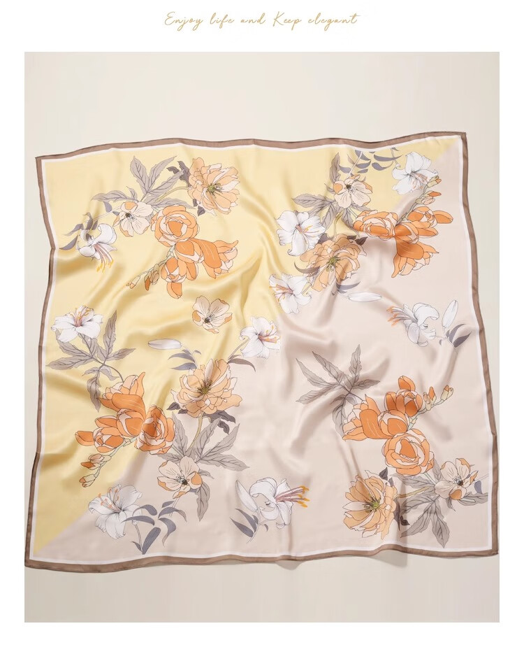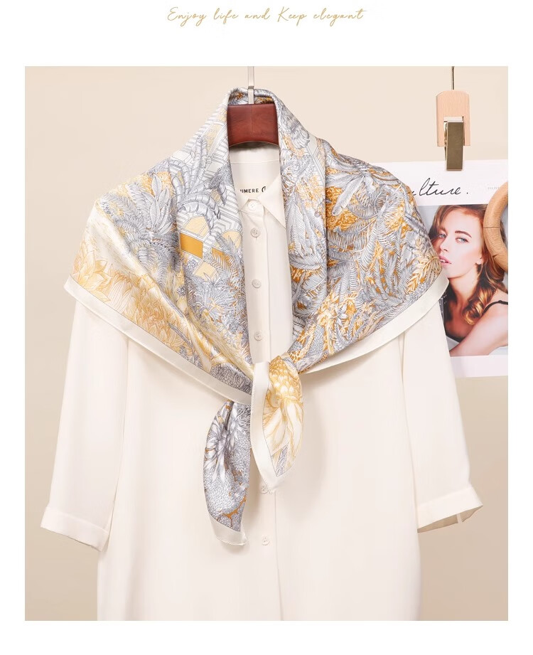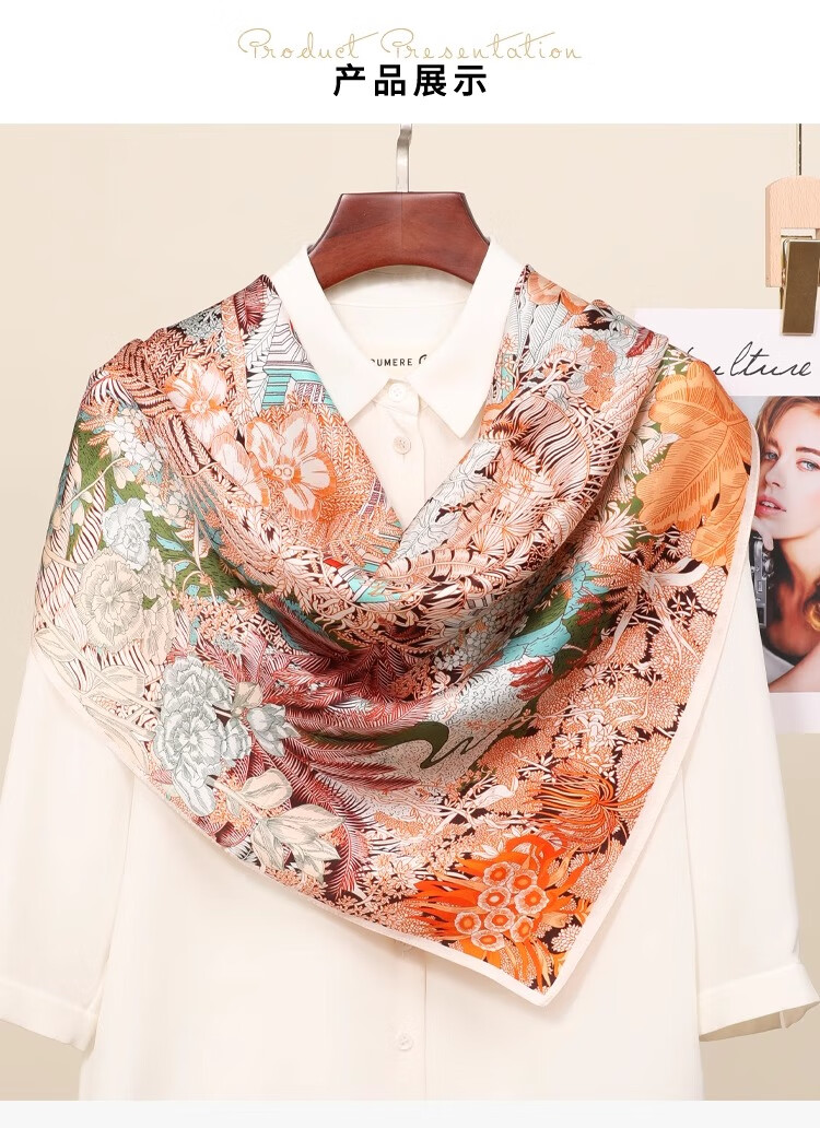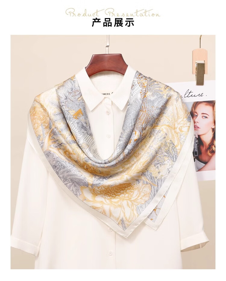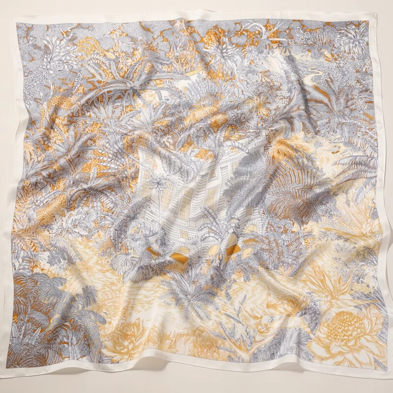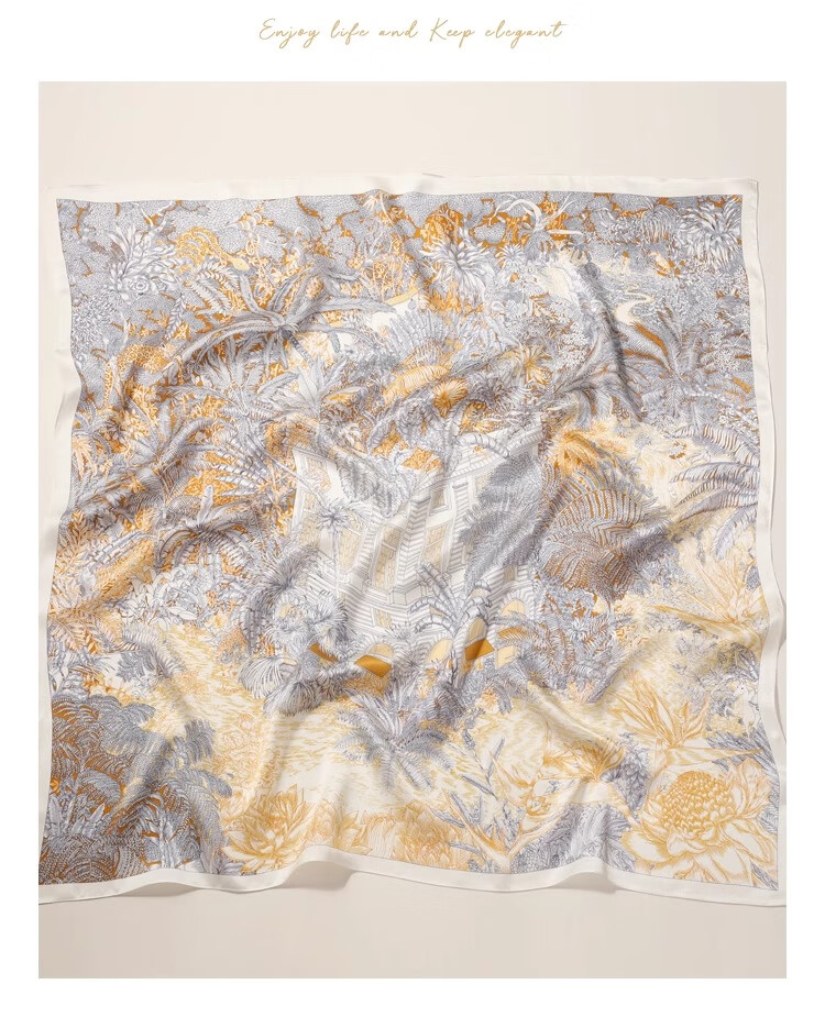 吴蚕里(WUCANLI)真丝丝巾大方巾女桑蚕丝披肩2025新款妈妈生日礼物高级感时尚围巾 秘境花园-米色 88CM*88CM