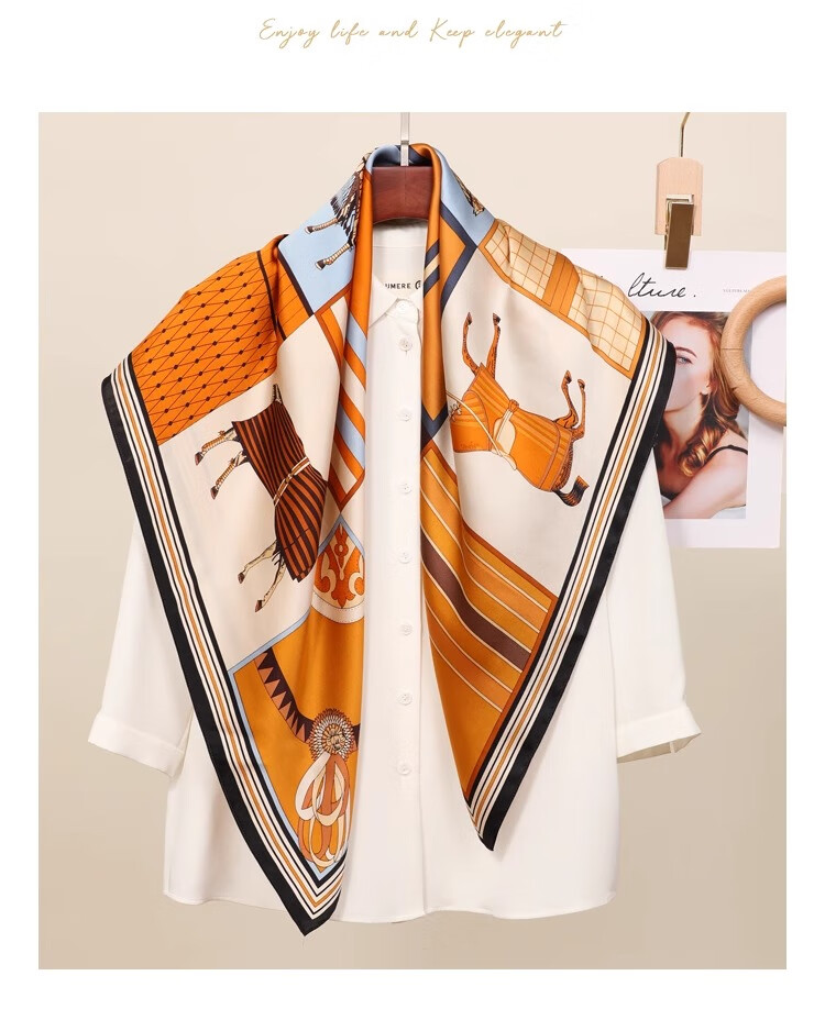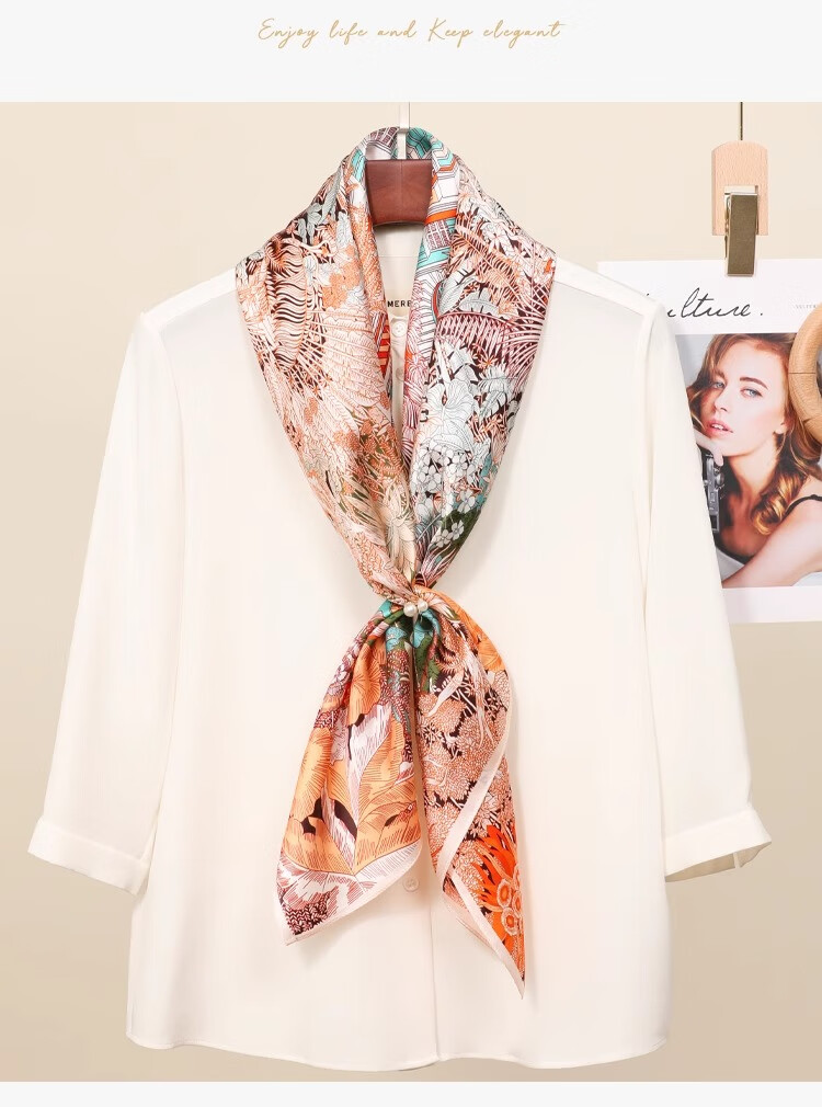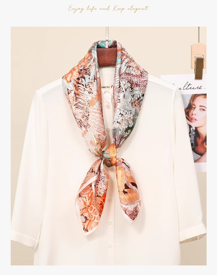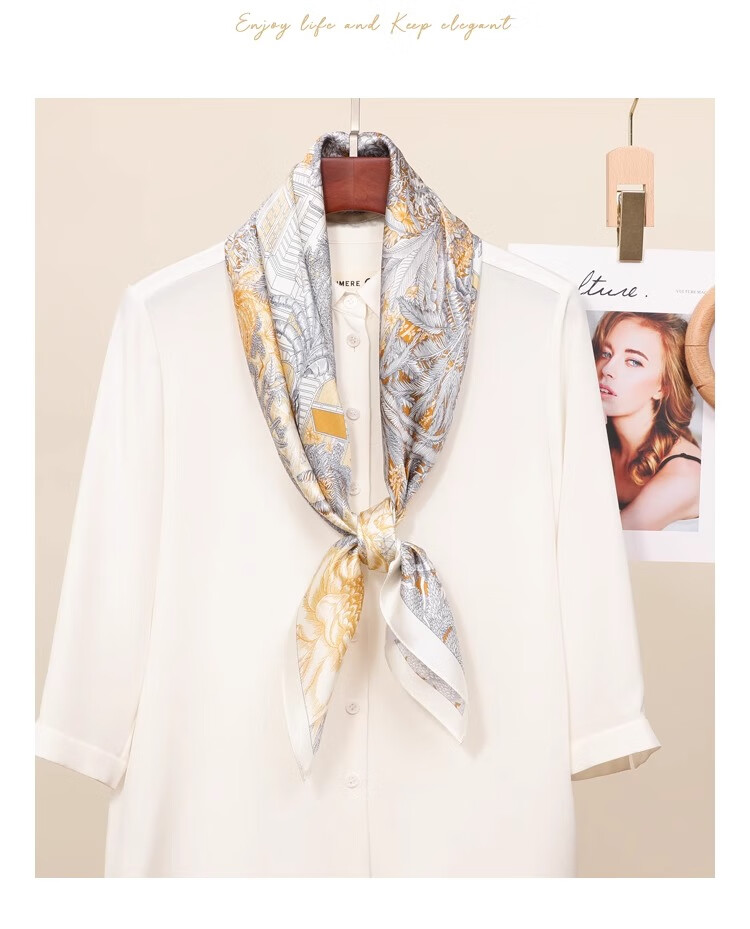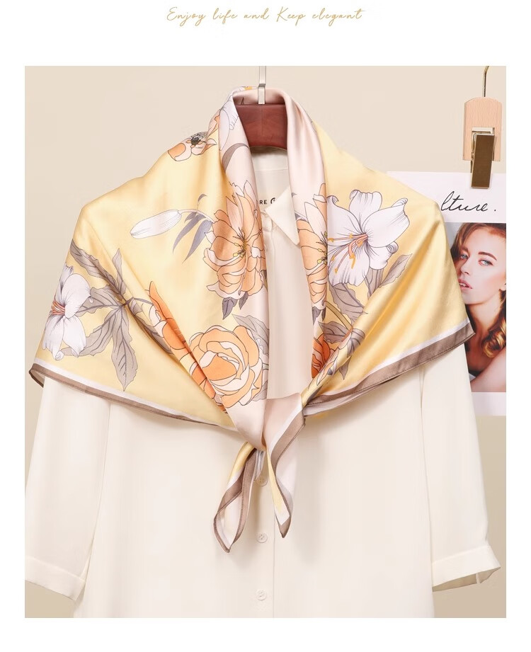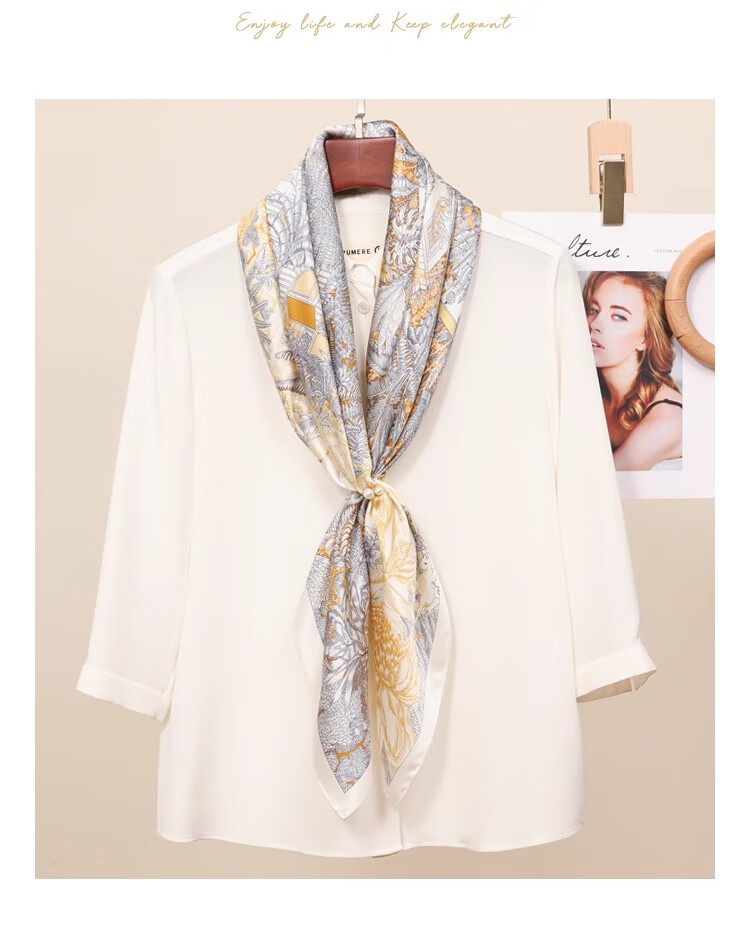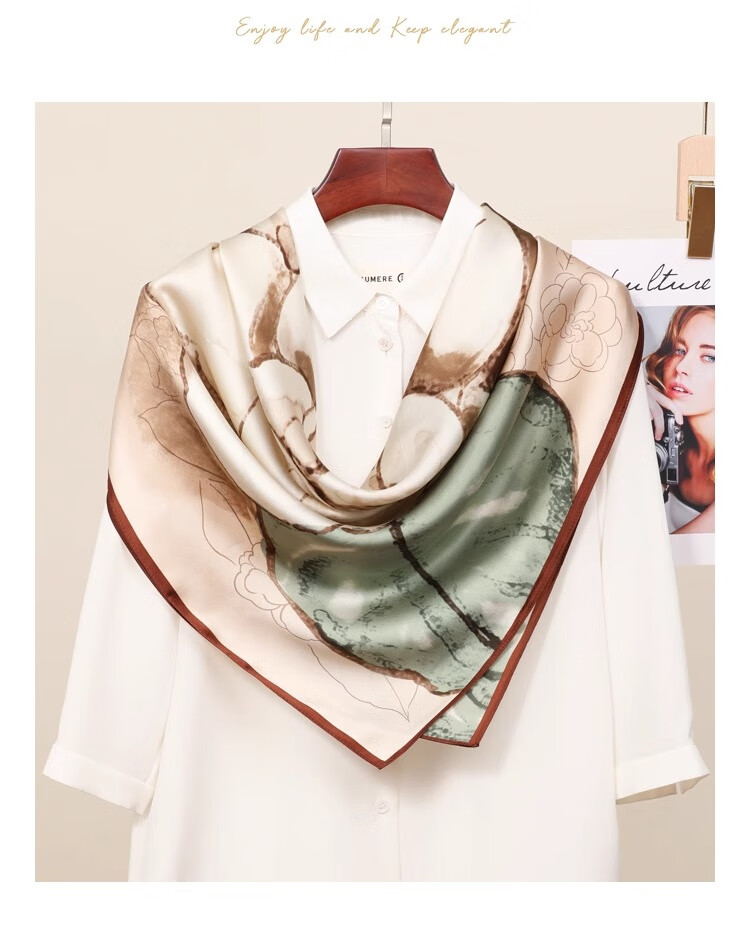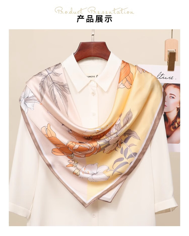 吴蚕里(WUCANLI)真丝丝巾大方巾女桑蚕丝披肩2025新款妈妈生日礼物高级感时尚围巾 秘境花园-米色 88CM*88CM