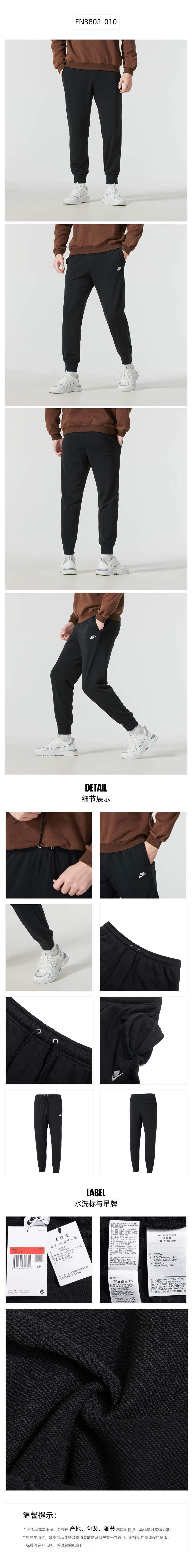 Nike (NIKE) g costume de sport pour hommes, POLO d'automne en pur coton, T-shirt à manches courtes à revers, pantalon de course, pantalon décontracté à serrage à la cheville FN3895-010+BV2680-010 2XL