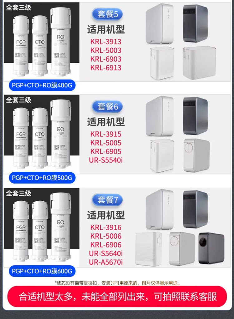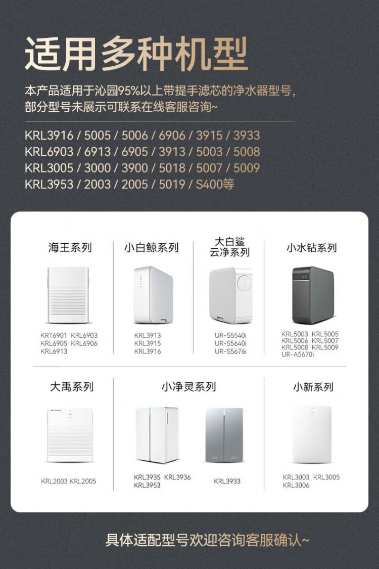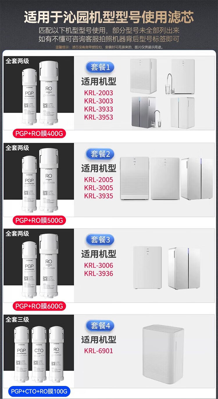 欧特尼适配沁园净水器滤芯KRL提拉系列小新小水钻小净灵小白鲸RO反渗透膜净水机 KRL3006/3936【PGP+ RO】