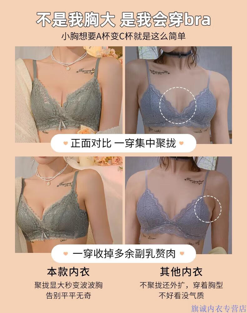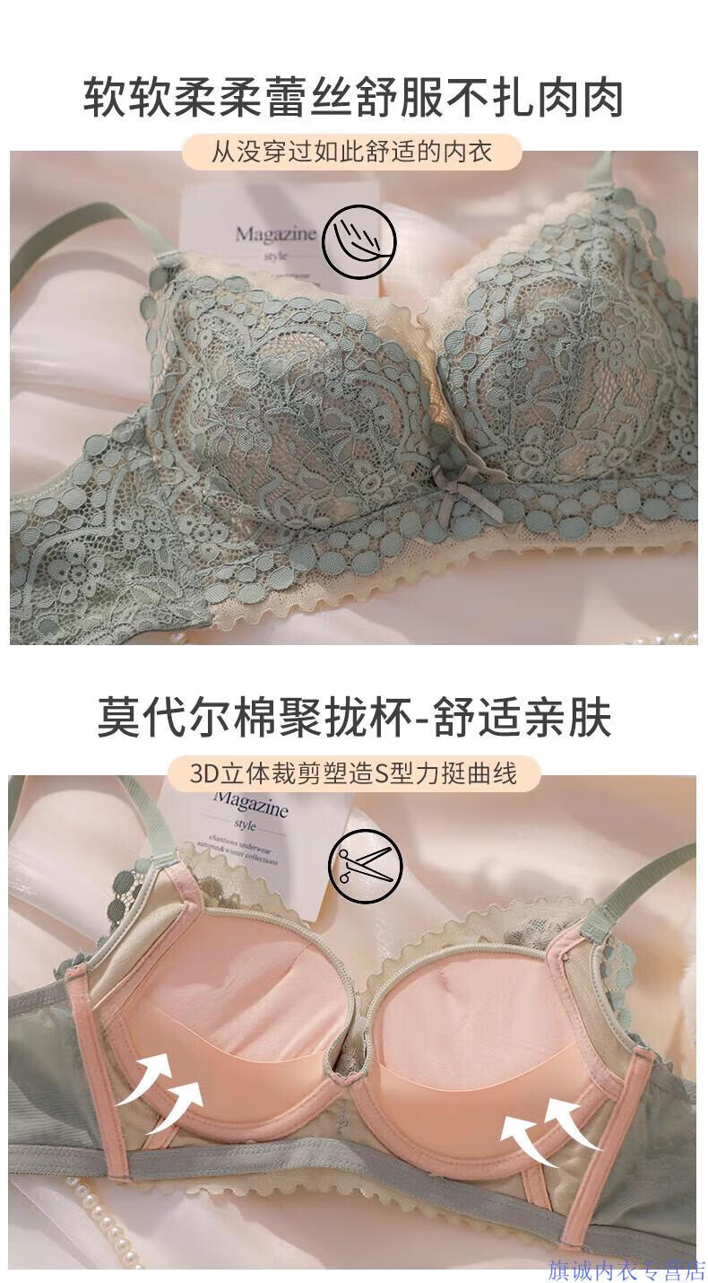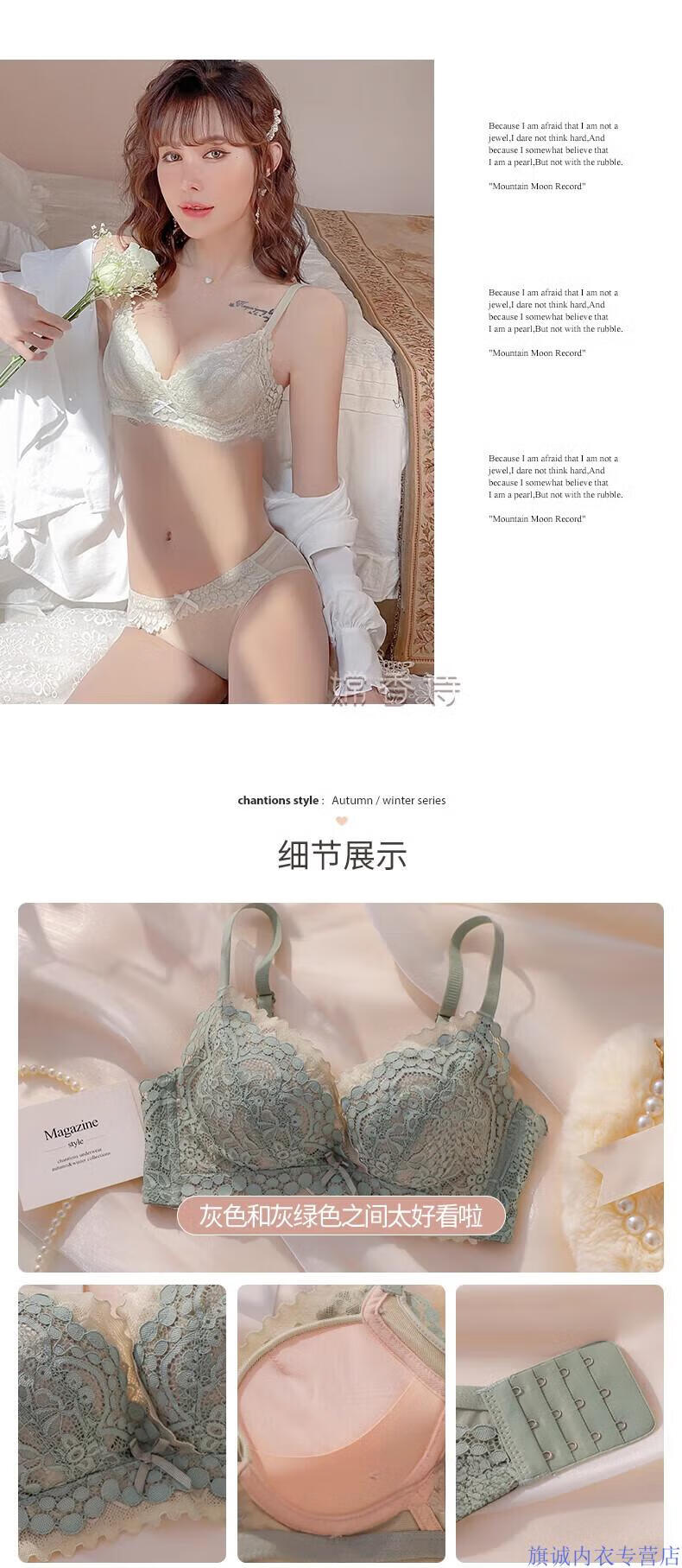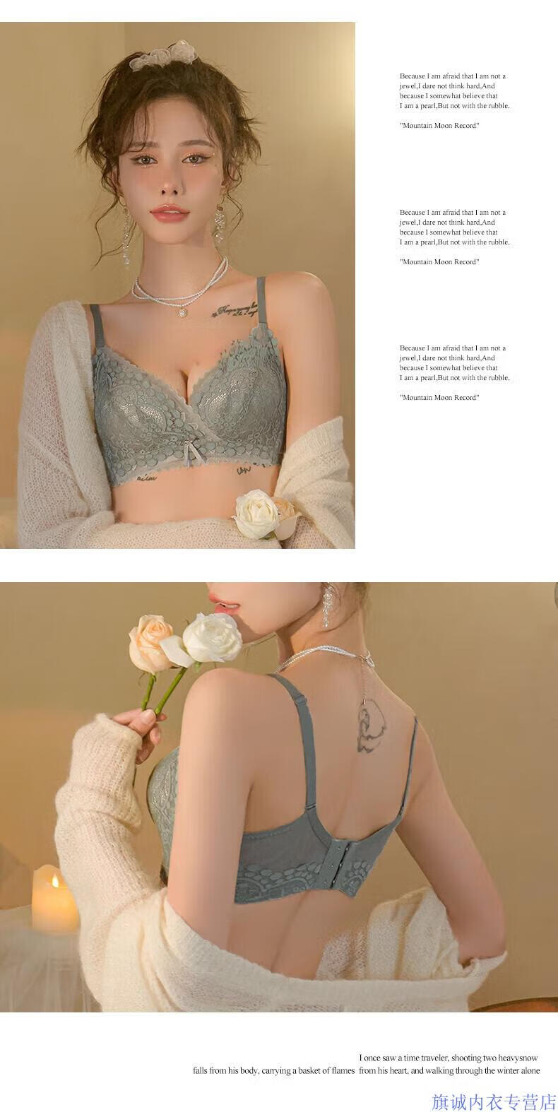 维多利亚的格调维密系列内衣女士聚拢小胸显大无钢圈收副乳防下垂文胸罩套装 灰紫色-套装【小胸聚拢】 80B 80/36B 【舒适无钢圈】