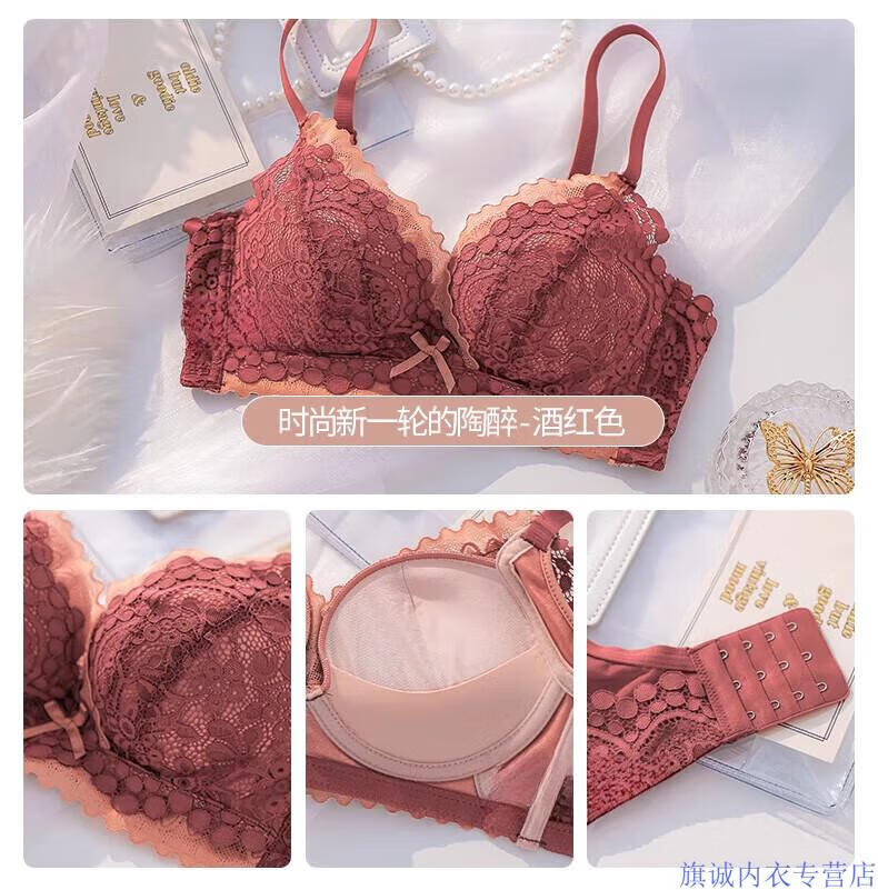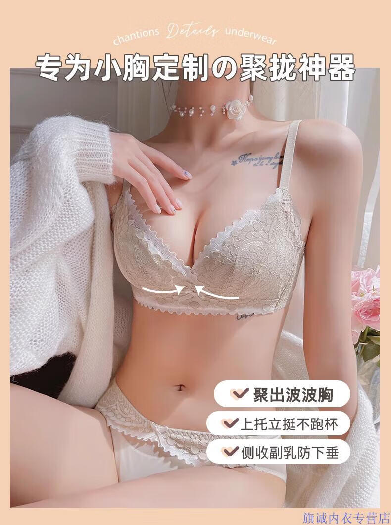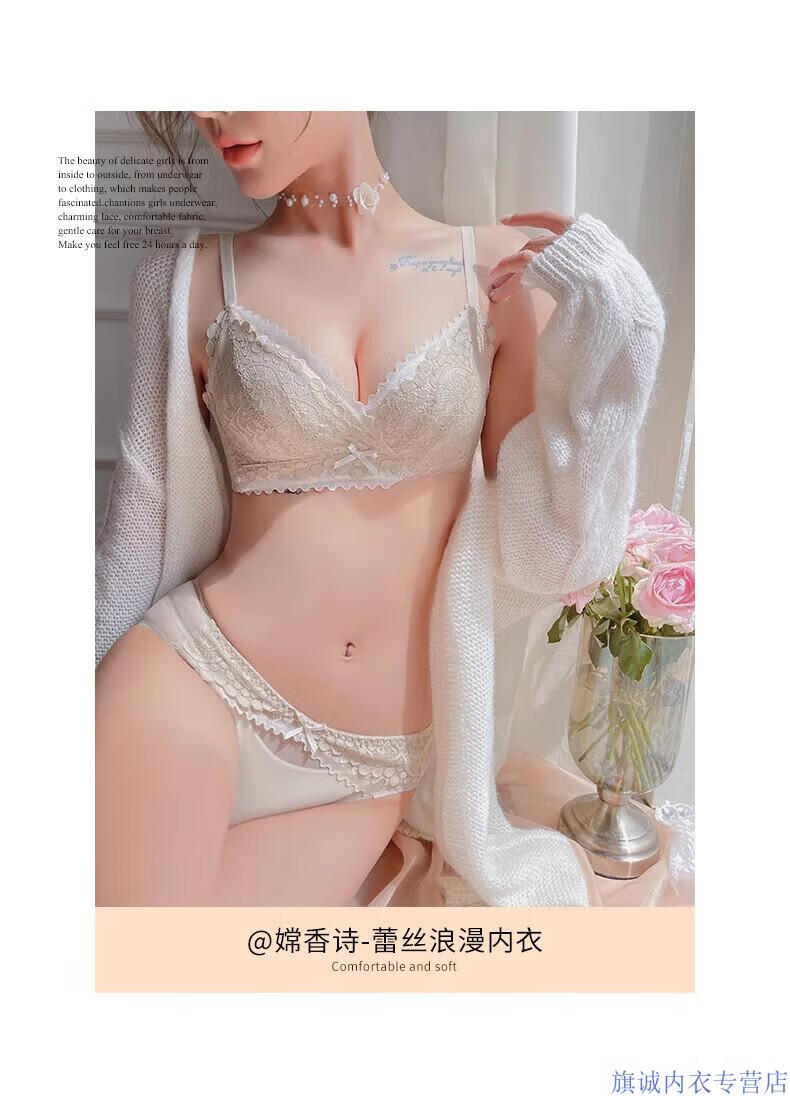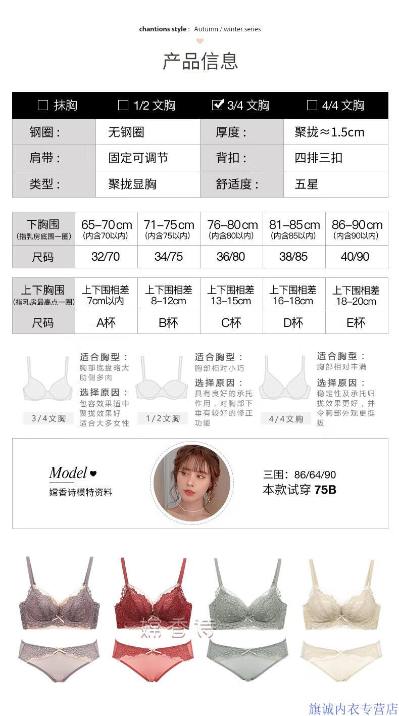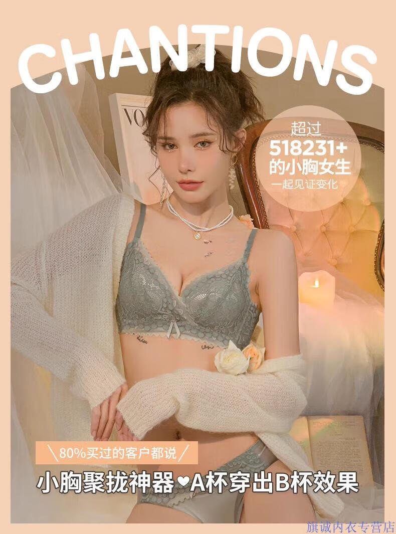 维多利亚的格调维密系列内衣女士聚拢小胸显大无钢圈收副乳防下垂文胸罩套装 灰紫色-套装【小胸聚拢】 80B 80/36B 【舒适无钢圈】