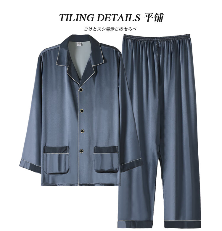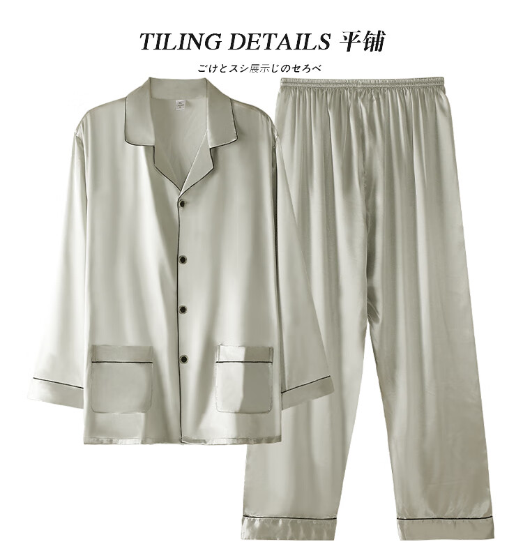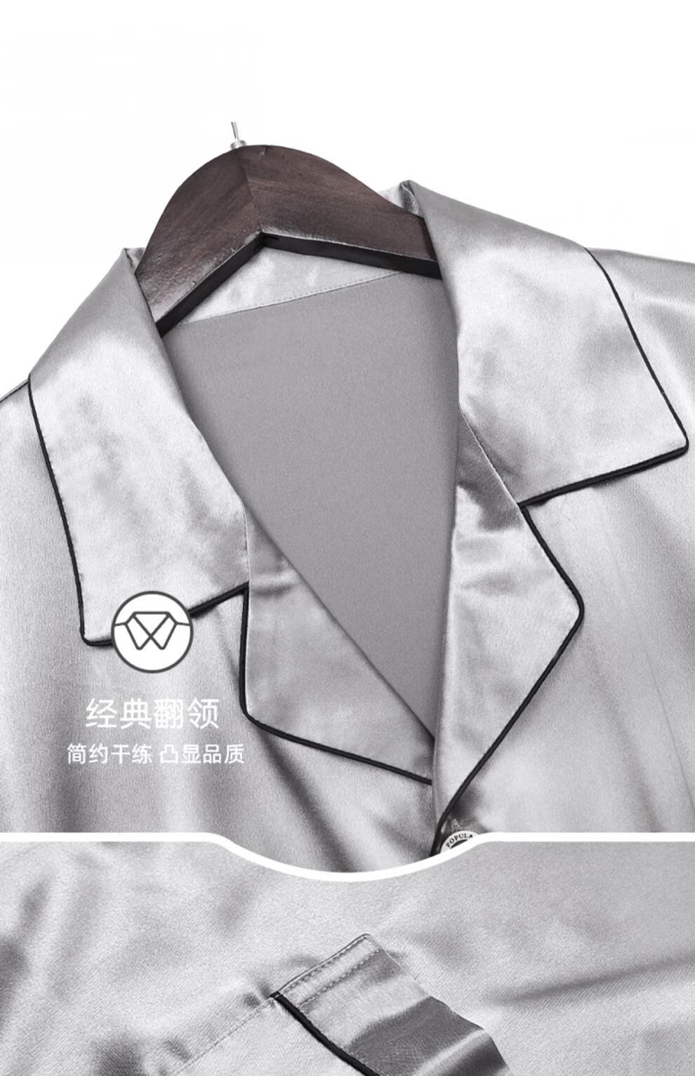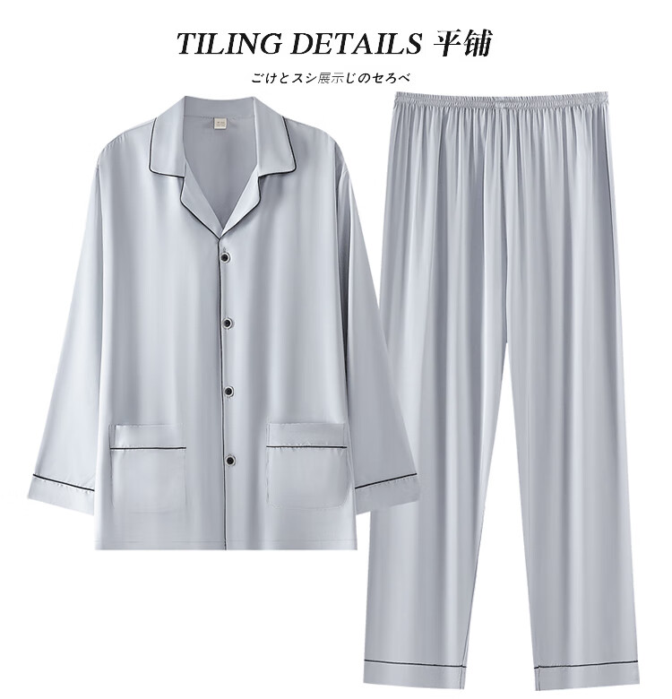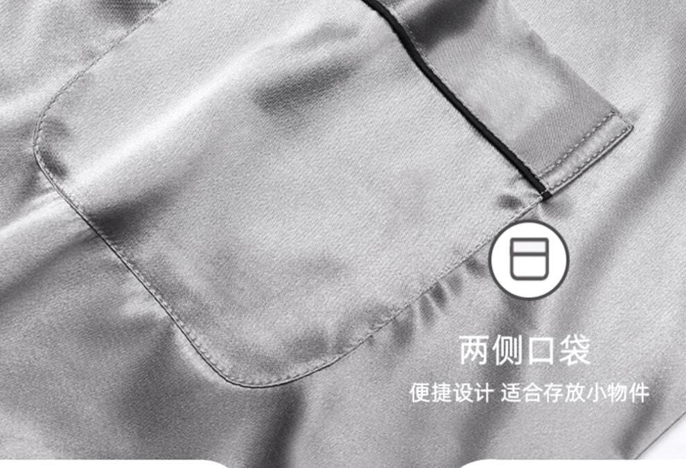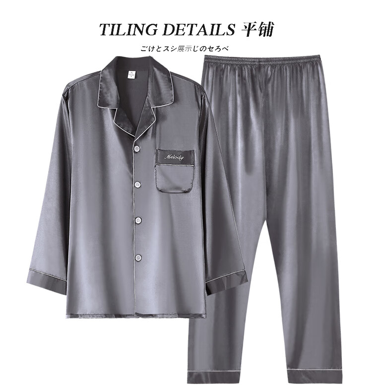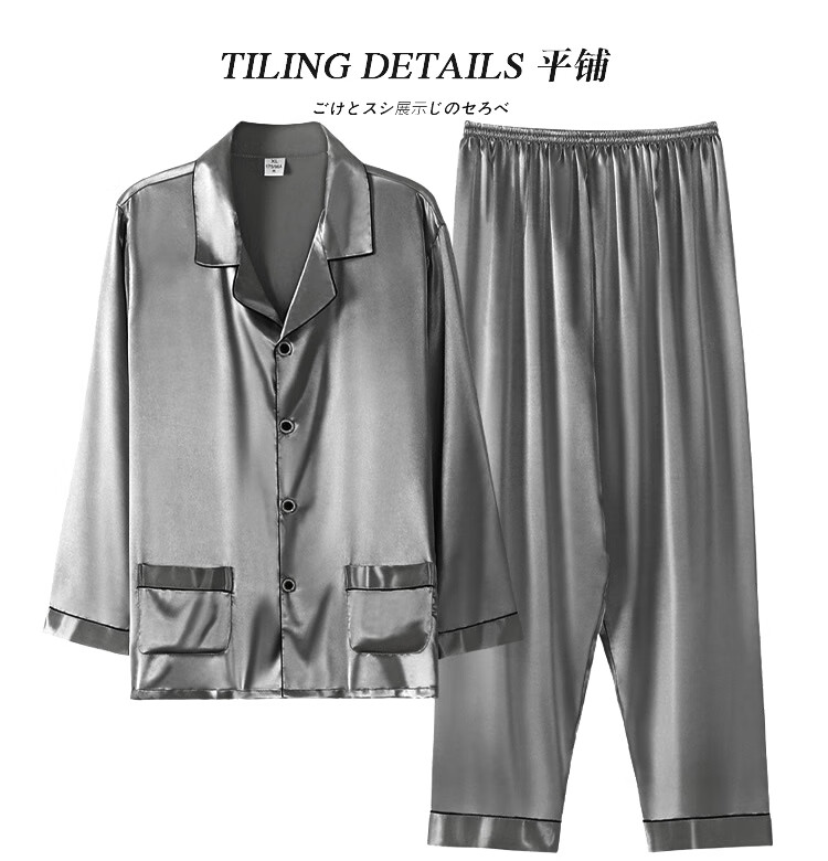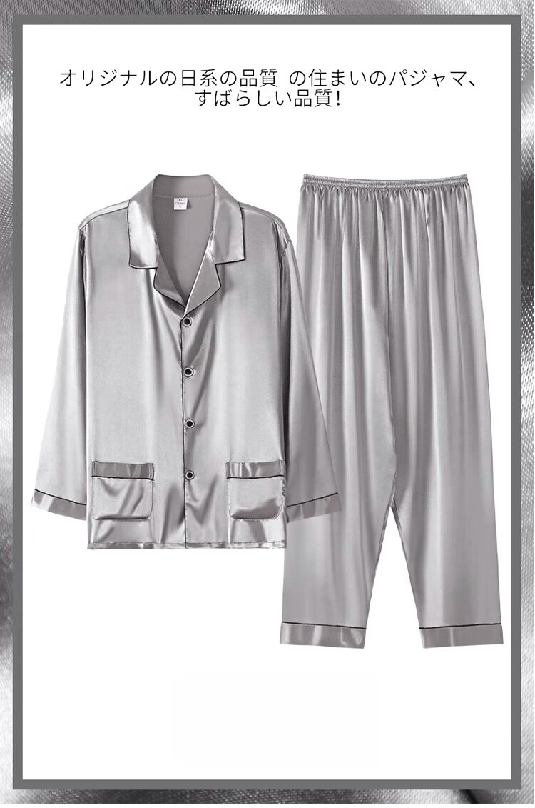 浪莎(LangSha)男士真丝睡衣春夏季长袖家居服夏天薄款高级感真丝绸缎加大码套装 6630 深灰色 M 身高160-165体重100-120斤