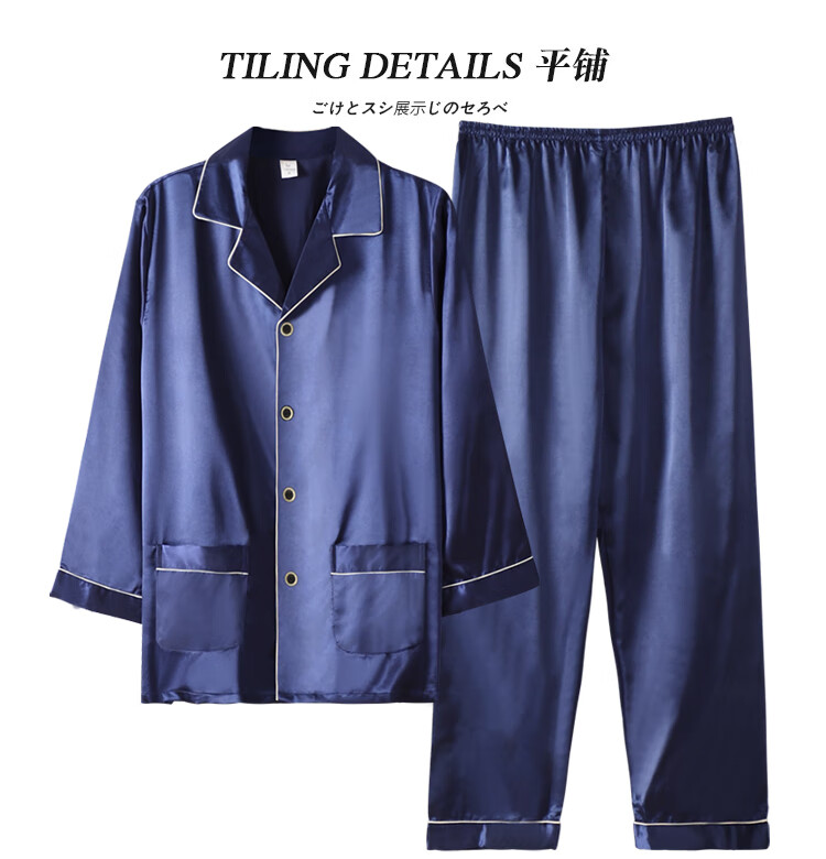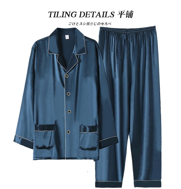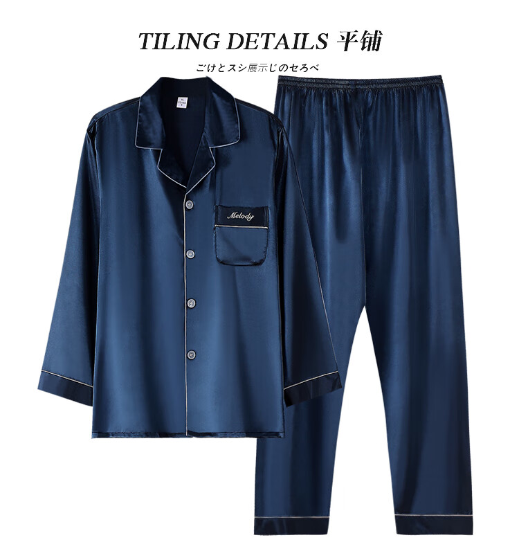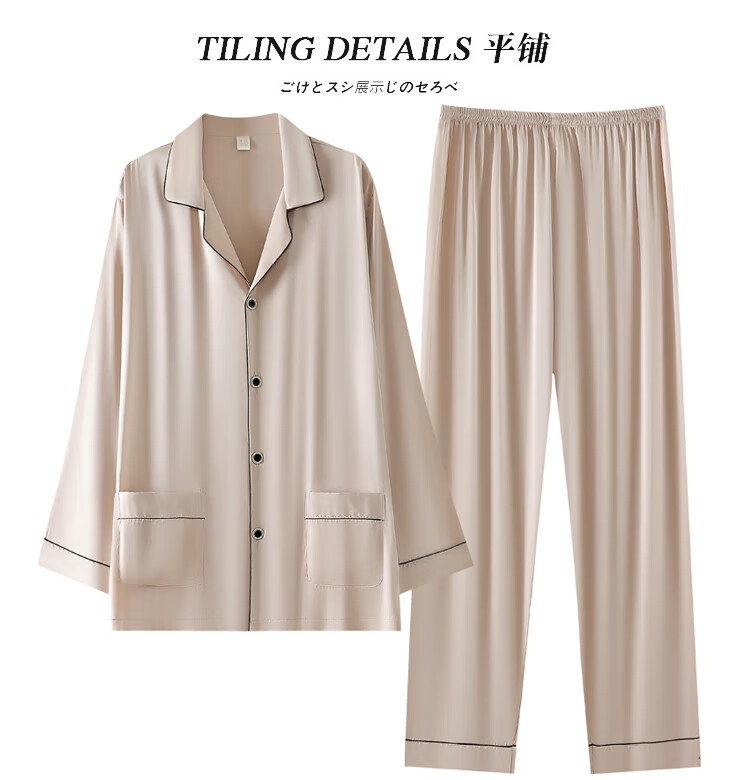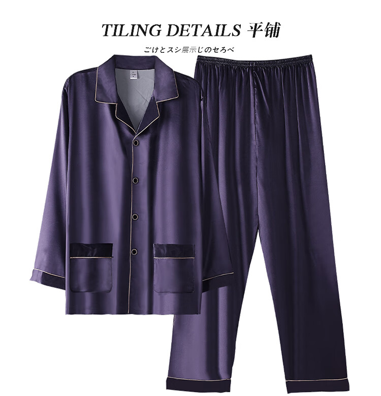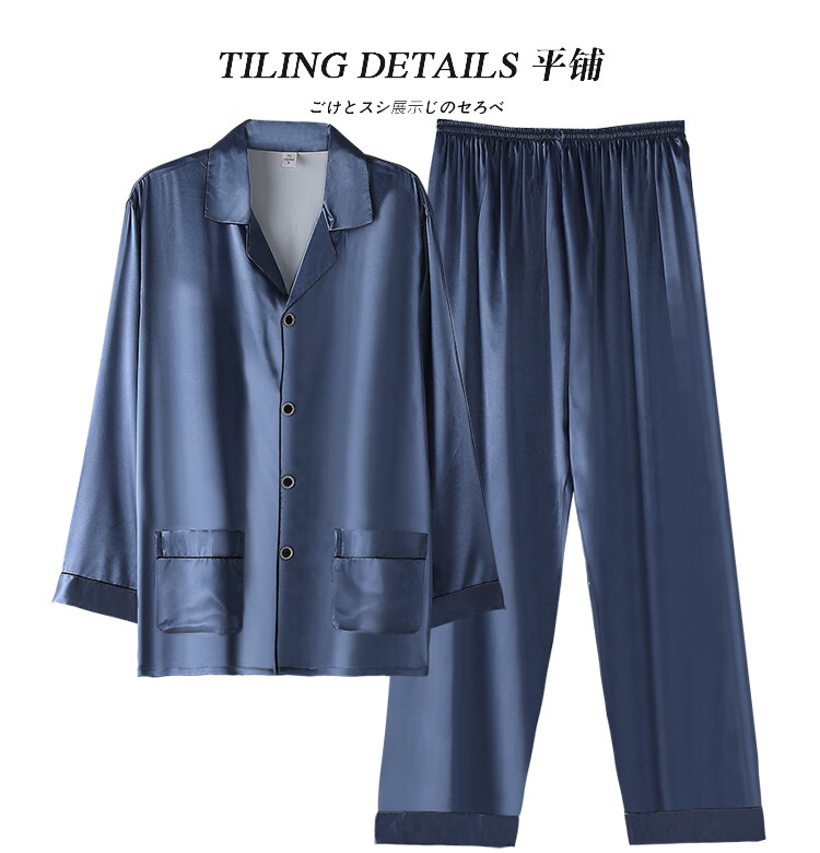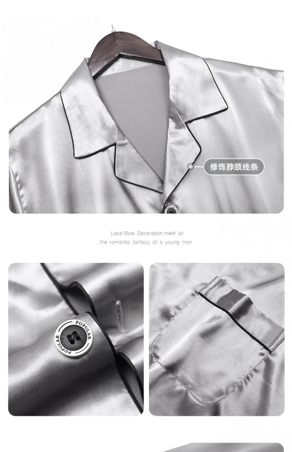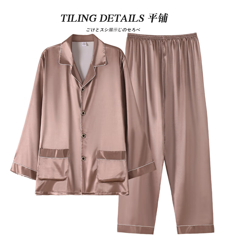 浪莎(LangSha)男士真丝睡衣春夏季长袖家居服夏天薄款高级感真丝绸缎加大码套装 6630 深灰色 M 身高160-165体重100-120斤