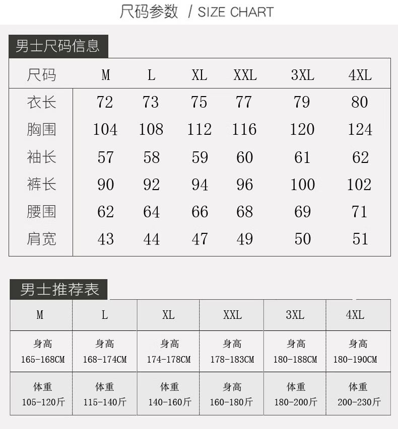 China (cm) 165 / 88-90 170 / 96-98 175 / 108-110 180 / 118-122 185 / 126-130