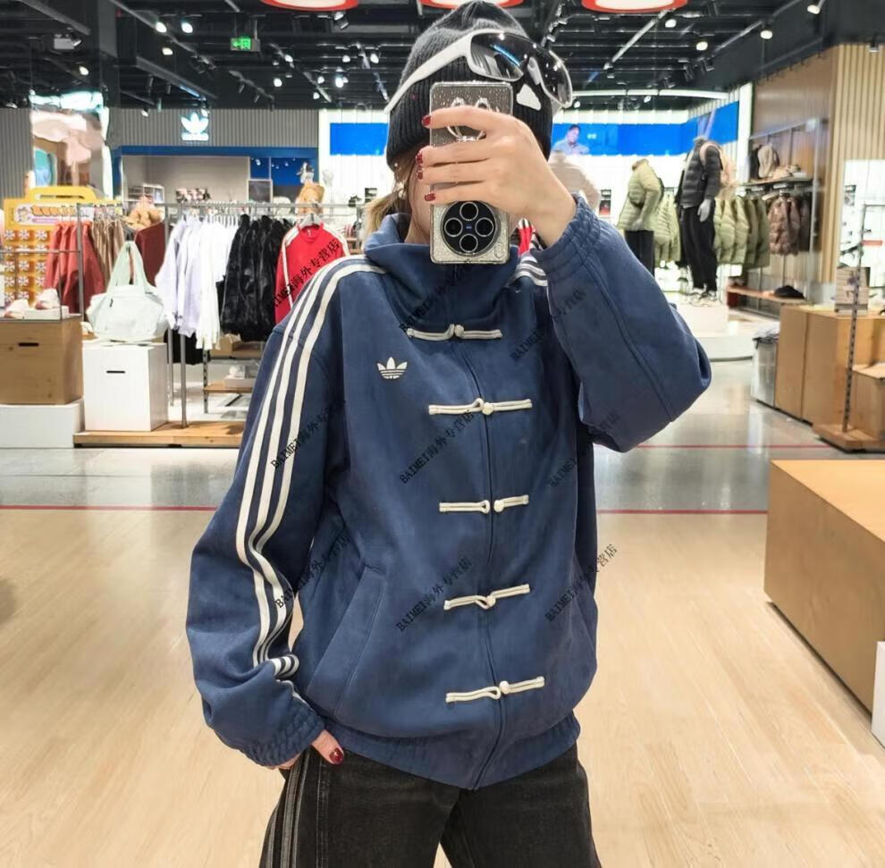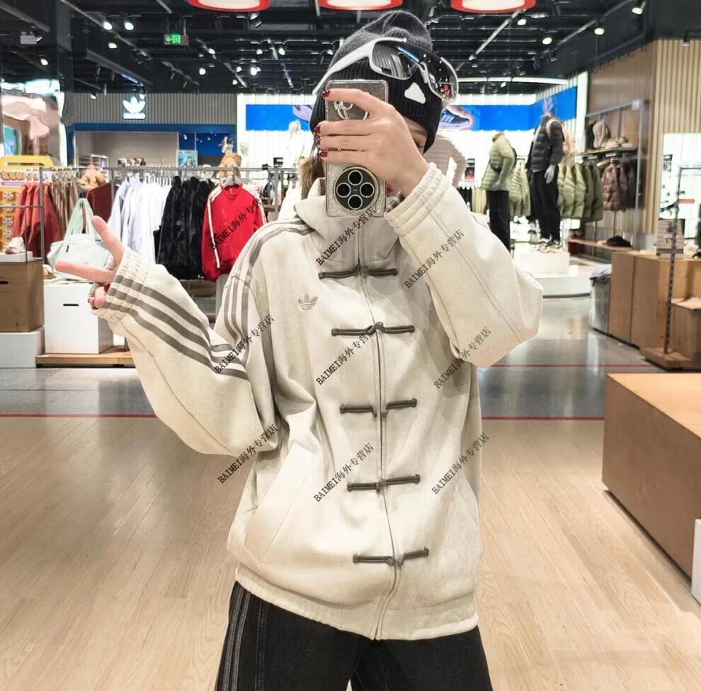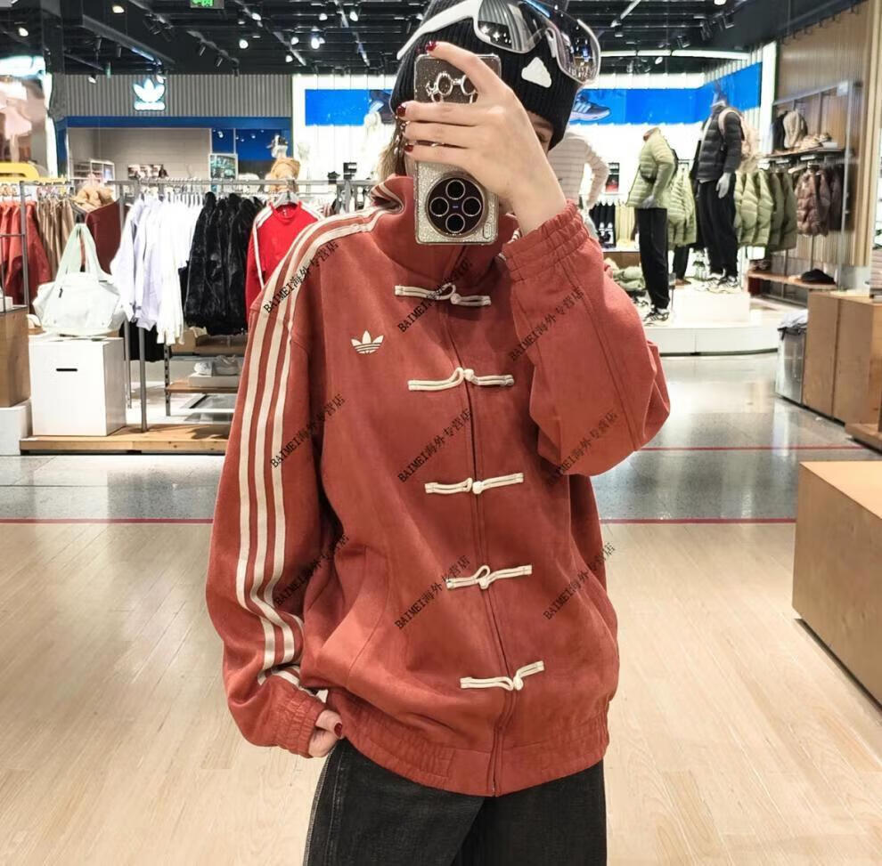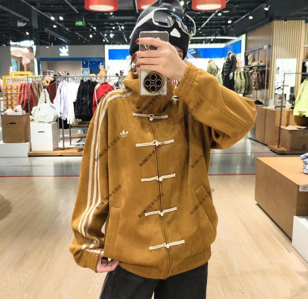 Adidas Clover CTT Year of the Snake Limited Neues chinesisches Wildleder Hanfu Tang-Anzug Stehkragen Lose Jacke für Männer und Frauen Braun (JZ9926) XS 165 Höhe 110Jin Jin entspricht etwa 0,5 kg