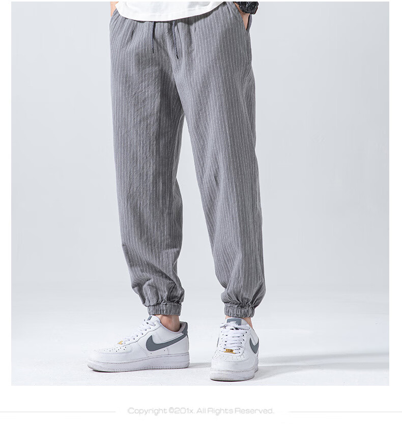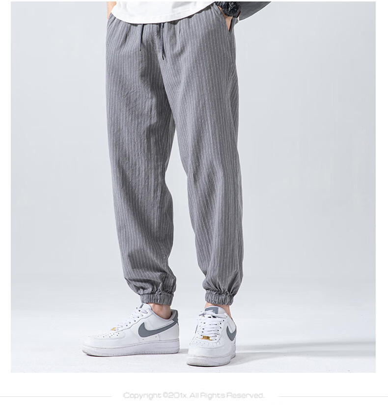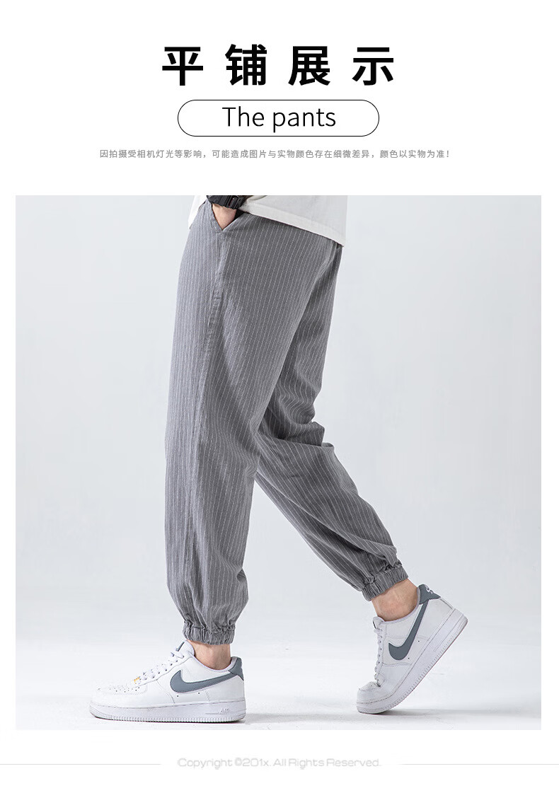 Linen nine-point pants men's elasticated summer cotton and linen thin Chinese style casual pants for middle-aged and young people with leggings light gray XL (recommended 160-180 Jin Jin equals 0.5 kg)