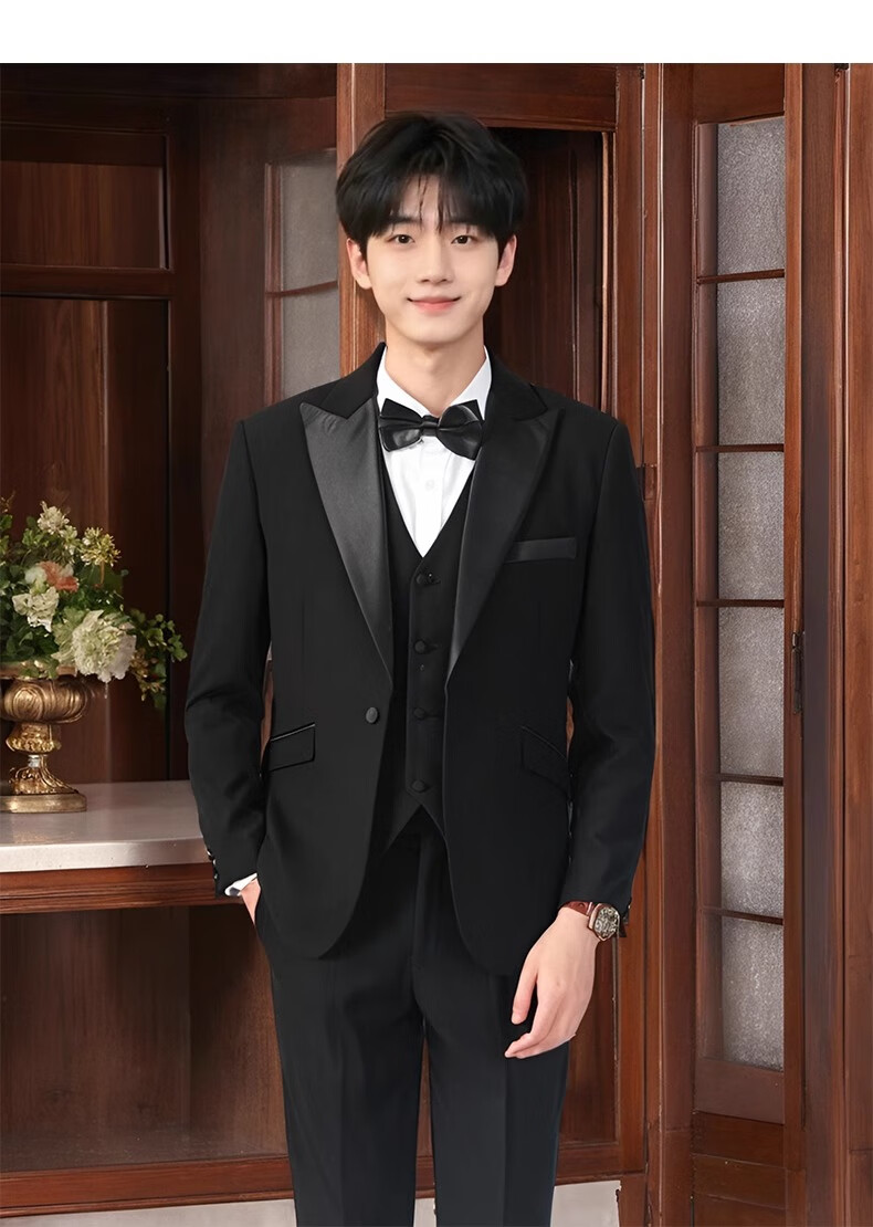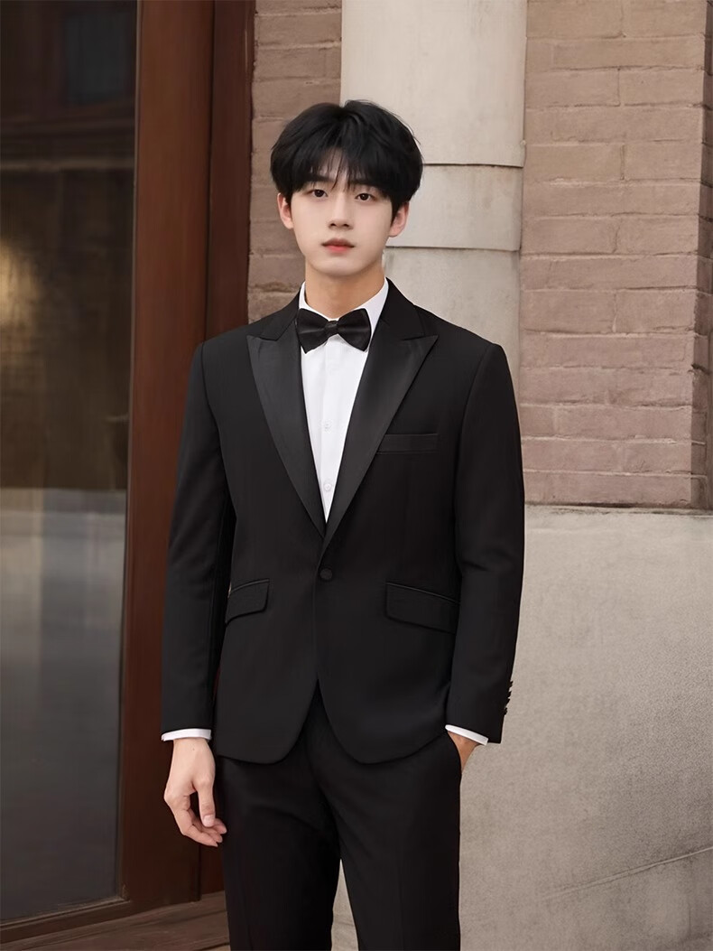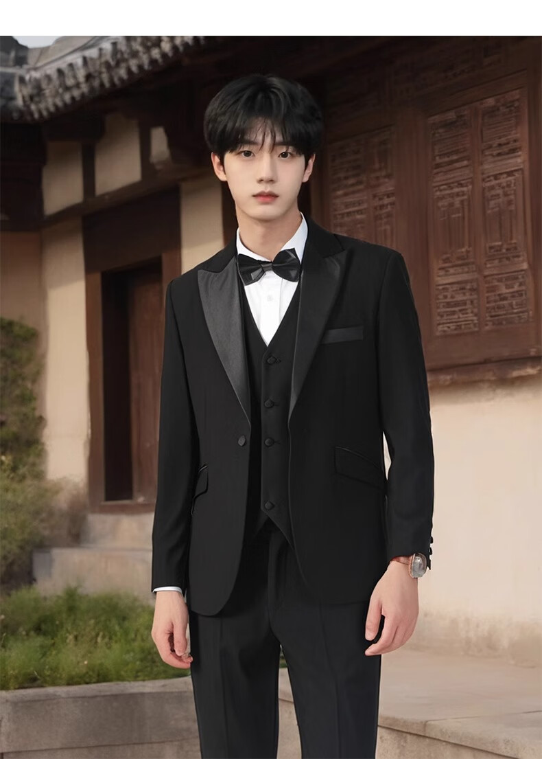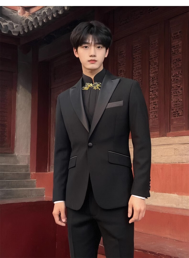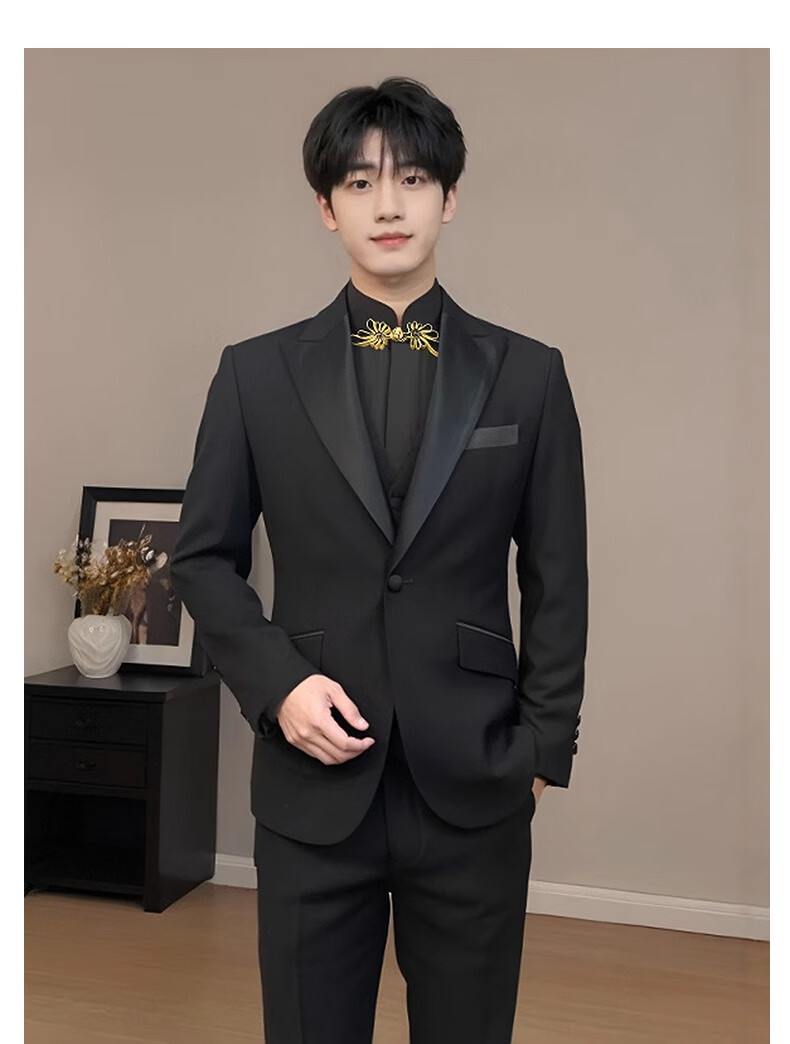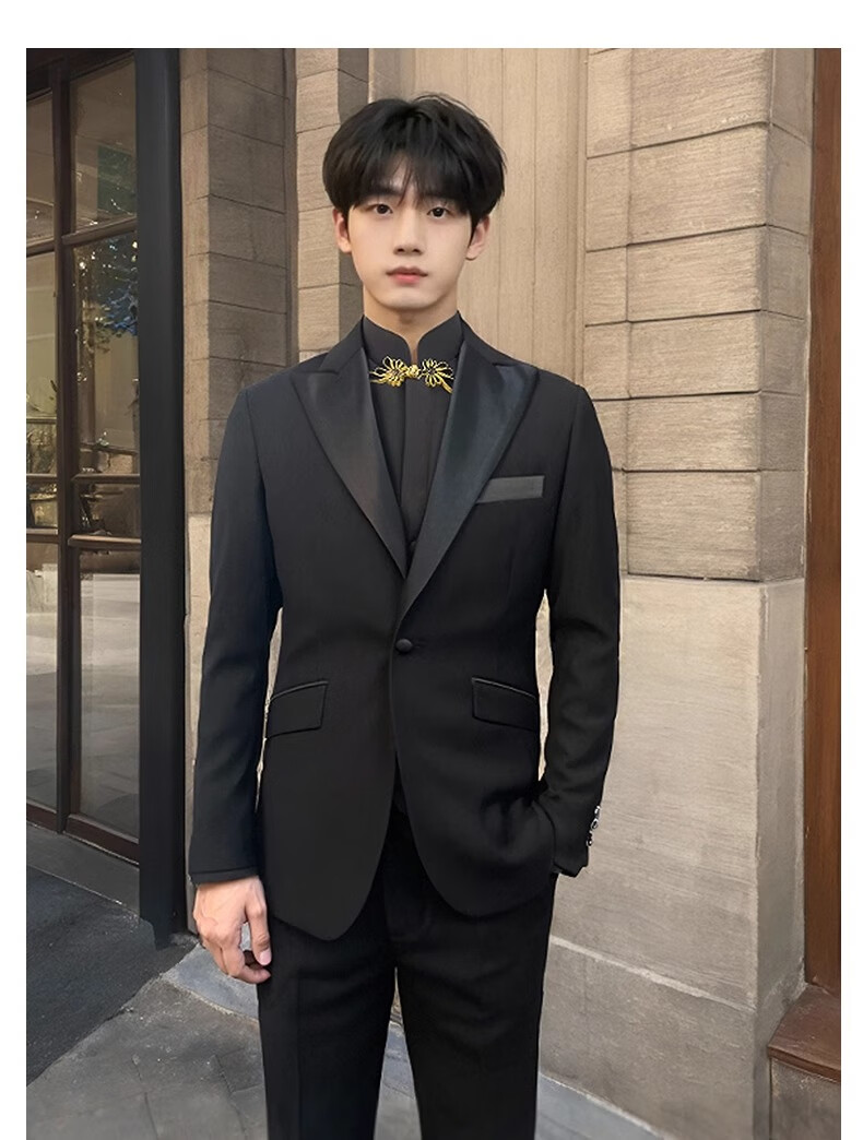 声猴西服套装男新中式西服外套男士休闲西服国风修身新郎结婚礼服宴会 西服外套+衬衫黑+西裤【三件套】 2XL (130-150斤))