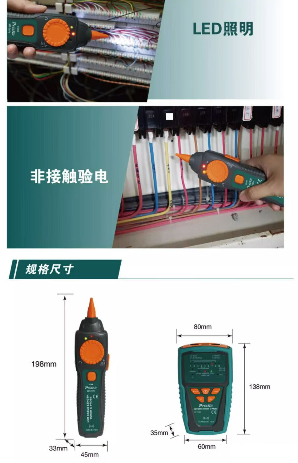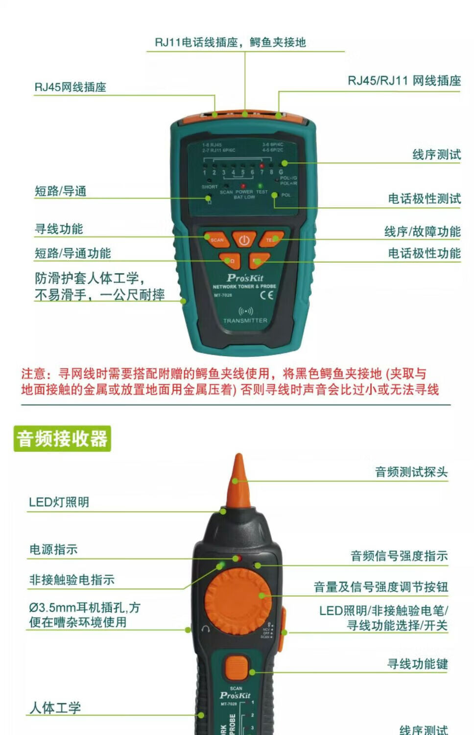 宝工(Pro'sKit)(Pro'sKit)宝工MT-7028寻线仪测线仪寻线器查线仪仪巡线仪 MT-7029N-C抗干扰型音频网路PoE