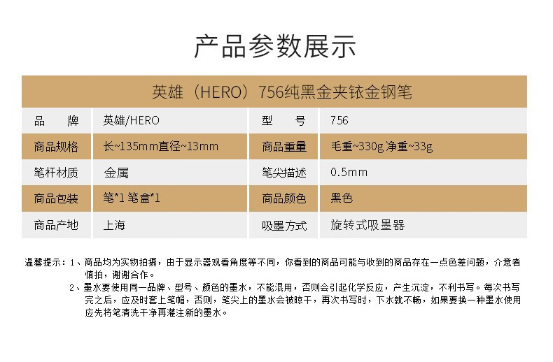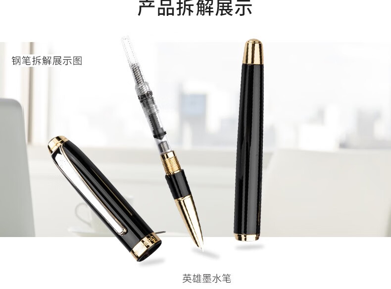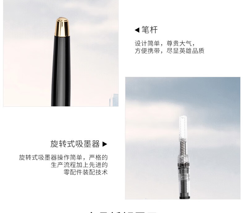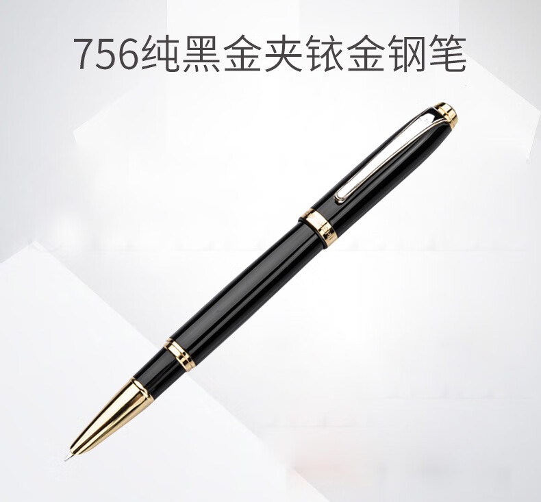 英雄英雄756钢笔男士练字铱金墨水笔暗尖包尖男女学生用商务办公书写 黑色 0.5mm