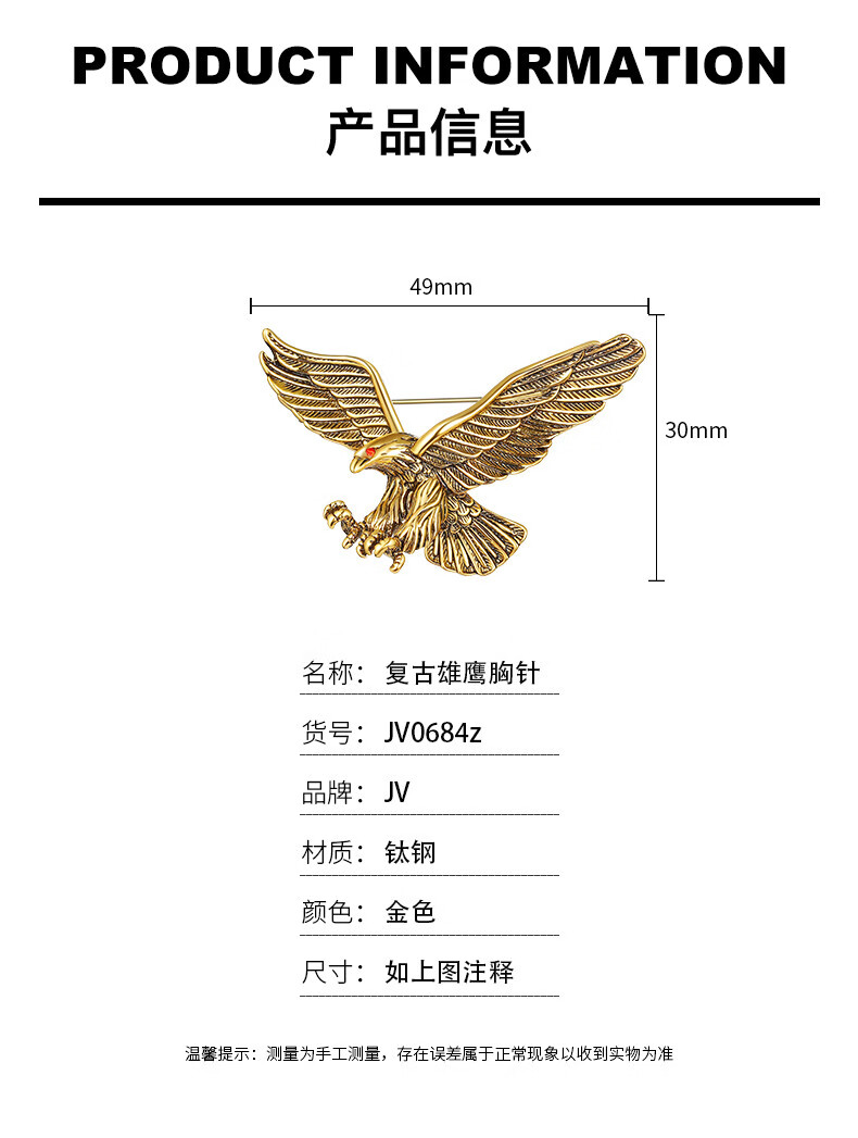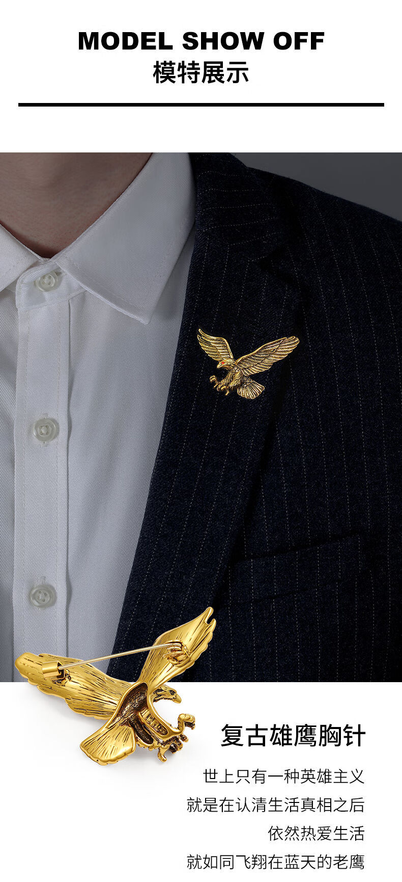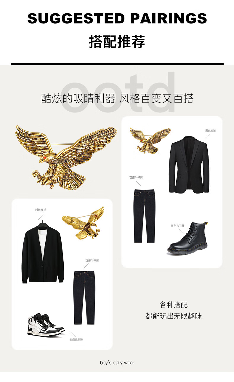 oein男士胸针雄鹰金属徽章设计感小众高端别针配饰扣针固定衣服装饰品 男士胸针