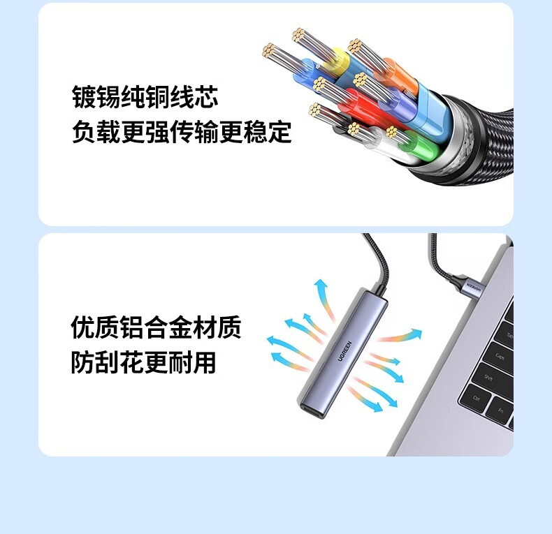 绿联(UGREEN)usb3.0扩展器多接口拓展坞集分线器插头typec延长h 1米-USB3.0(15922