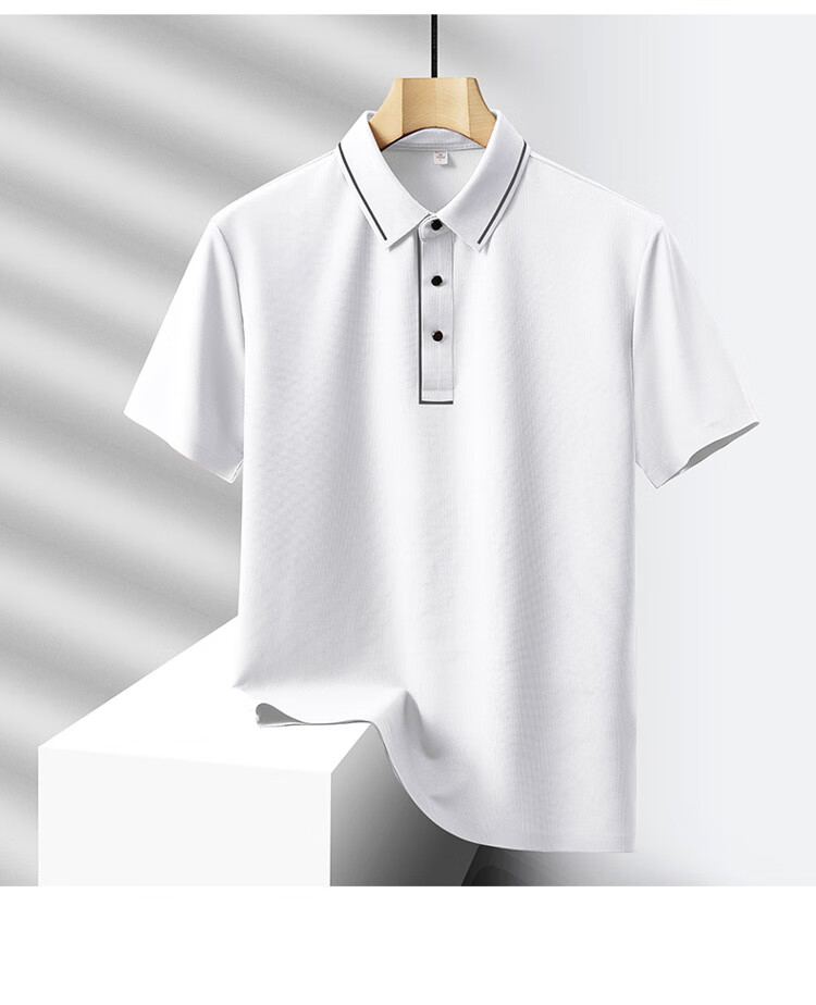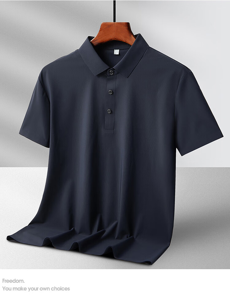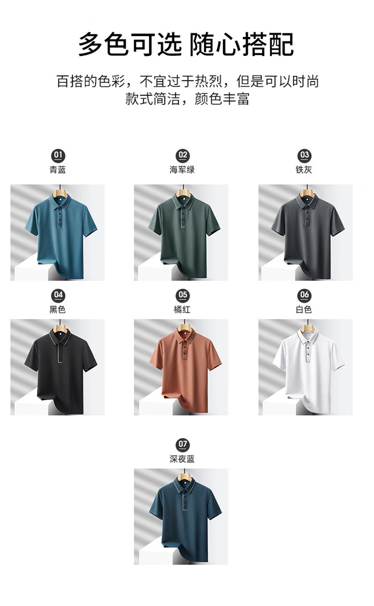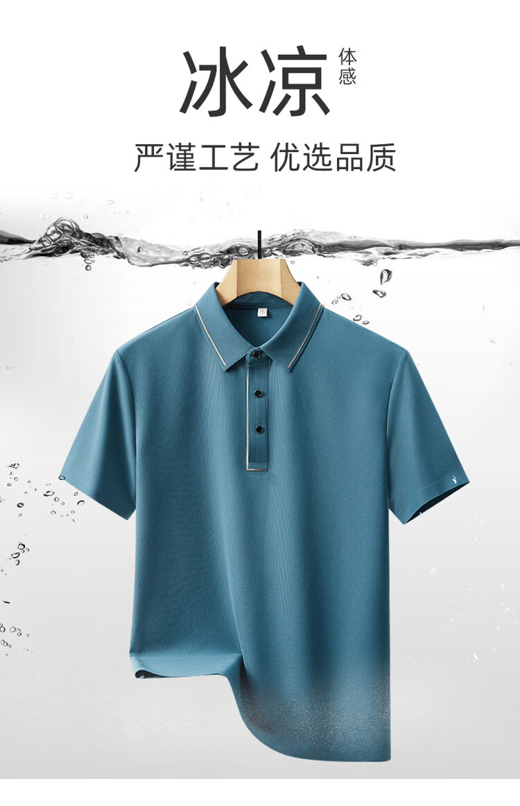 Hengyuanxiang men's summer ice silk sports suit new lapel T-shirt polo shirt casual short-sleeved middle-aged and elderly dad summer 6630-08 Ulan+black short*pants M