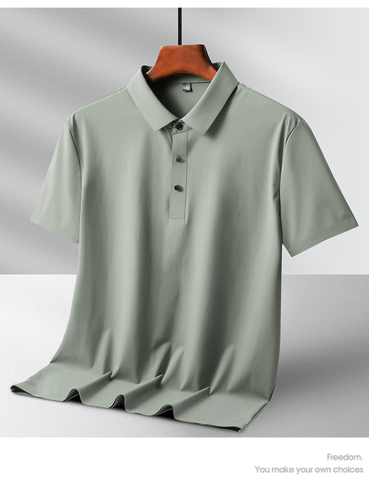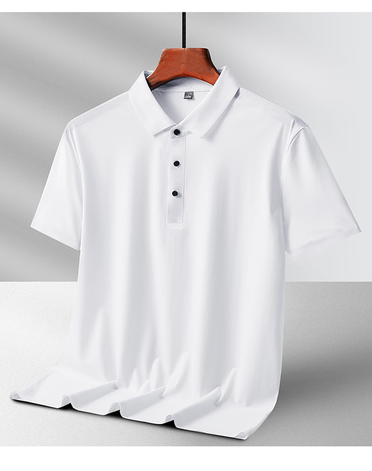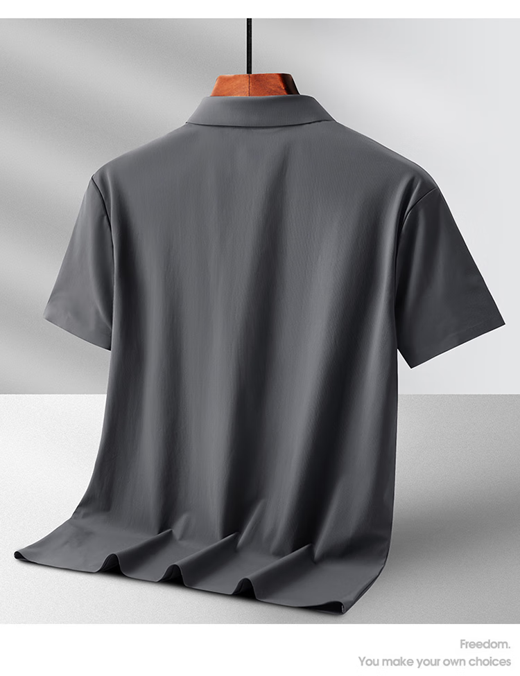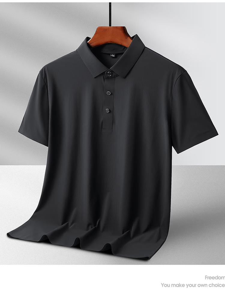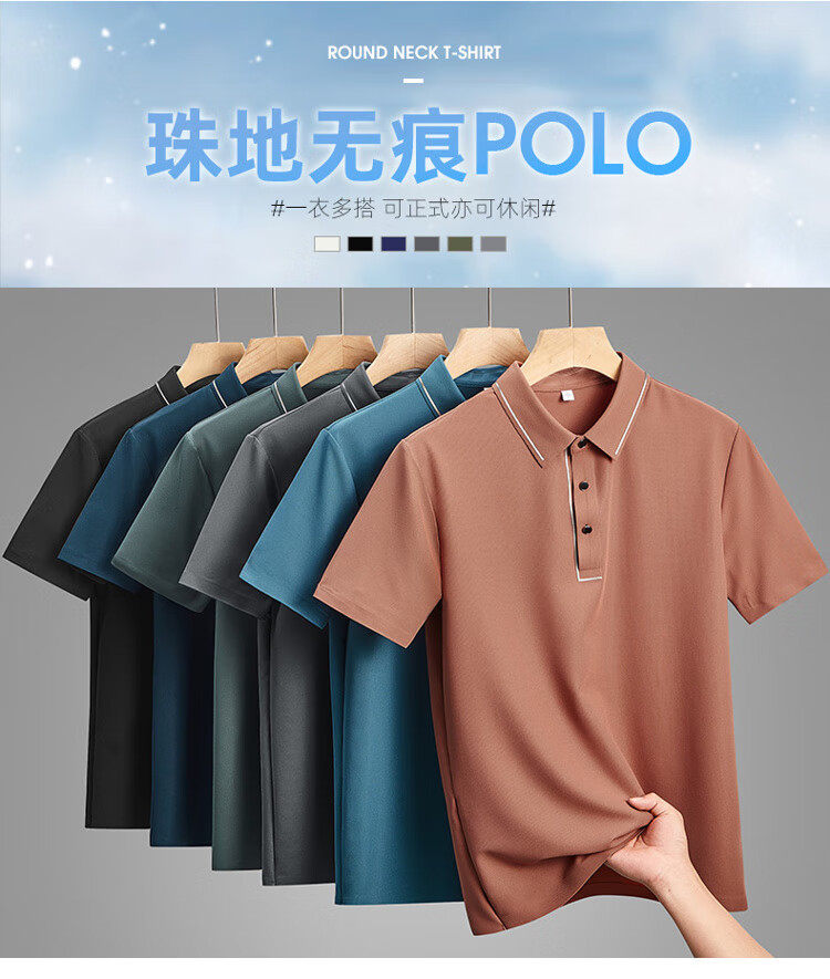 Hengyuanxiang men's summer ice silk sports suit new lapel T-shirt polo shirt casual short-sleeved middle-aged and elderly dad summer 6630-08 Ulan+black short*pants M