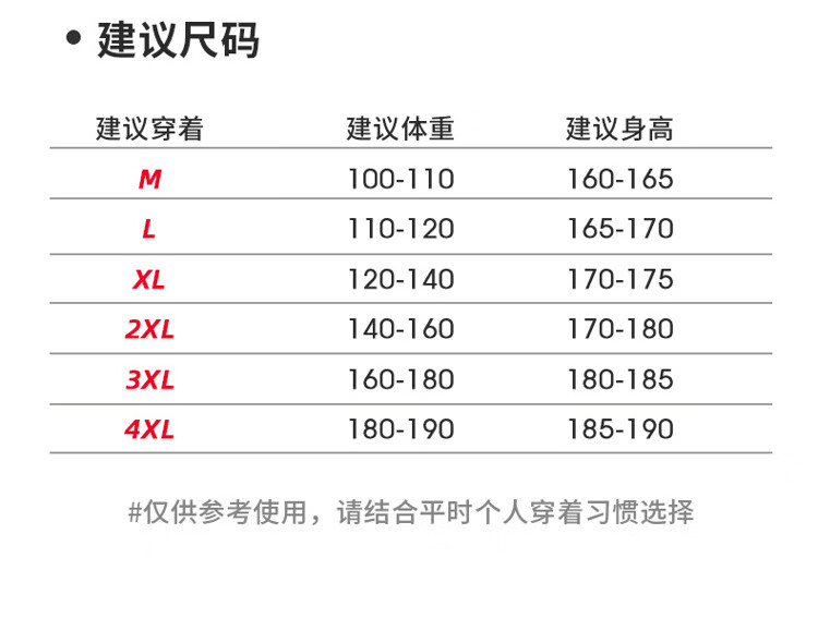 China (cm) 165 / 88-90 170 / 96-98 175 / 108-110 180 / 118-122 185 / 126-130