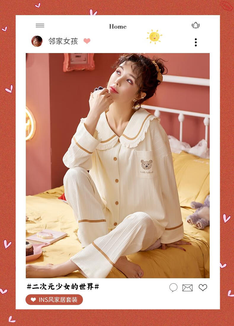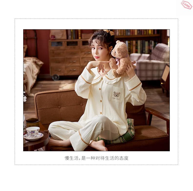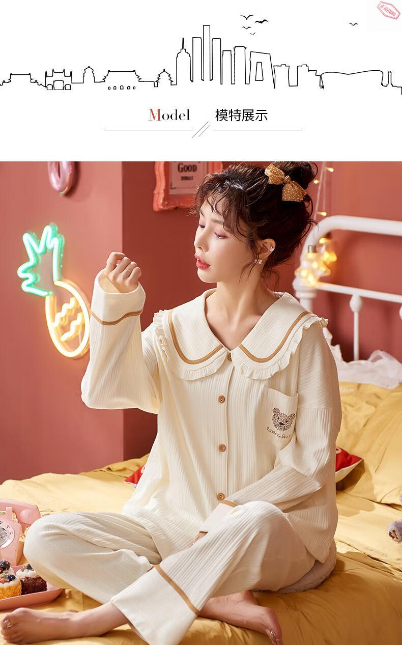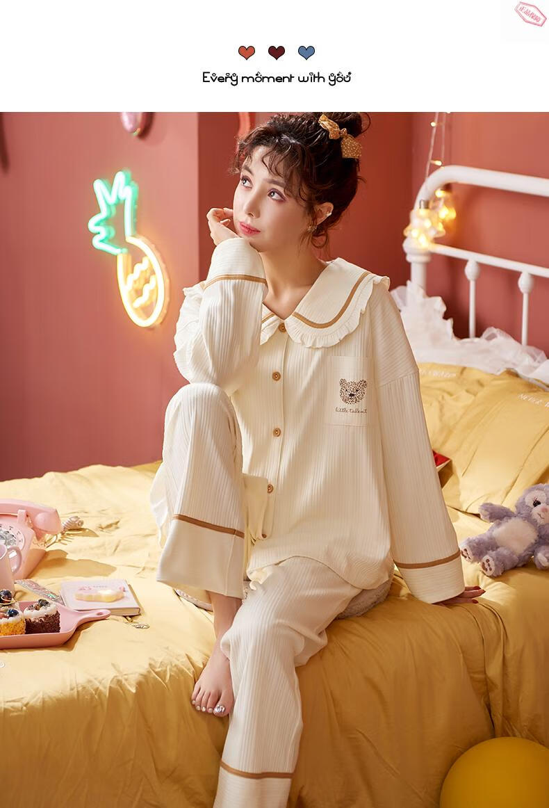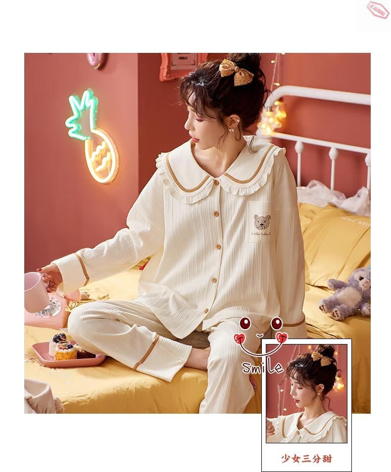 Pijamas MiiOW para mujer primavera y otoño algodón puro manga larga ropa de casa usable de alta gama algodón tamaño grande 2025 nuevo conjunto JM3527 M 80-98Jin Jin es igual a 0,5 kg