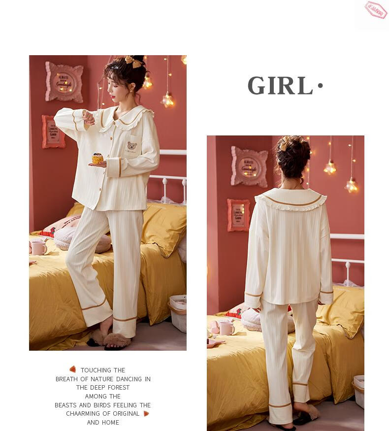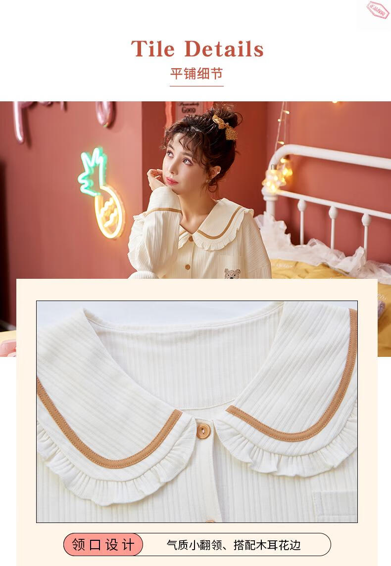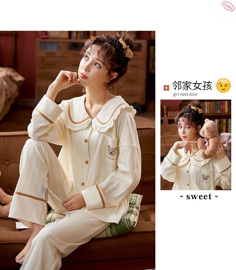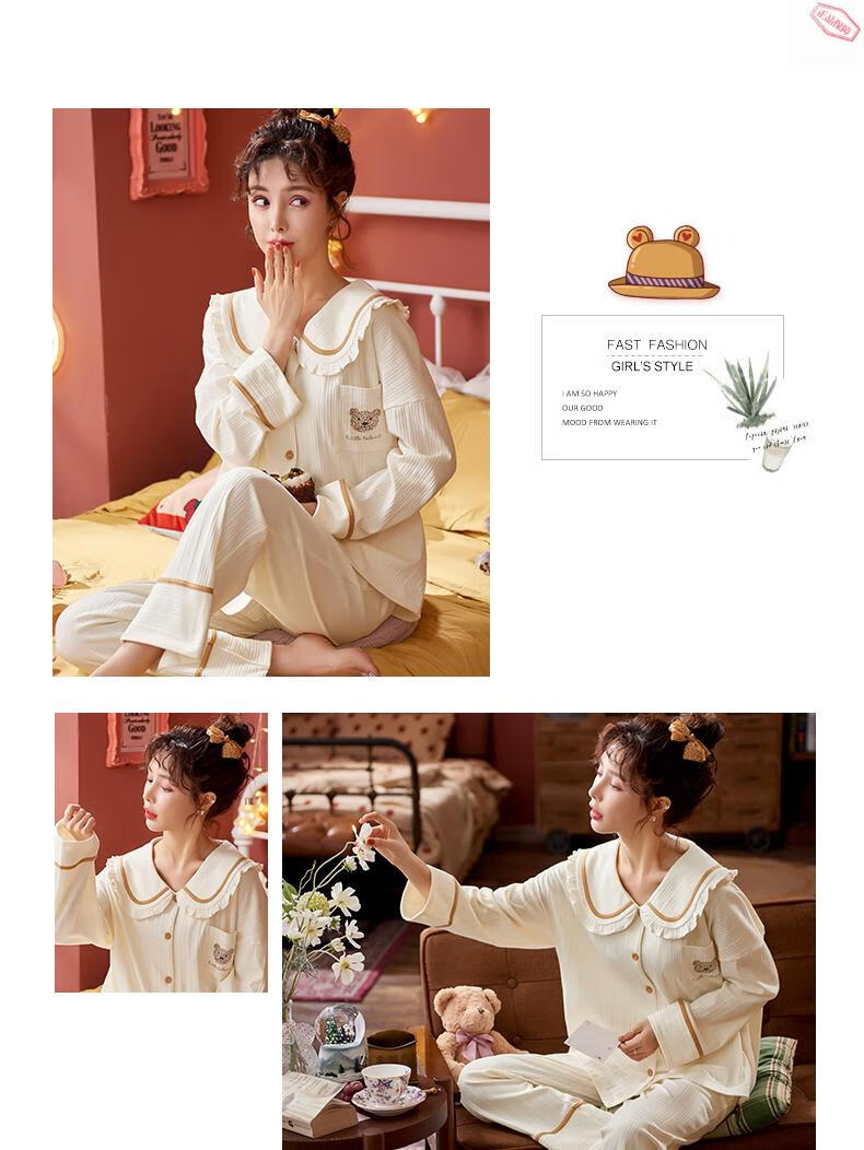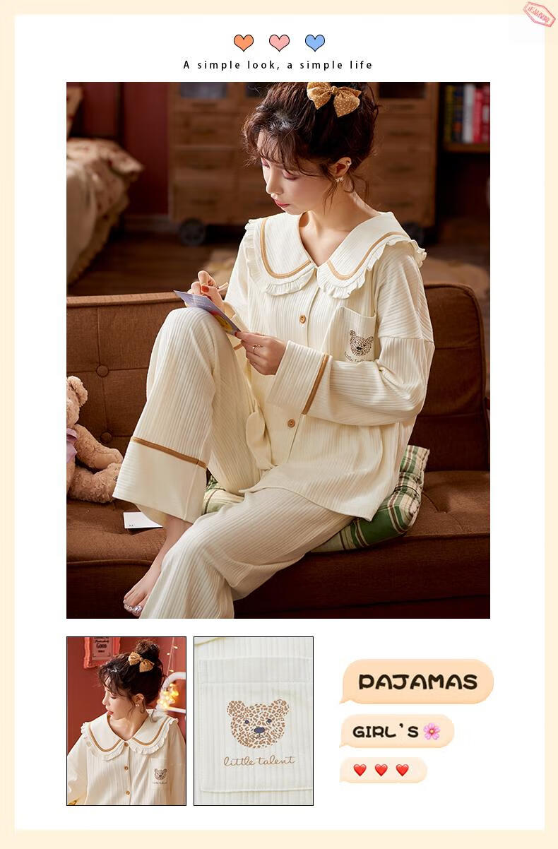Pijamas MiiOW para mujer primavera y otoño algodón puro manga larga ropa de casa usable de alta gama algodón tamaño grande 2025 nuevo conjunto JM3527 M 80-98Jin Jin es igual a 0,5 kg