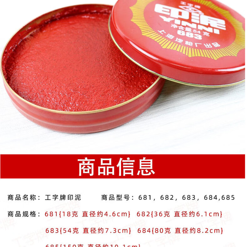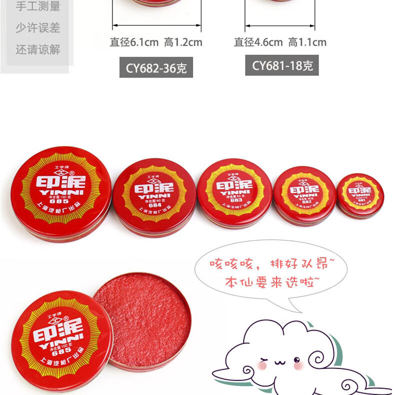 I-brand 681/682//684/685 red cinnabar ink pad office rubber stamp financial iron shell bound calligraphy and painting mud-shaped fingerprint mud-shaped ink pad ink pad ink pad 681 diameter 4.6cm (2 pieces)