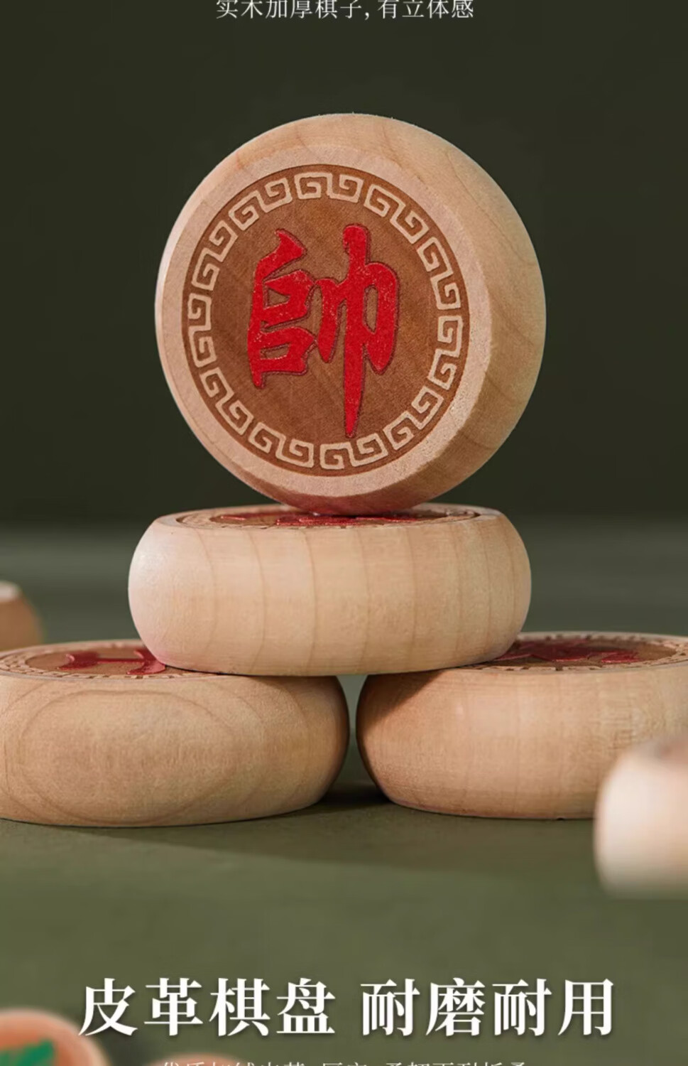 1473人好评中国象棋实木棋子大号象棋小学生成人便携式折叠皮革棋 赠特大50丨榉木雕花+皮革棋盘 赠