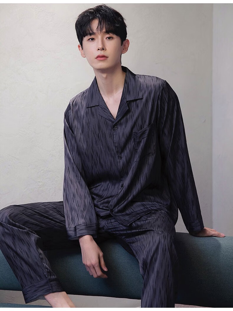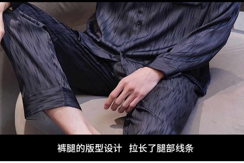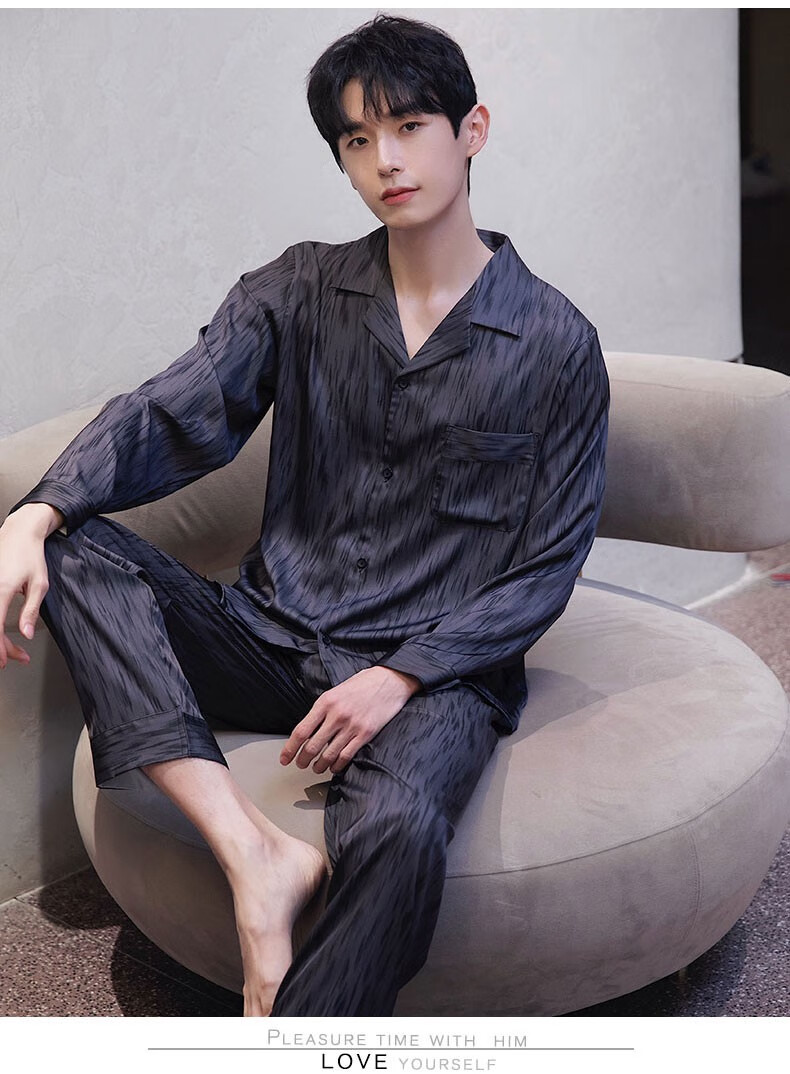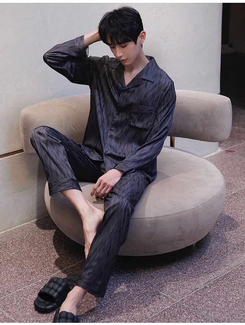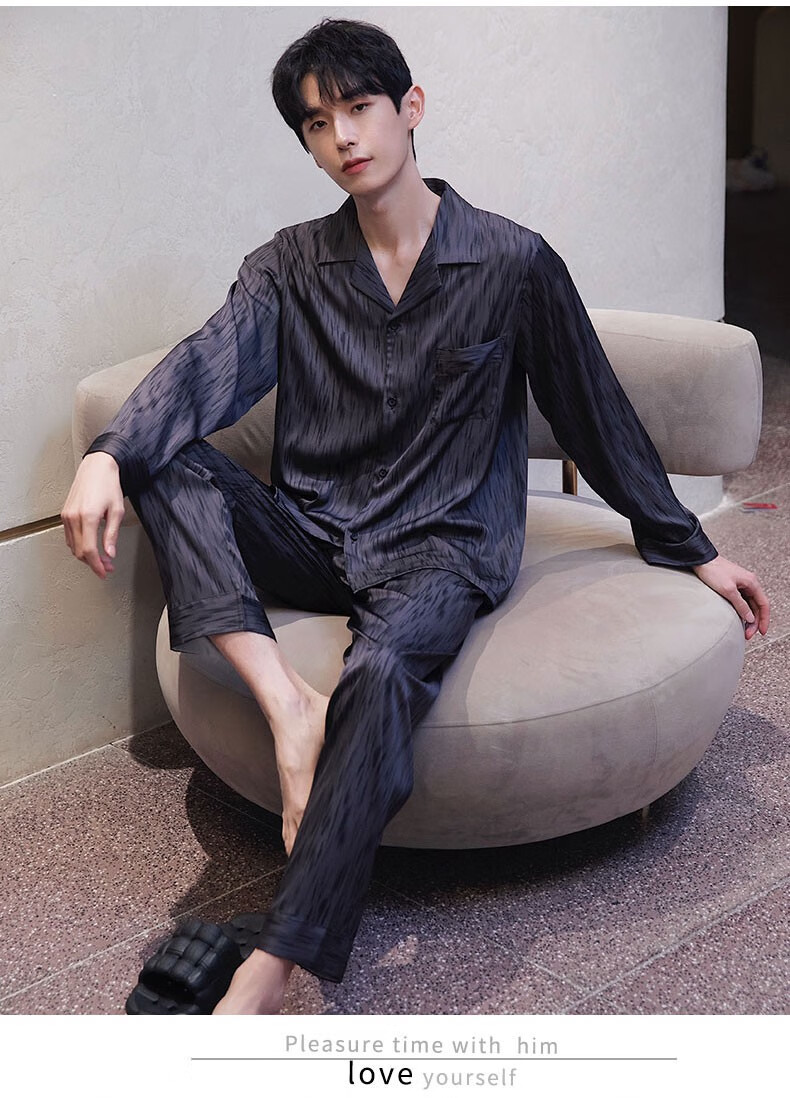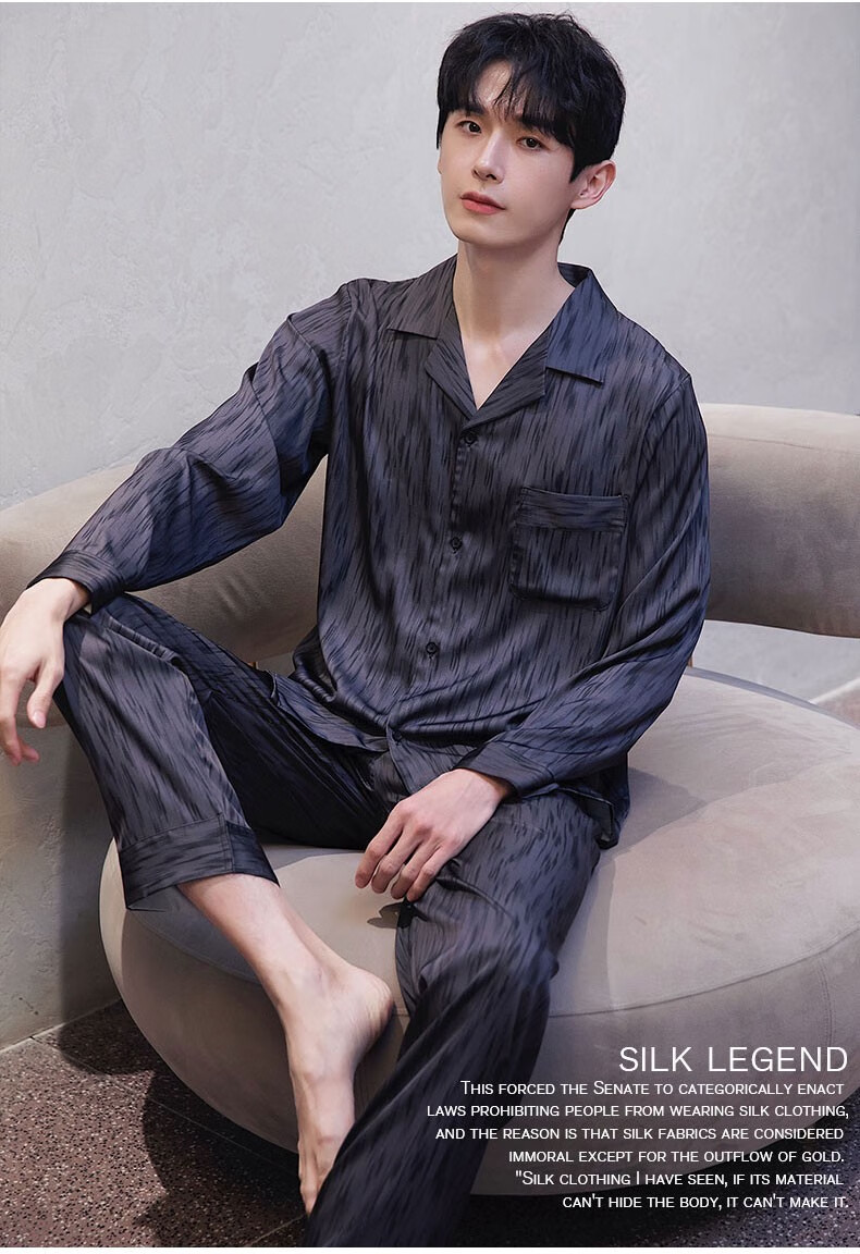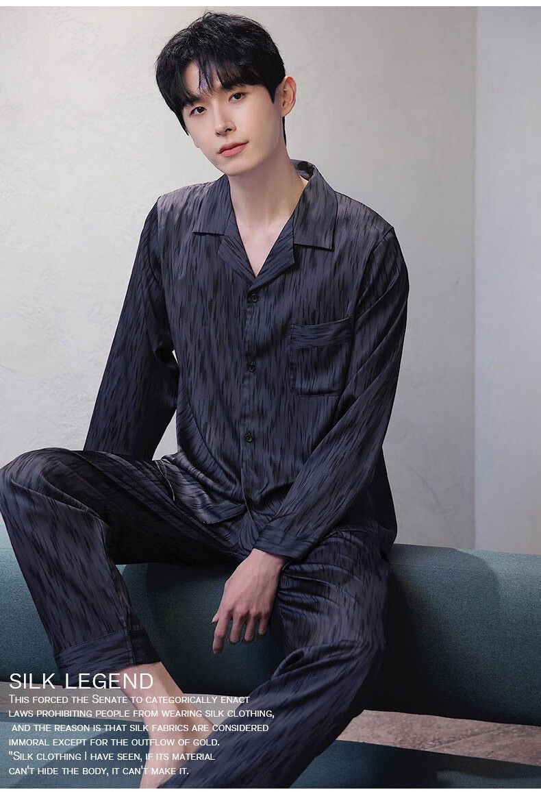 Victoria's style men's pajamas spring and autumn ice silk long-sleeved trousers suit men's summer 2024 new style home clothes 6627 gray rice dumpling 10XL l100-125Jin Jin is equal to 0.5 kg