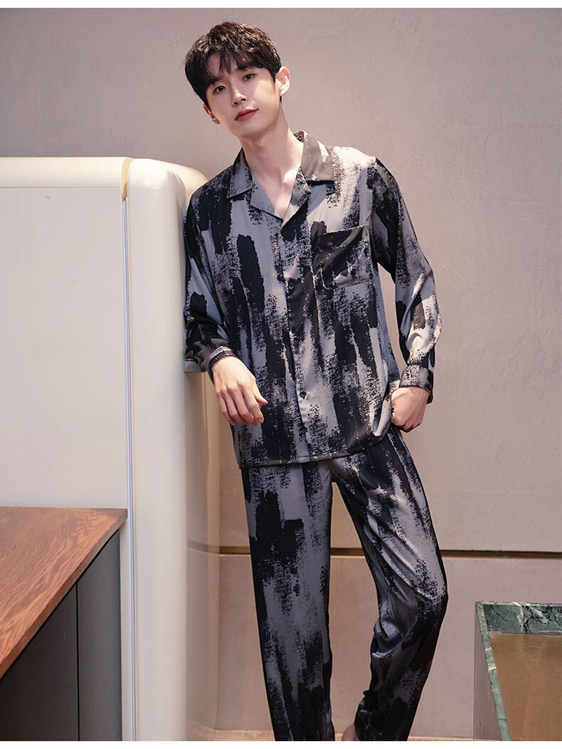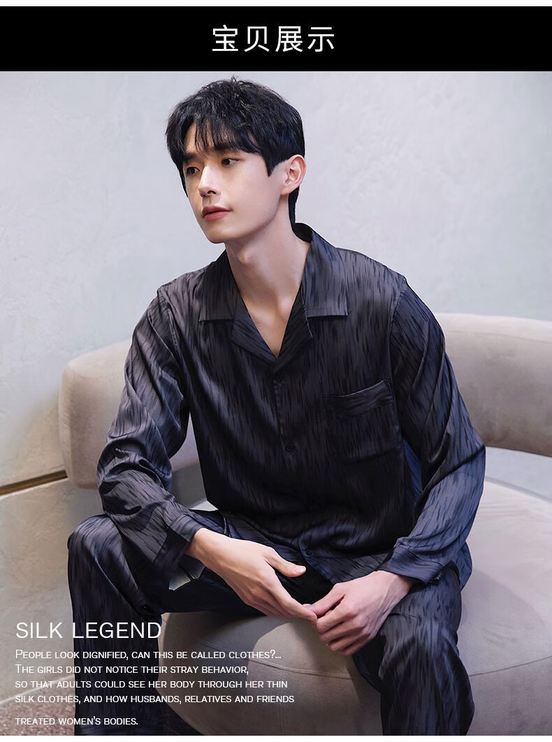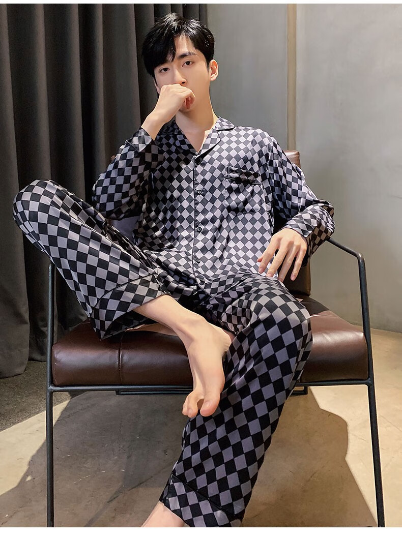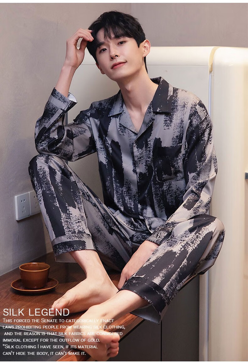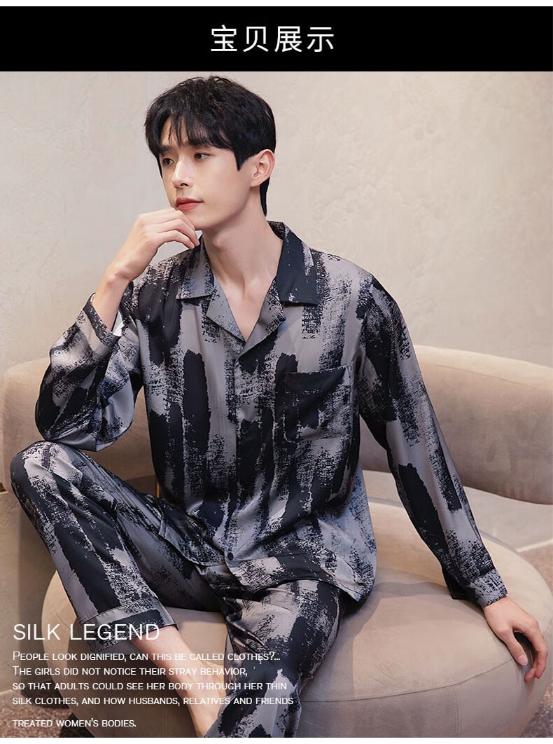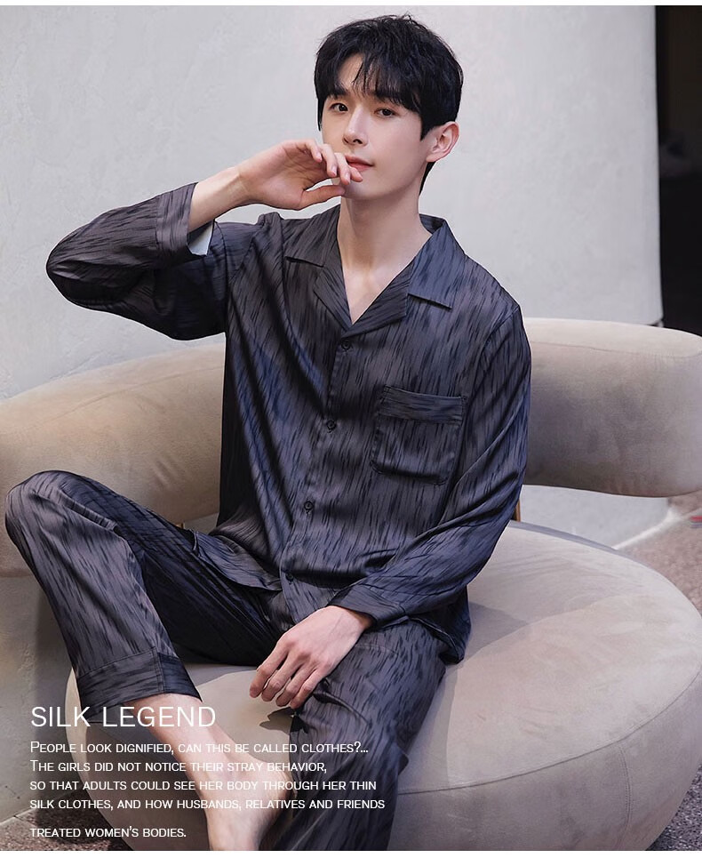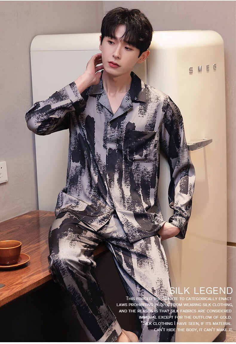 Victoria's style men's pajamas spring and autumn ice silk long-sleeved trousers suit men's summer 2024 new style home clothes 6627 gray rice dumpling 10XL l100-125Jin Jin is equal to 0.5 kg