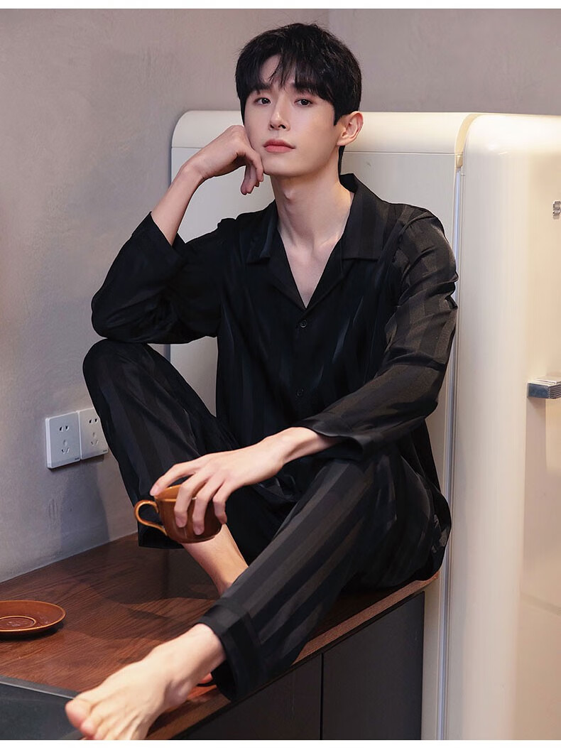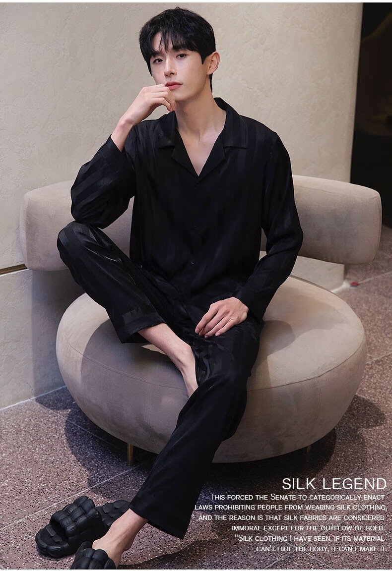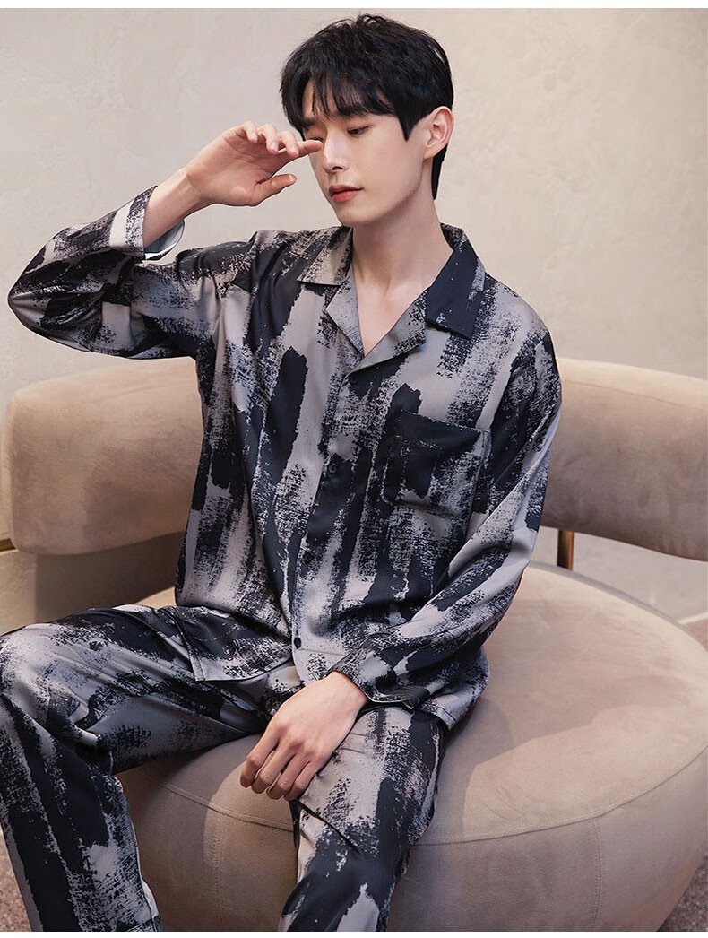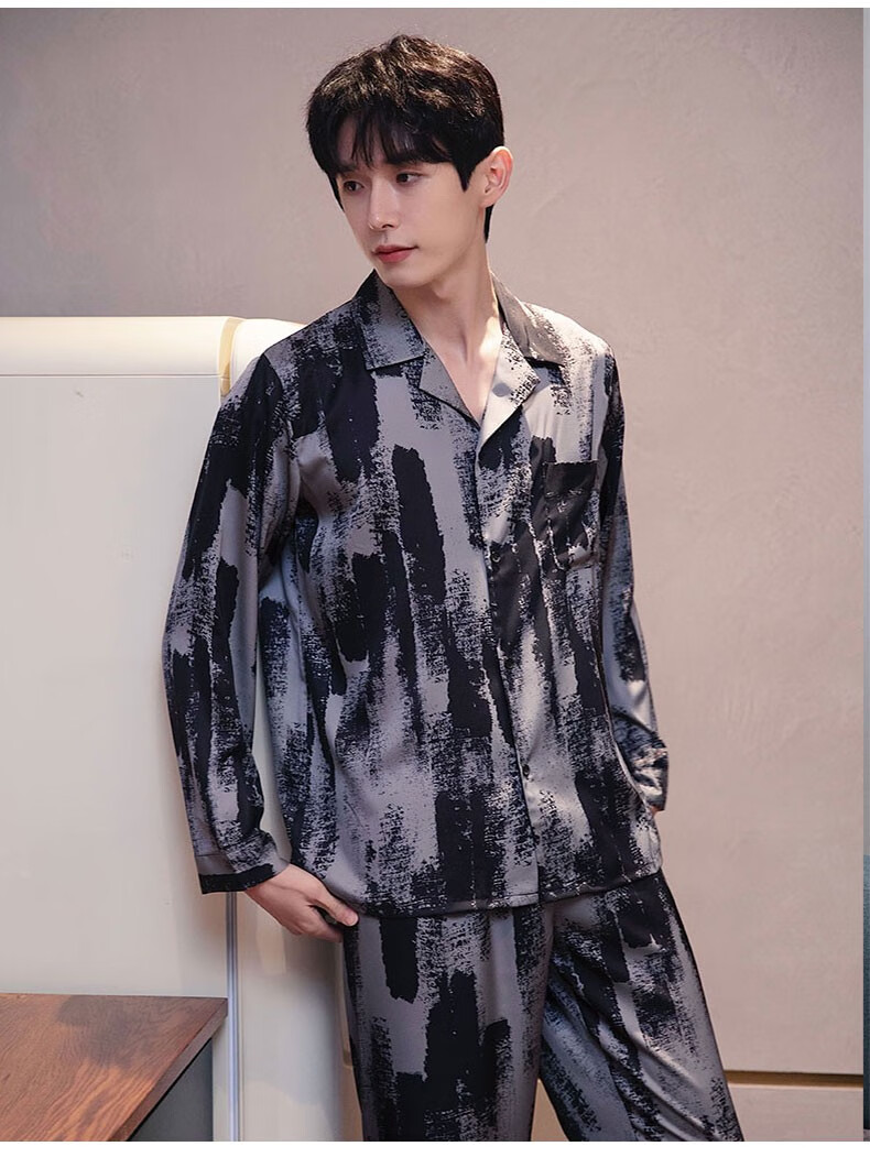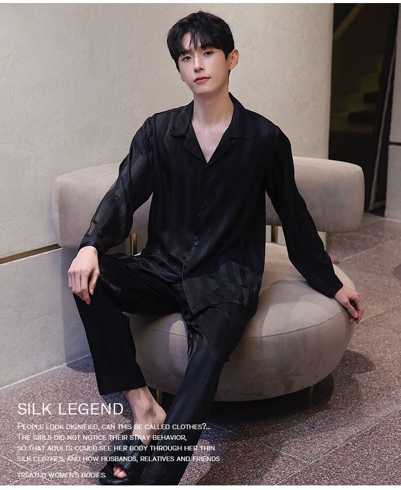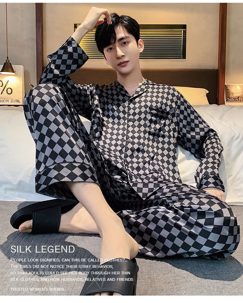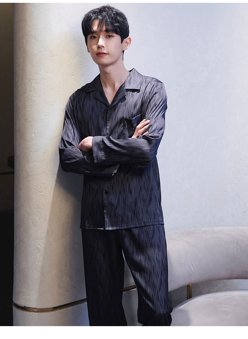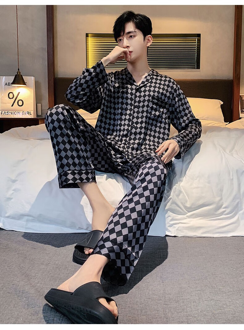 Victoria's style men's pajamas spring and autumn ice silk long-sleeved trousers suit men's summer 2024 new style home clothes 6627 gray rice dumpling 10XL l100-125Jin Jin is equal to 0.5 kg