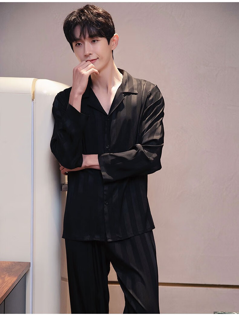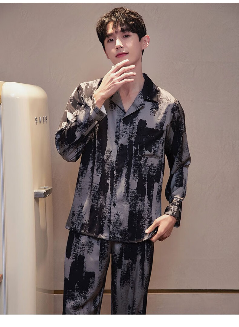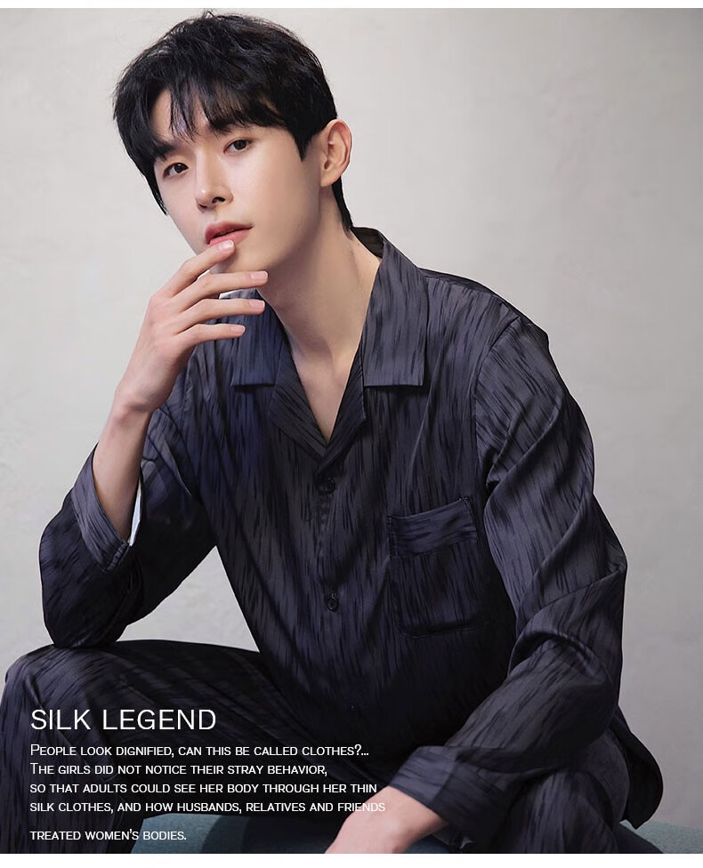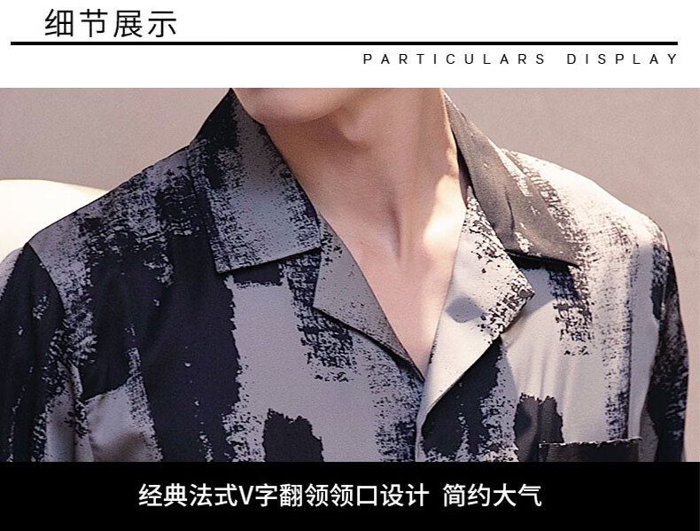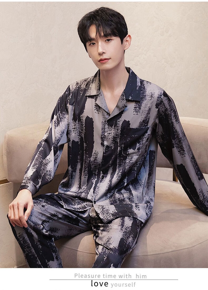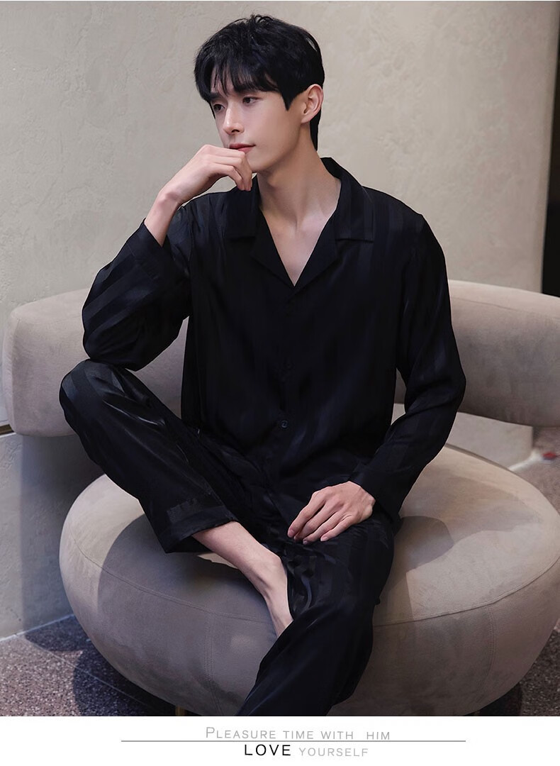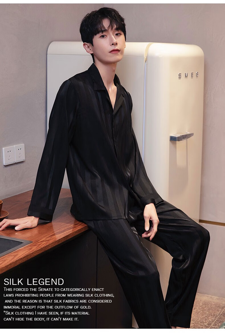 Victoria's style men's pajamas spring and autumn ice silk long-sleeved trousers suit men's summer 2024 new style home clothes 6627 gray rice dumpling 10XL l100-125Jin Jin is equal to 0.5 kg
