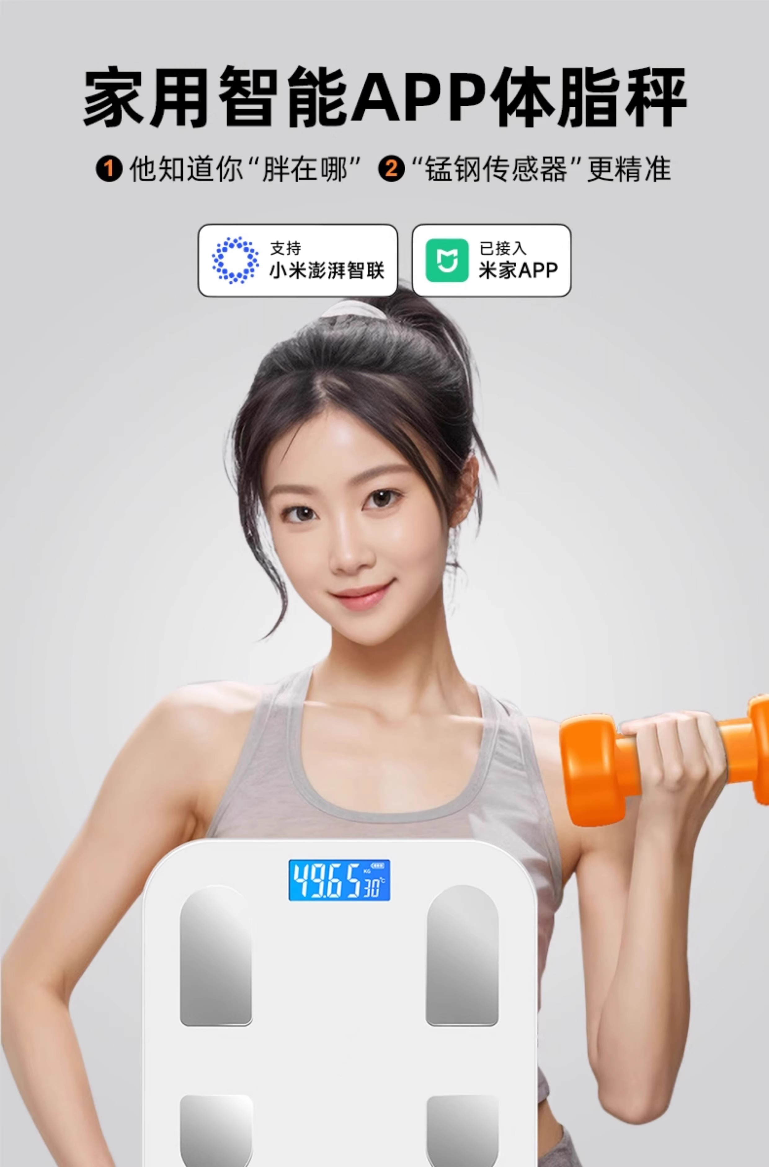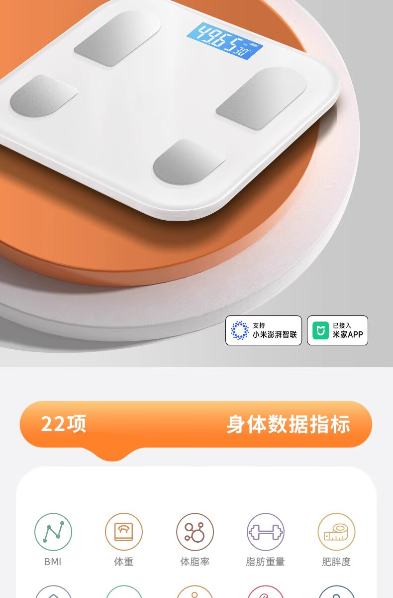 【已接入米家APP】电子秤智能体脂秤体重秤家用宿舍用精准充电体重秤减肥必备 【电池款】米家联动体脂秤-白色