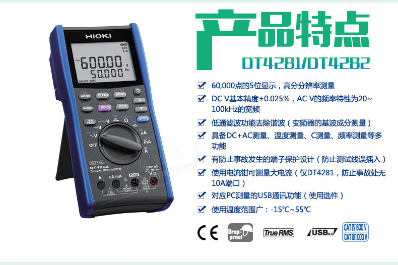 日置DT4281/4282-30高精度手持数字万用表真有效值L9207-10 DT4281电流大600mA无电导