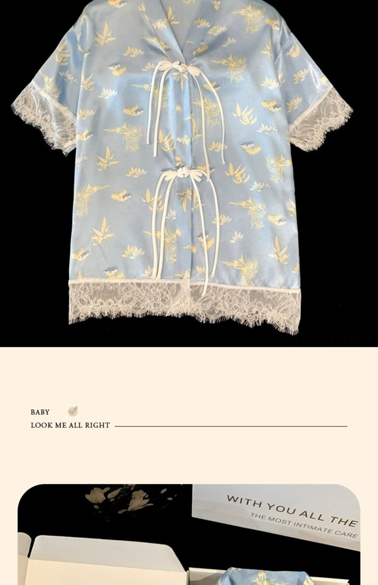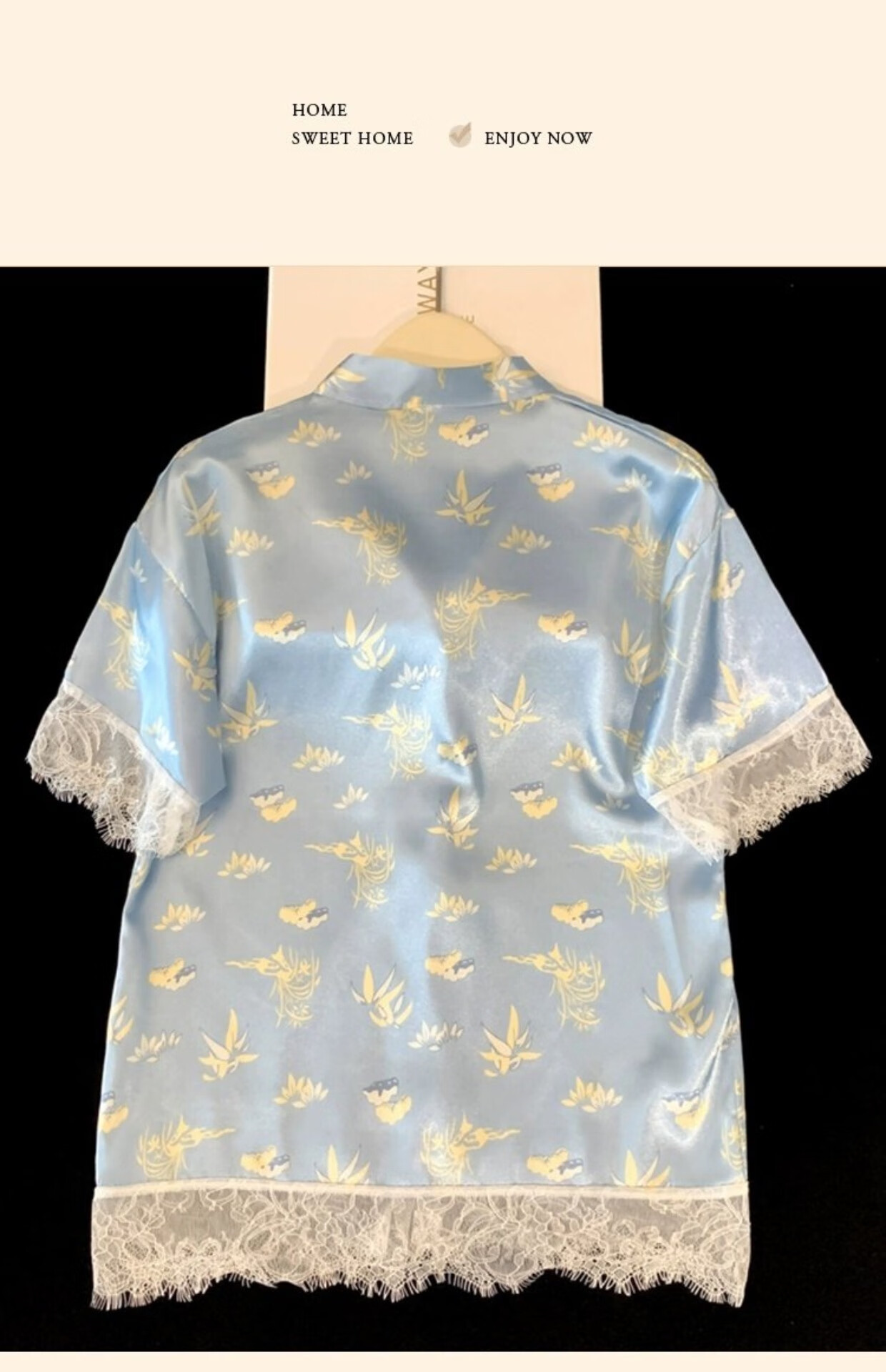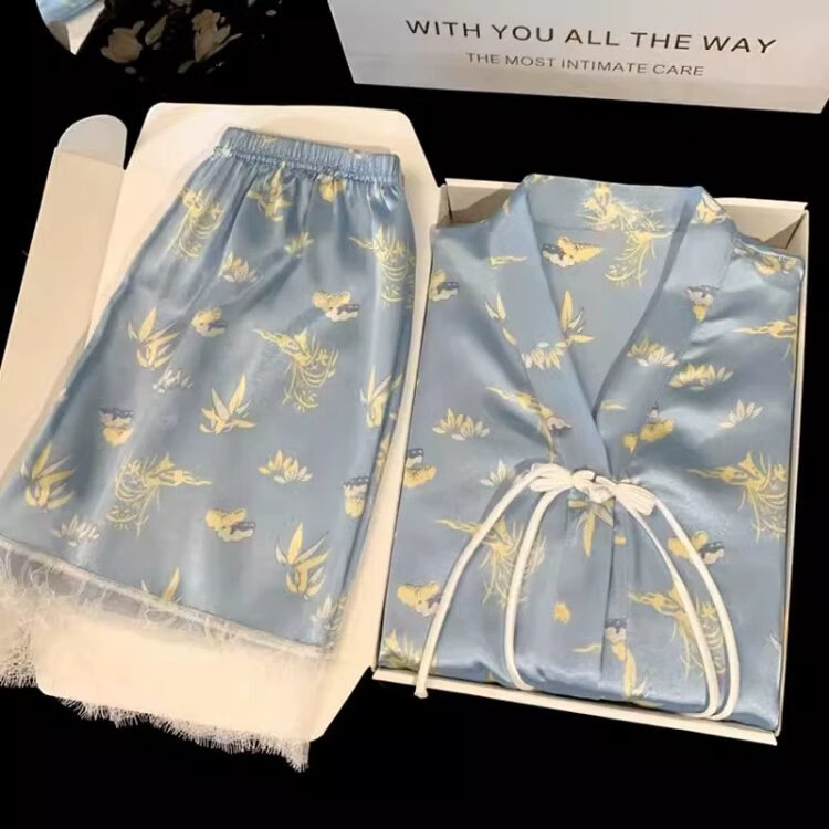Palanduo estilo nacional retro nuevo estilo chino pijamas de seda de hielo de manga corta de verano de seda de algodón fino se puede usar fuera de casa traje de ropa de verano FS_9214# Cárdigan doble bolsillo corto de encaje M talla única