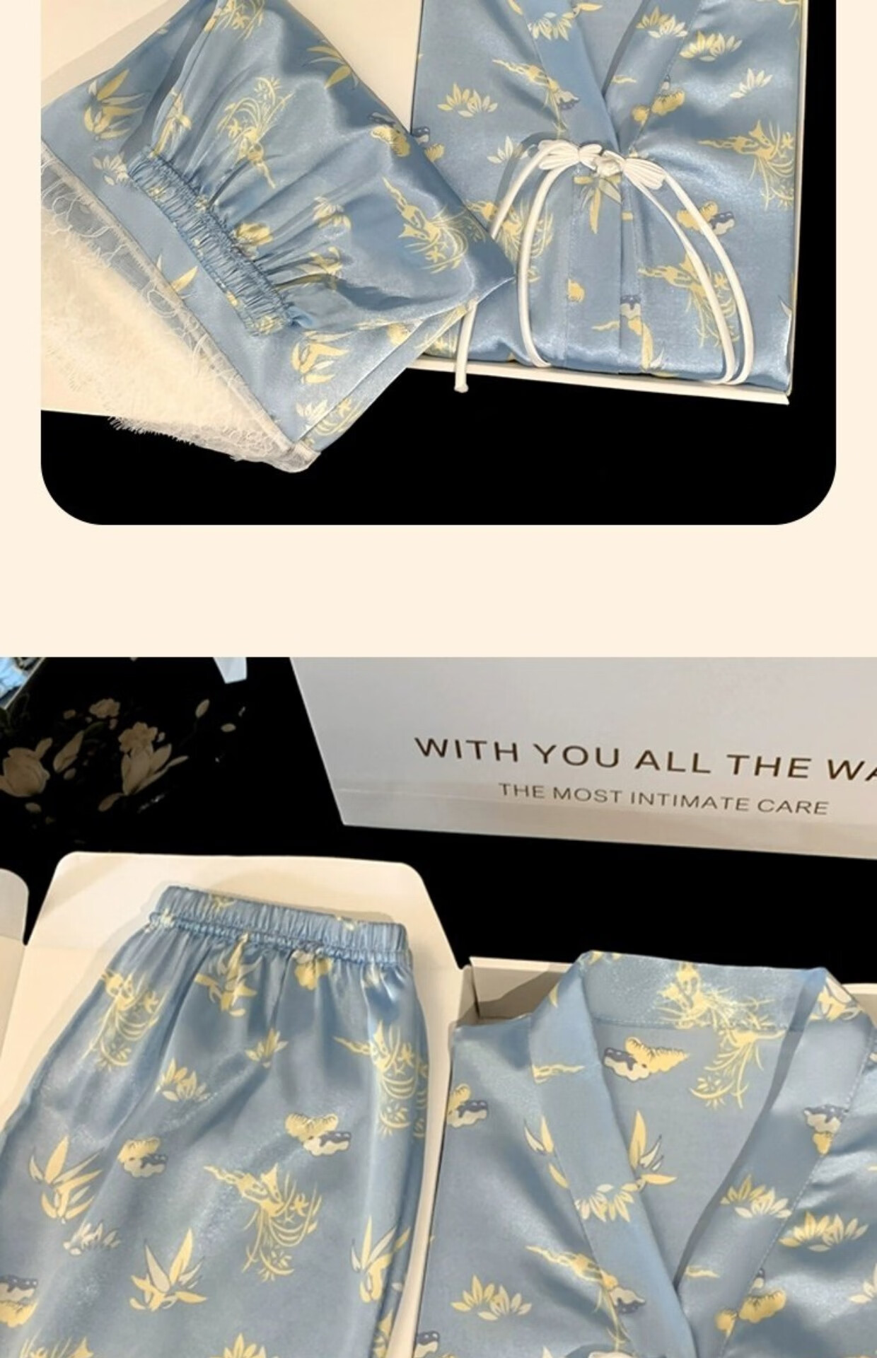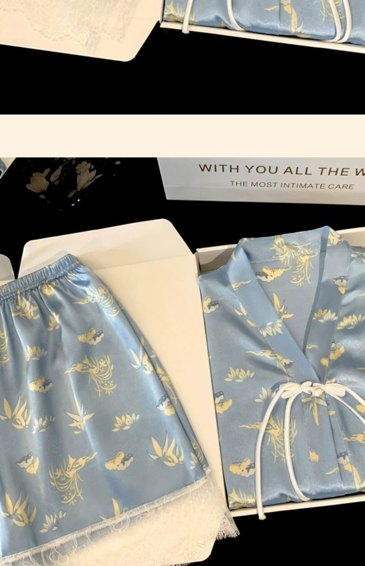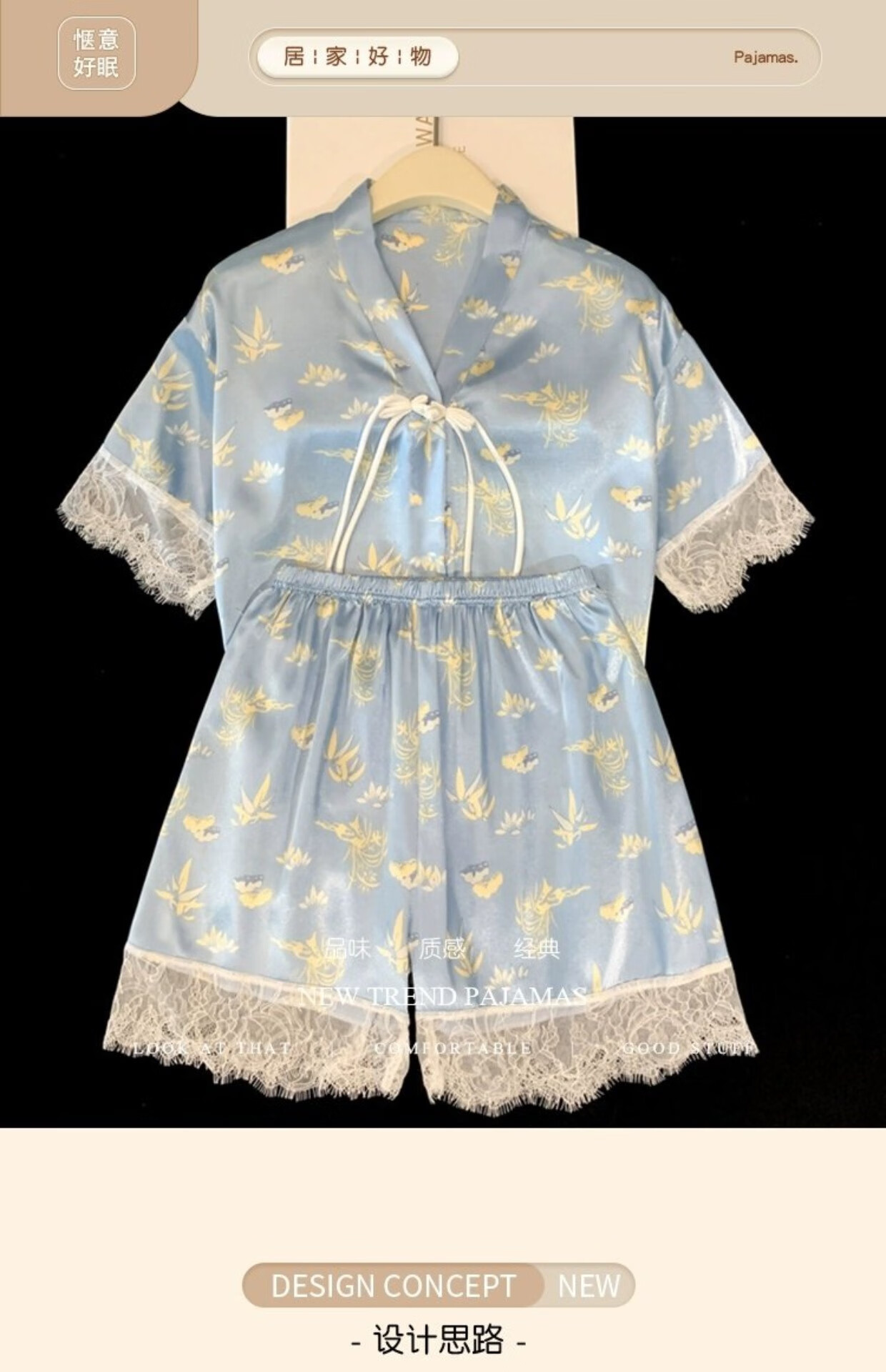 Palanduo estilo nacional retro nuevo estilo chino pijamas de seda de hielo de manga corta de verano de seda de algodón fino se puede usar fuera de casa traje de ropa de verano FS_9214# Cárdigan doble bolsillo corto de encaje M talla única