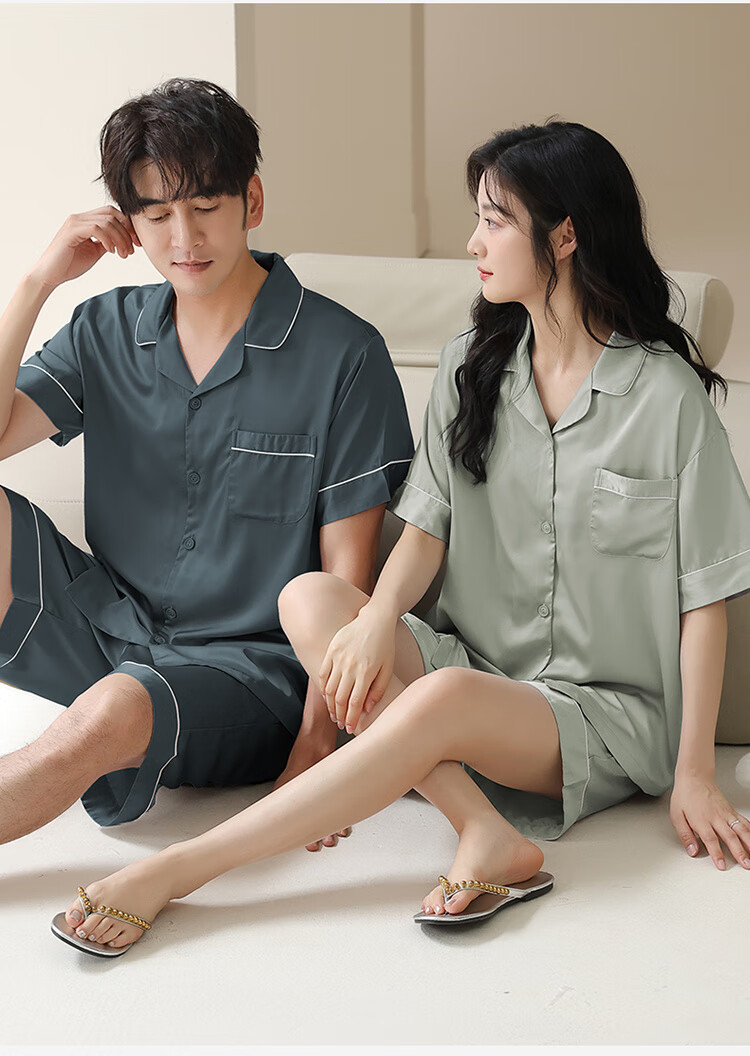 浪莎(LangSha)情侣睡衣夏季冰丝短袖睡裙2025新款感男女家居服套装 FT#16802女16602男-NS M 女款