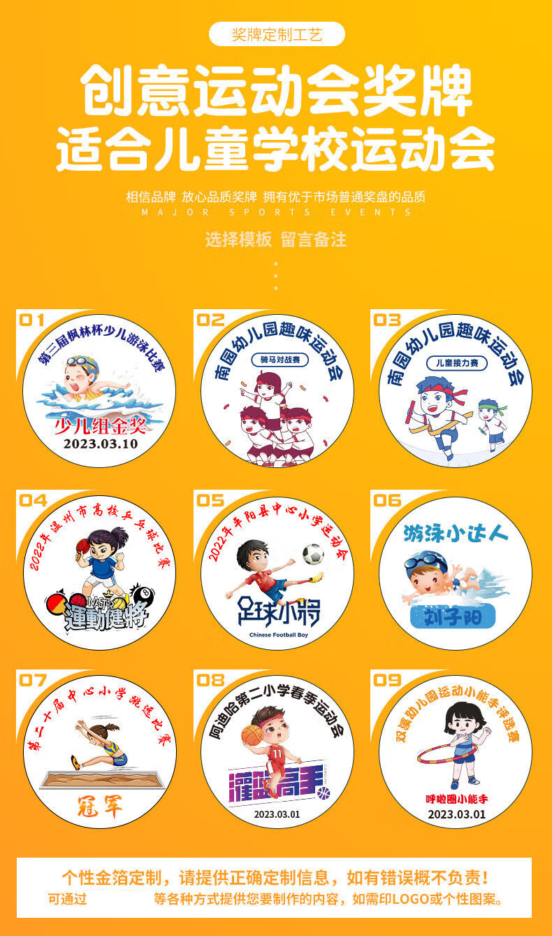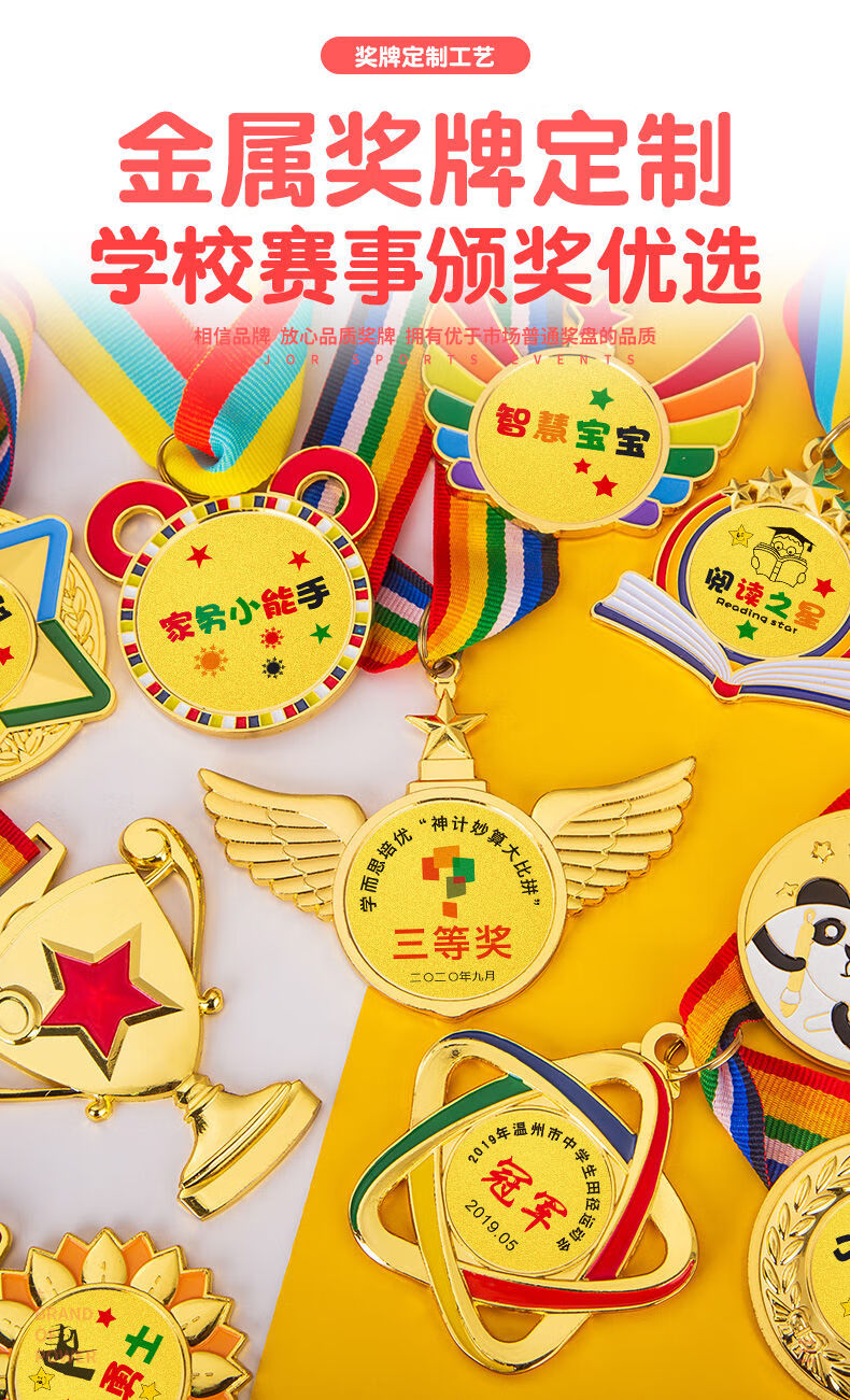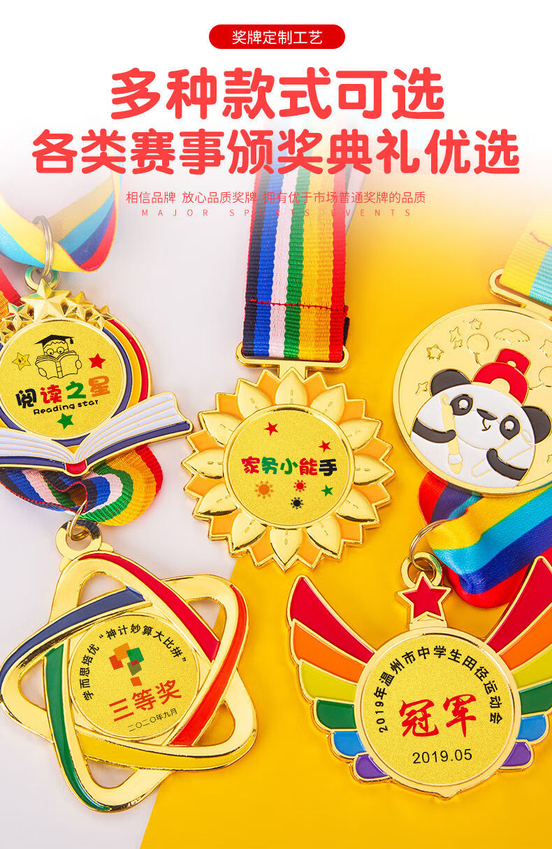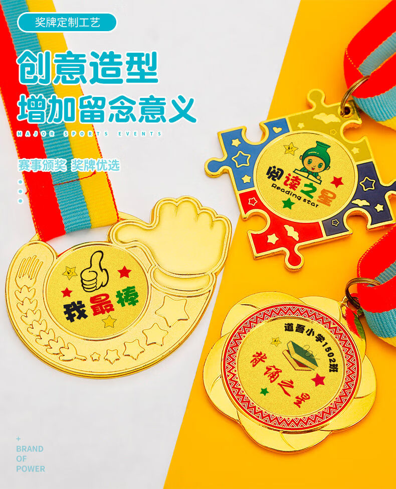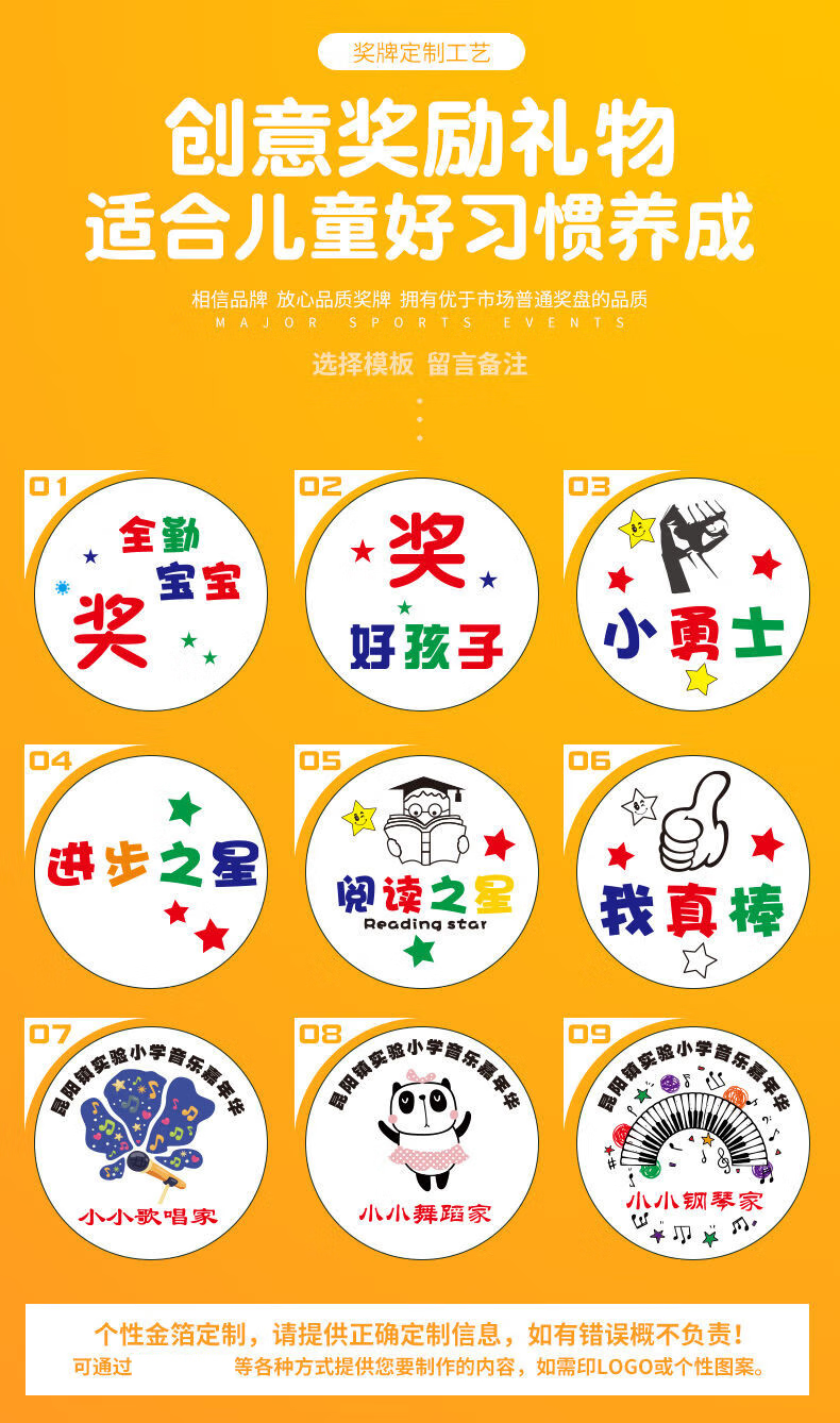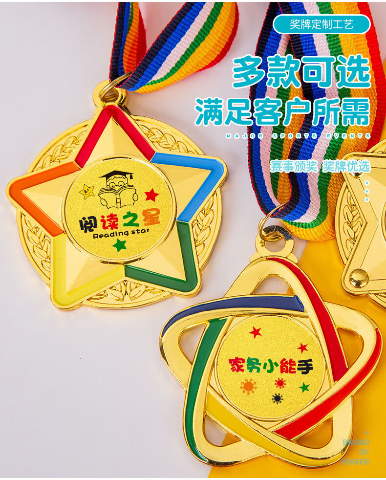萌之瑶奖牌定制定做幼儿园阅读明星学习之星奖励运动会儿童勇气勇敢勋章 723(颜色请备注) 奖牌
