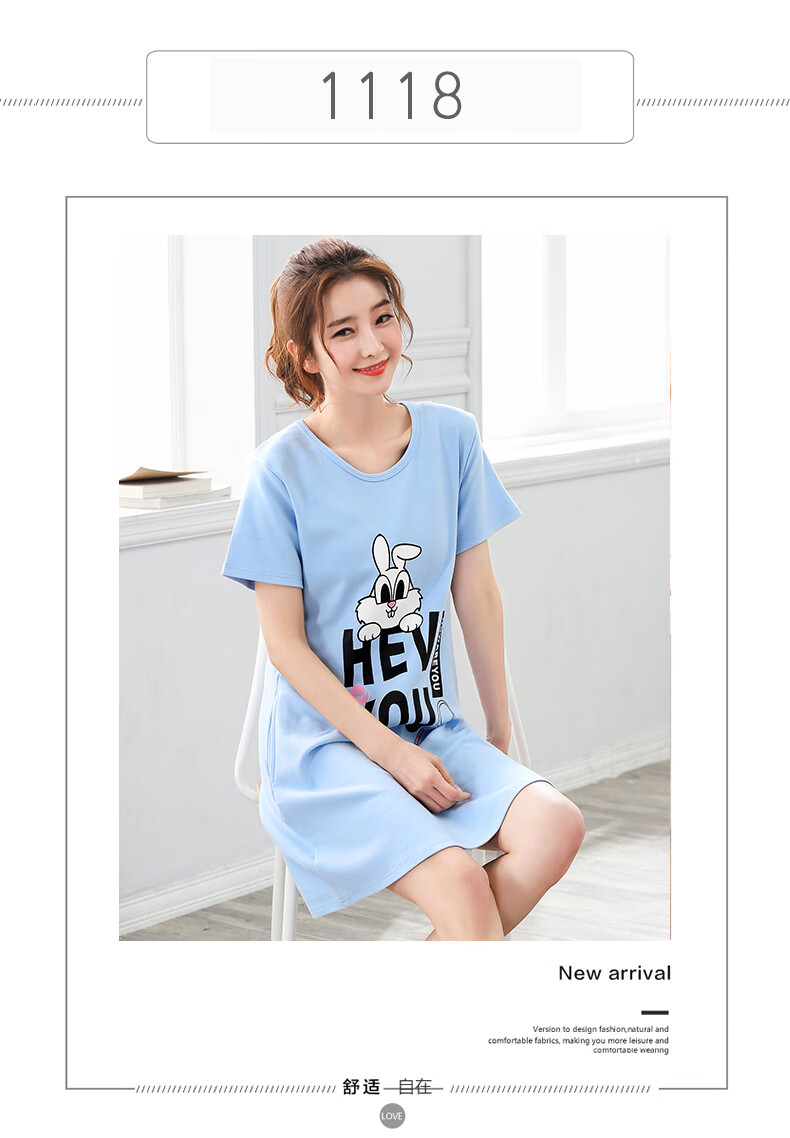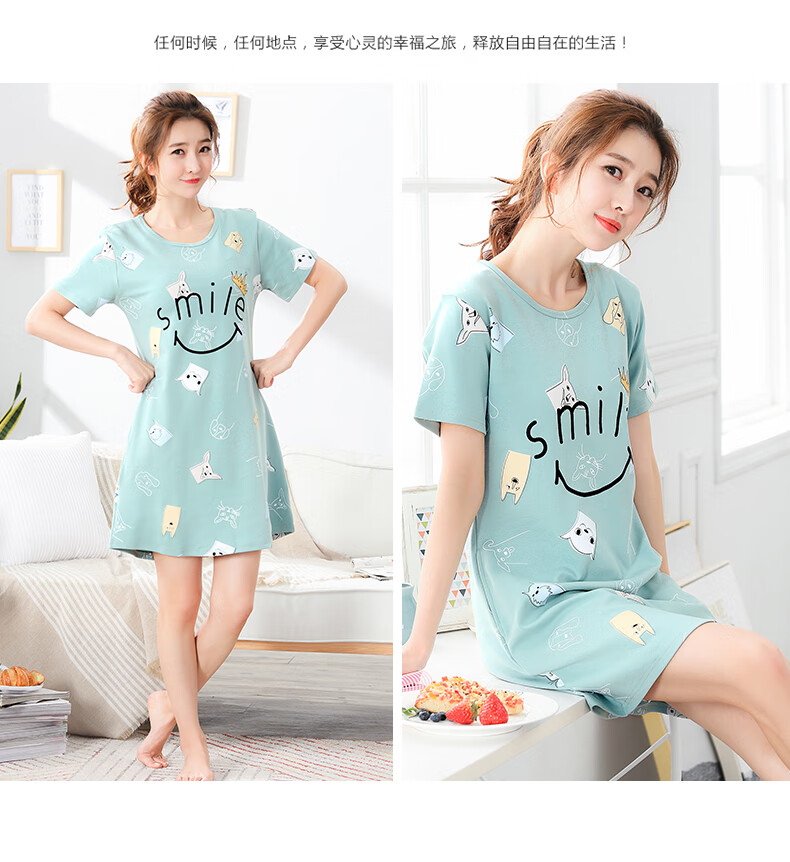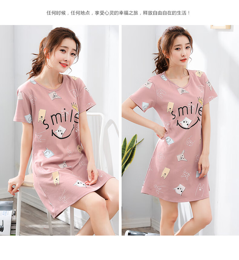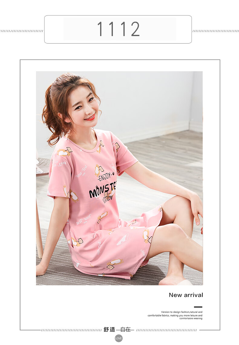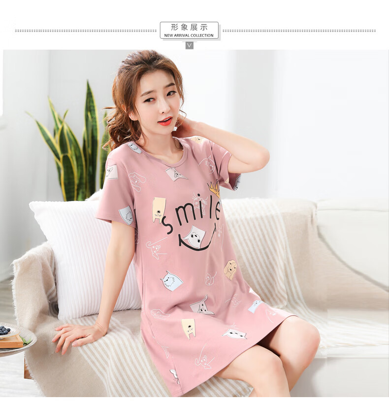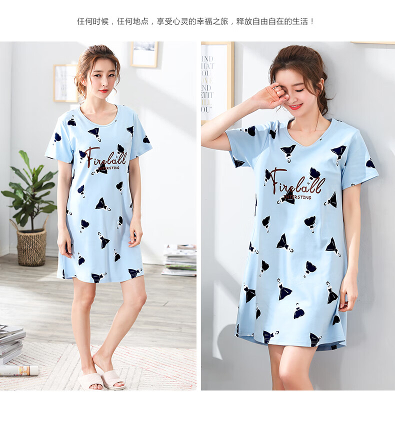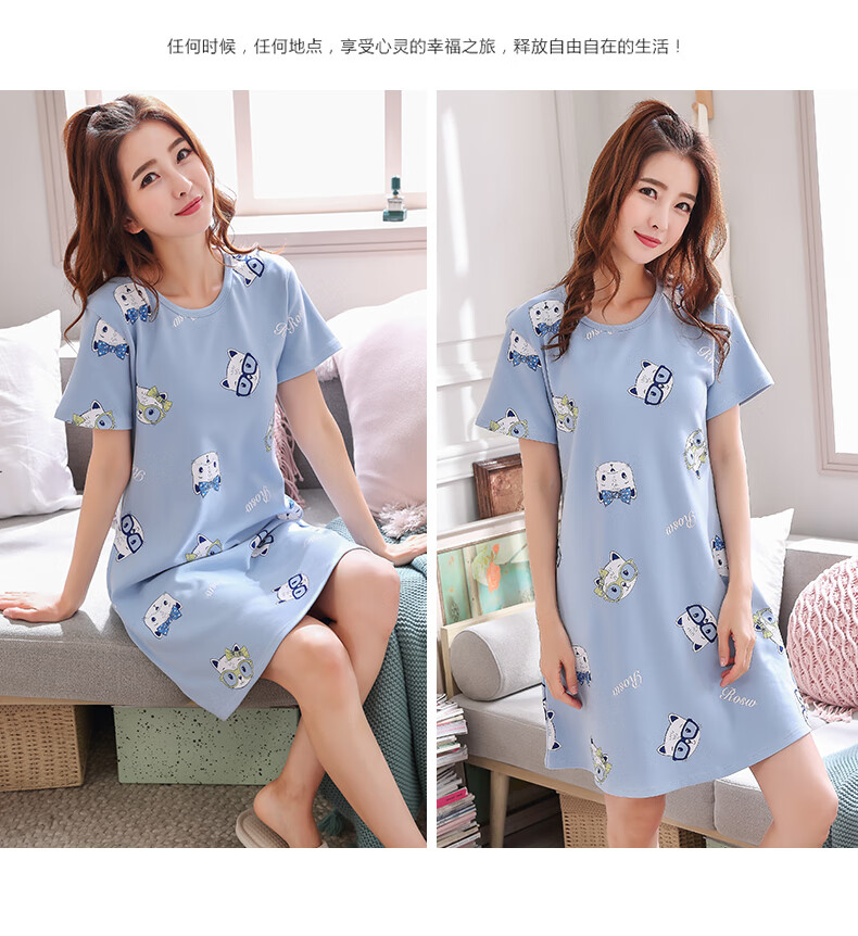 恋舒柔睡裙女款夏季棉质短袖2025新款家居服网红女士夏天夏款过膝睡衣裙 C1105 M 女(75-95斤)
