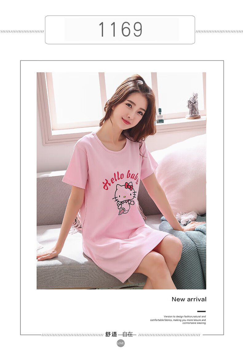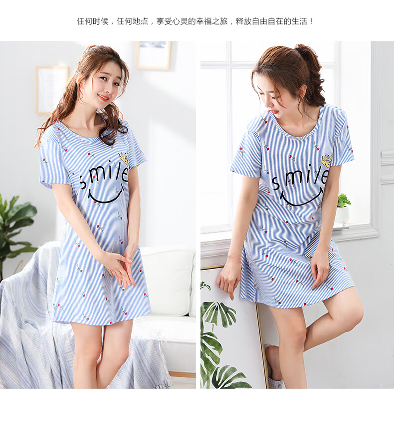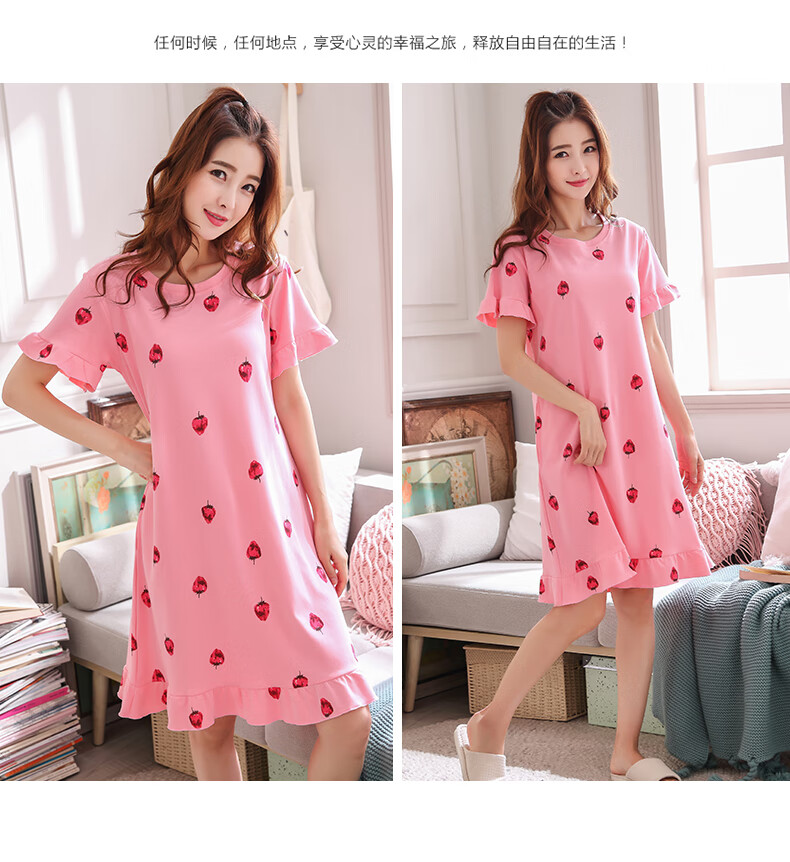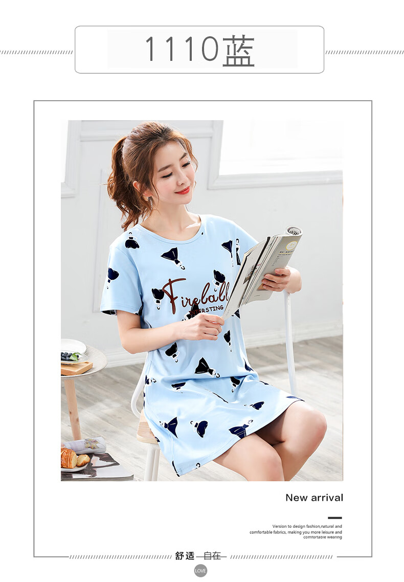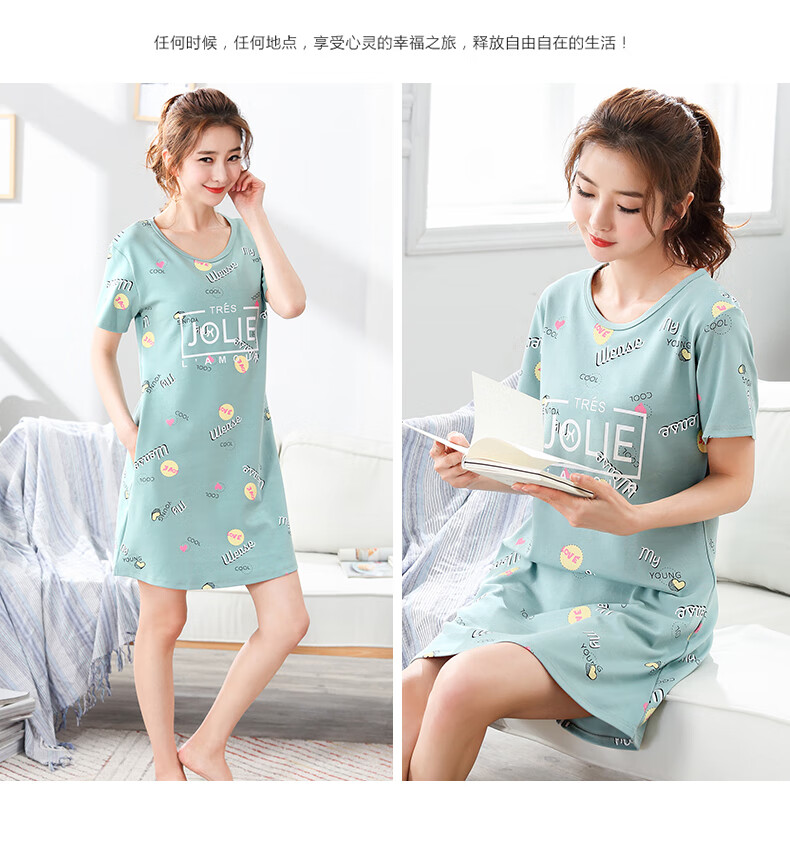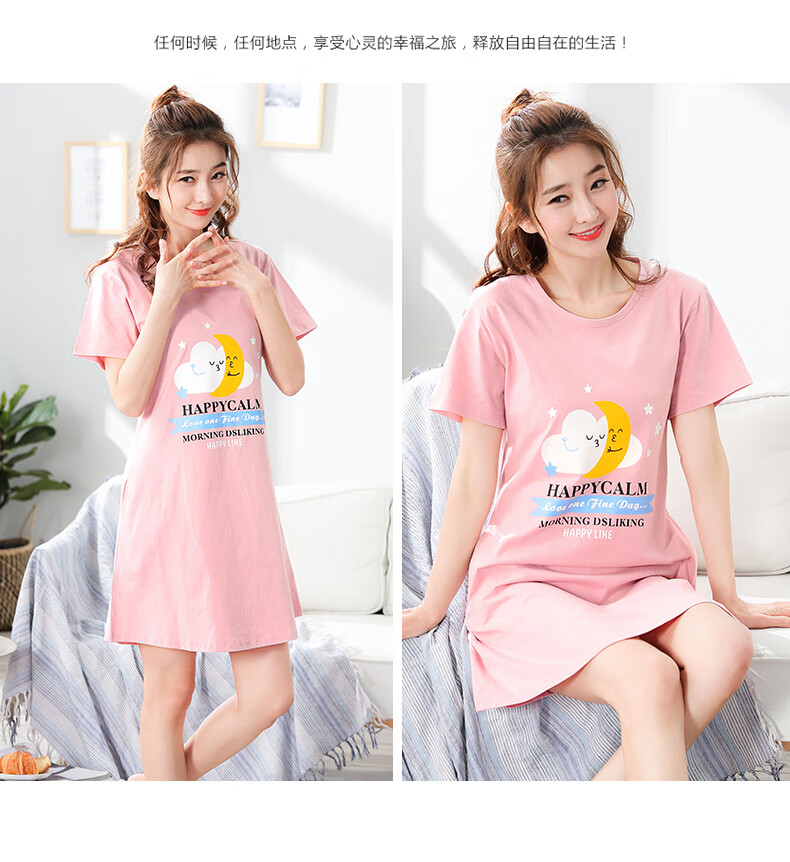 恋舒柔睡裙女款夏季棉质短袖2025新款家居服网红女士夏天夏款过膝睡衣裙 C1105 M 女(75-95斤)
