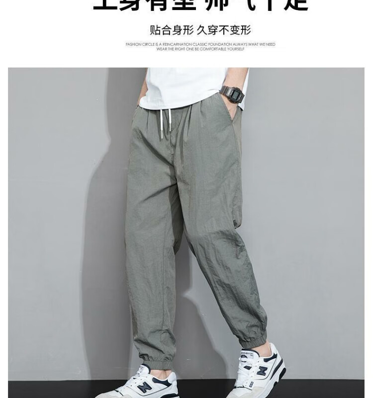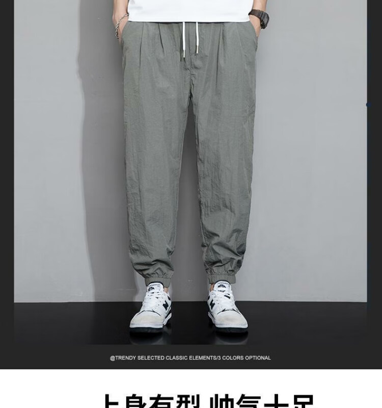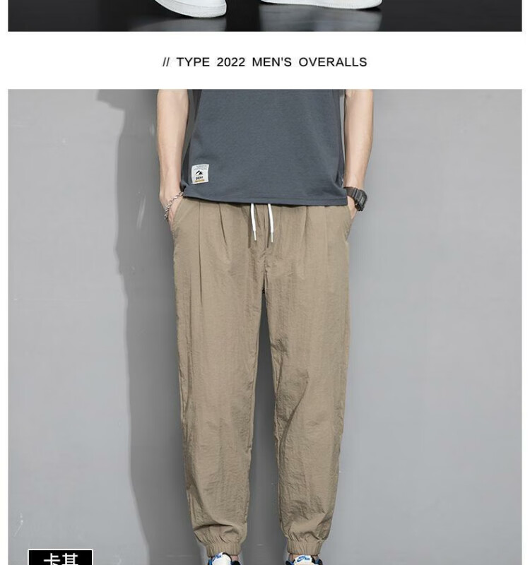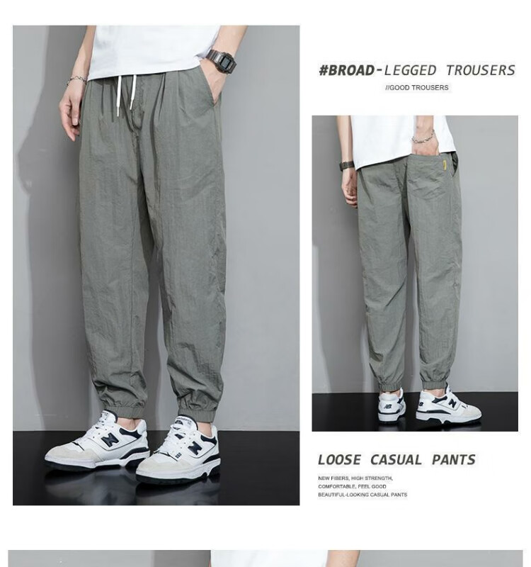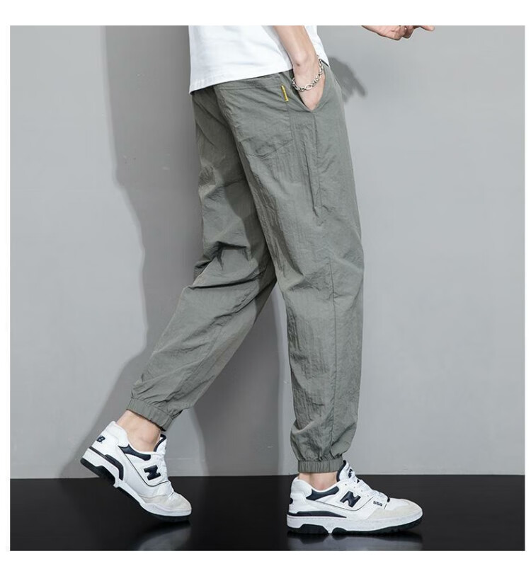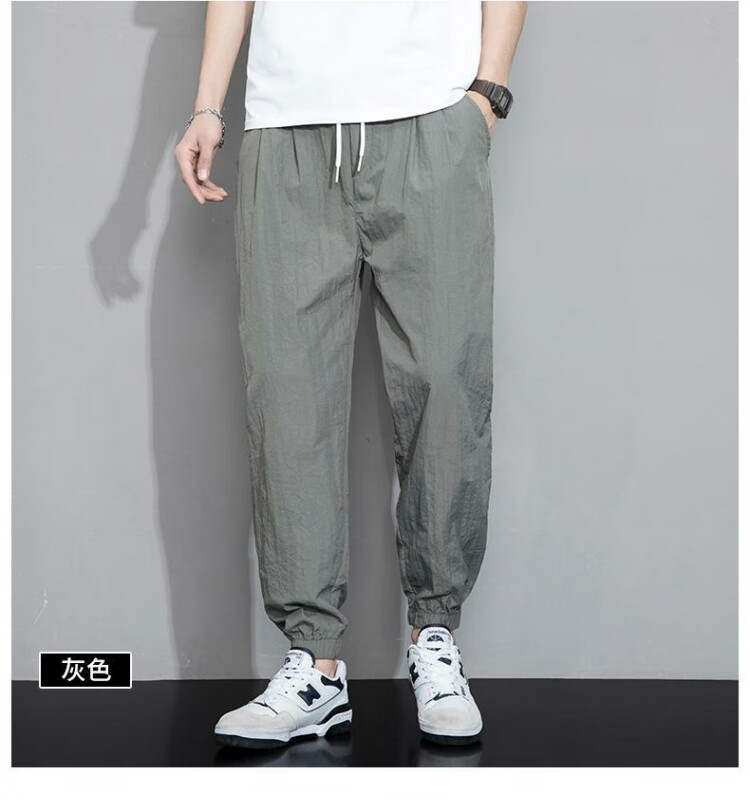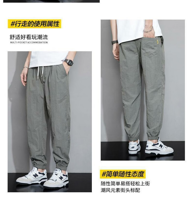 猫人(MiiOW)裤子男夏季薄款冰丝宽松潮牌百搭束脚哈伦速干休闲九分长裤子 灰色+卡其 M