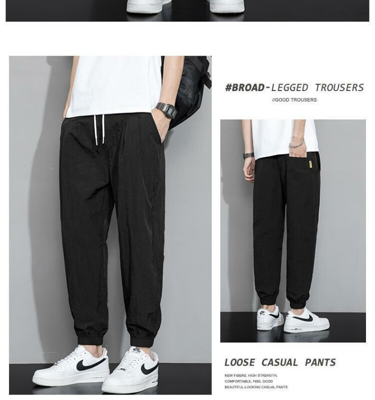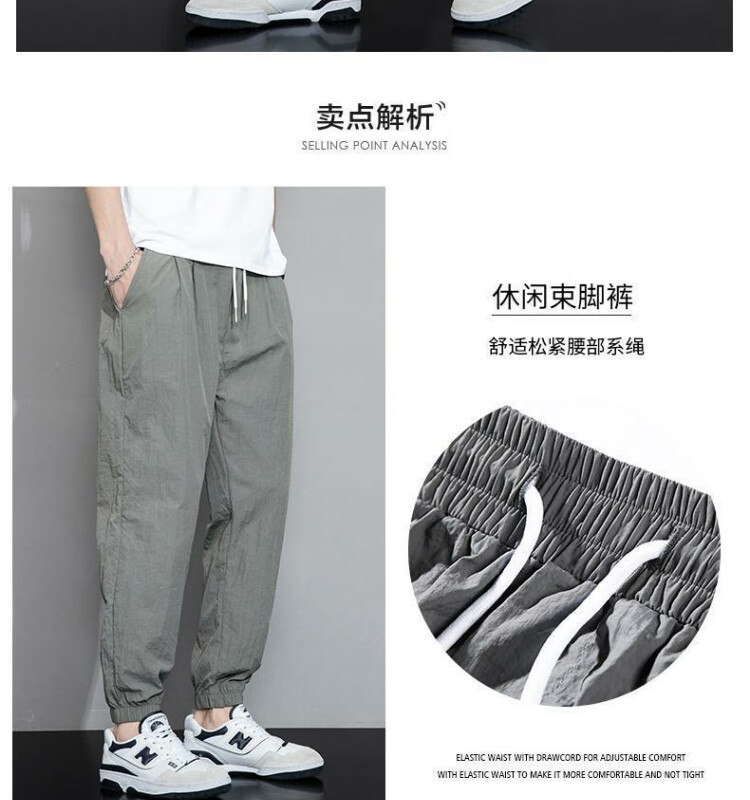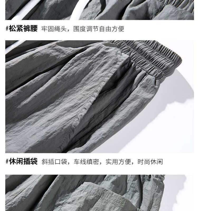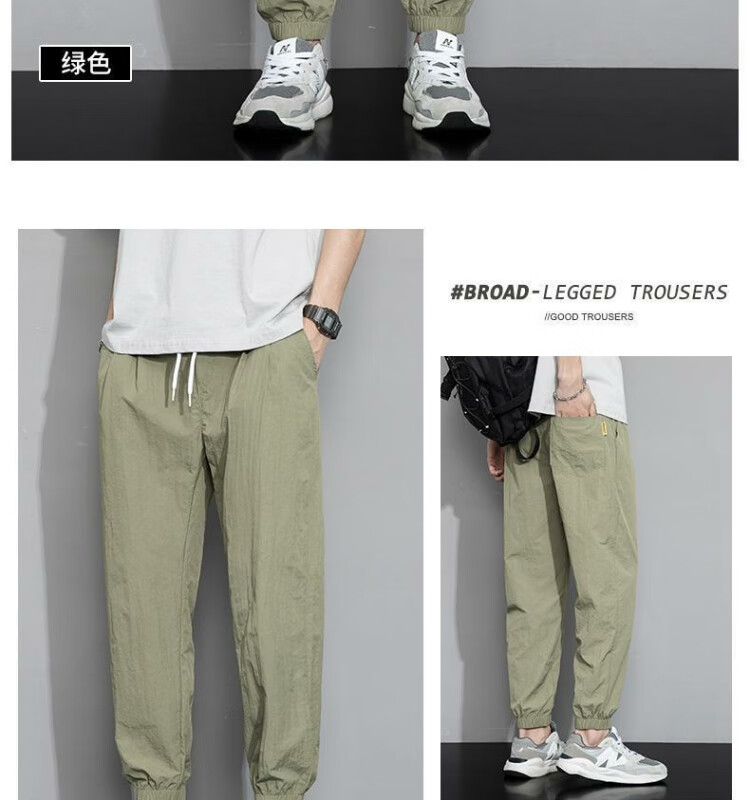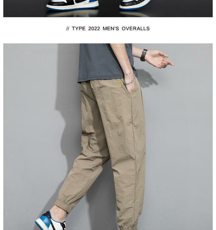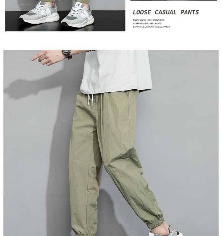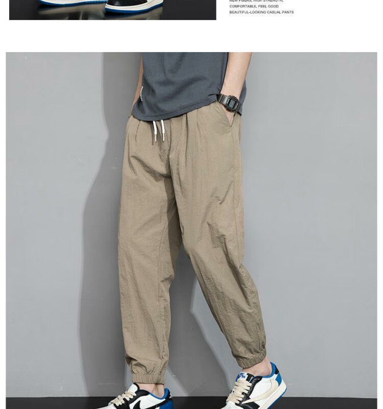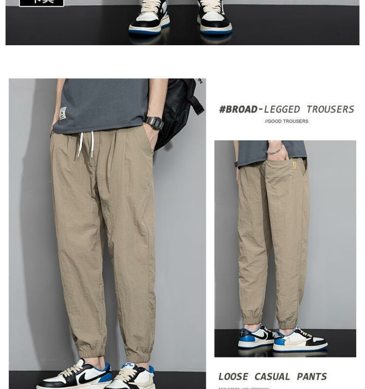猫人(MiiOW)裤子男夏季薄款冰丝宽松潮牌百搭束脚哈伦速干休闲九分长裤子 灰色+卡其 M