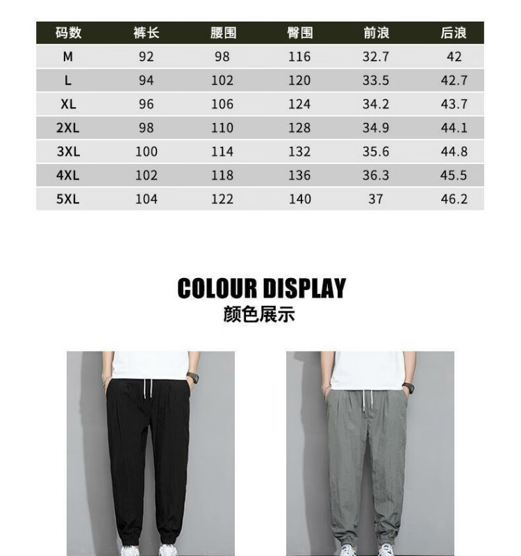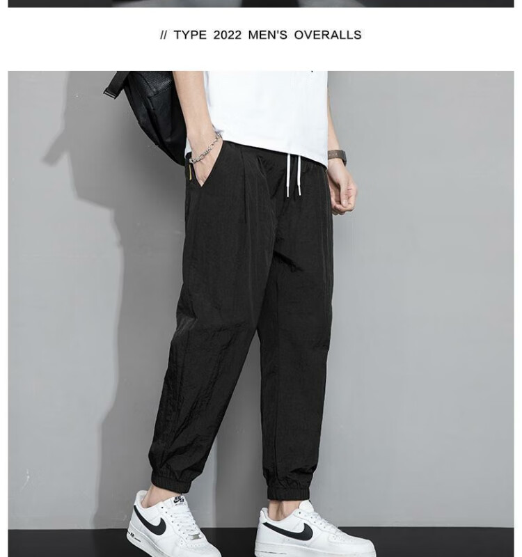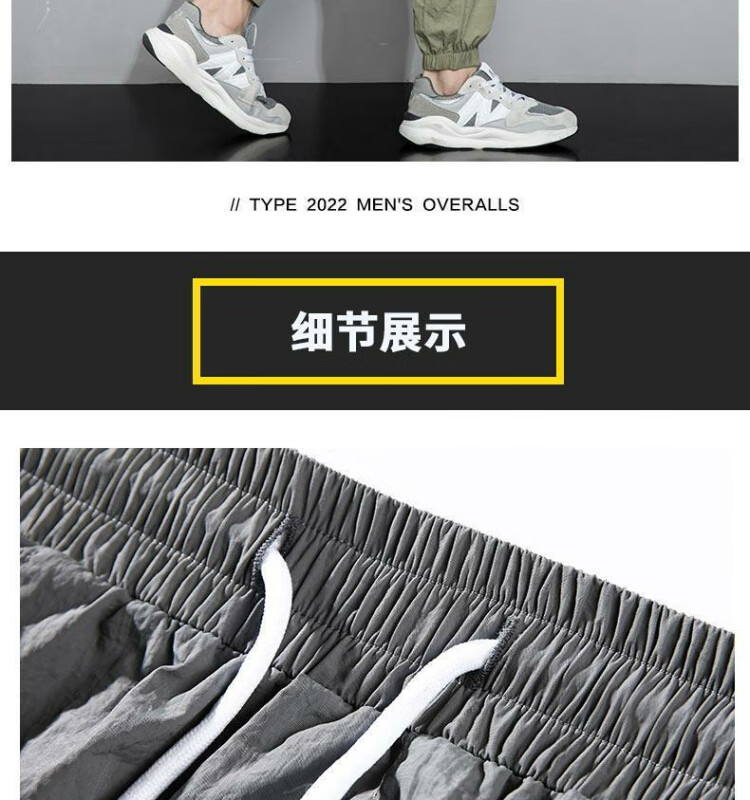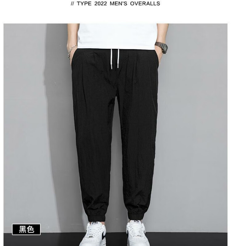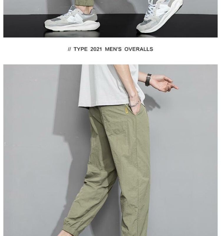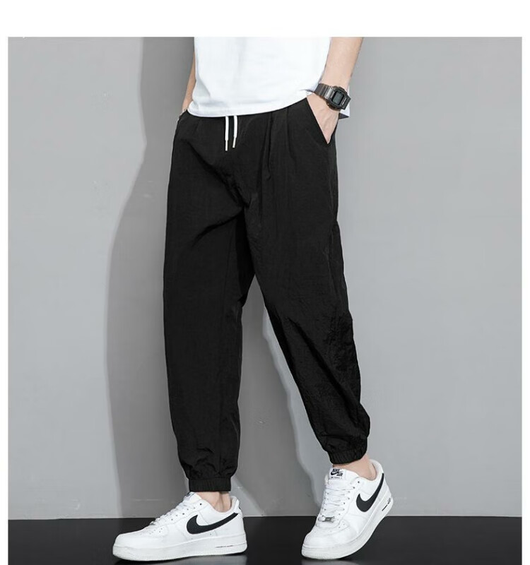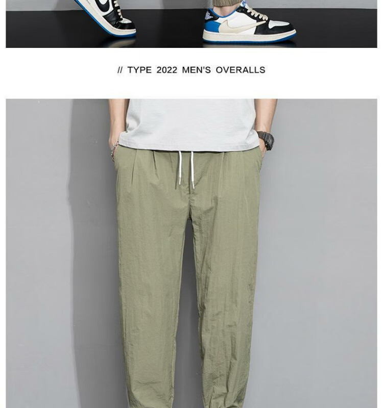 猫人(MiiOW)裤子男夏季薄款冰丝宽松潮牌百搭束脚哈伦速干休闲九分长裤子 灰色+卡其 M