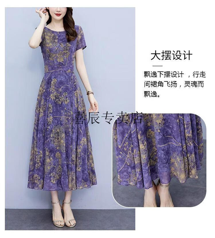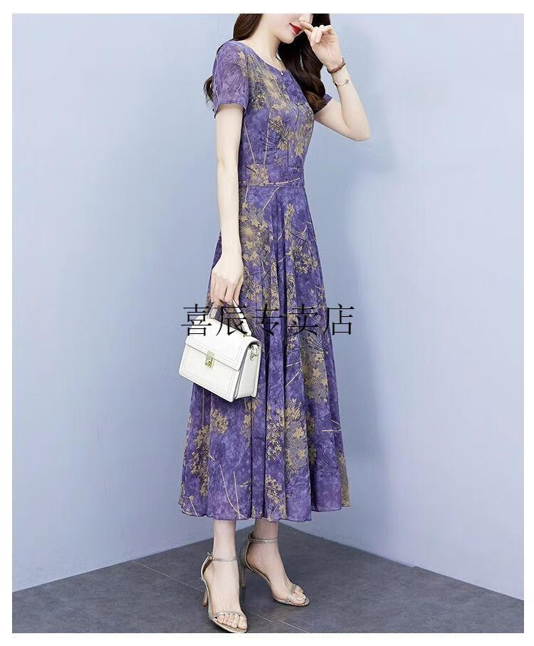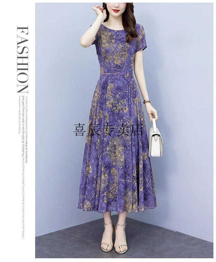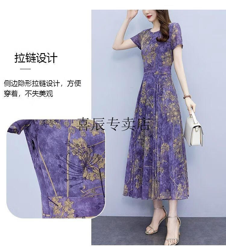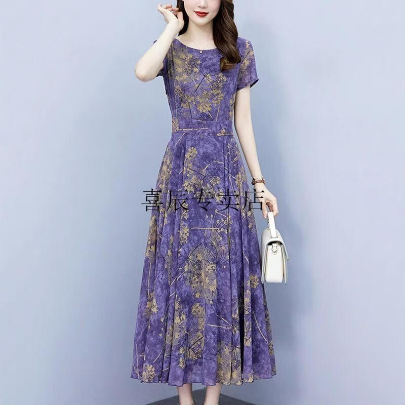 葭安【特价捡漏】真丝连衣裙紫色碎花女年夏季妈妈大码气质修身遮肚子 紫色 实体店质量 -仅剩4件 XL 120-140斤
