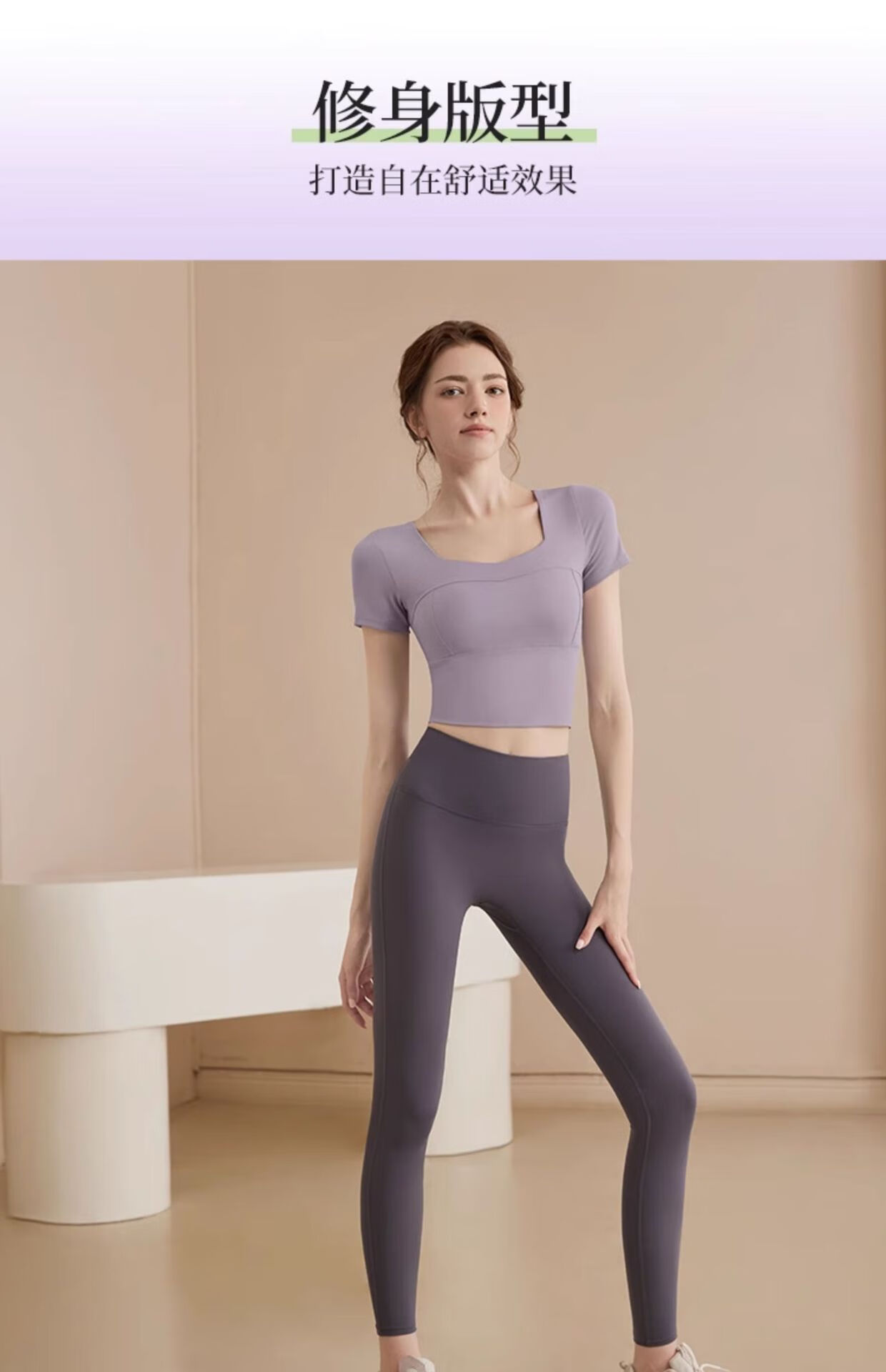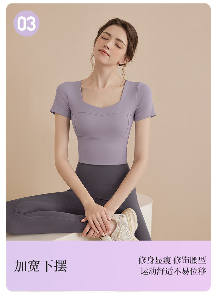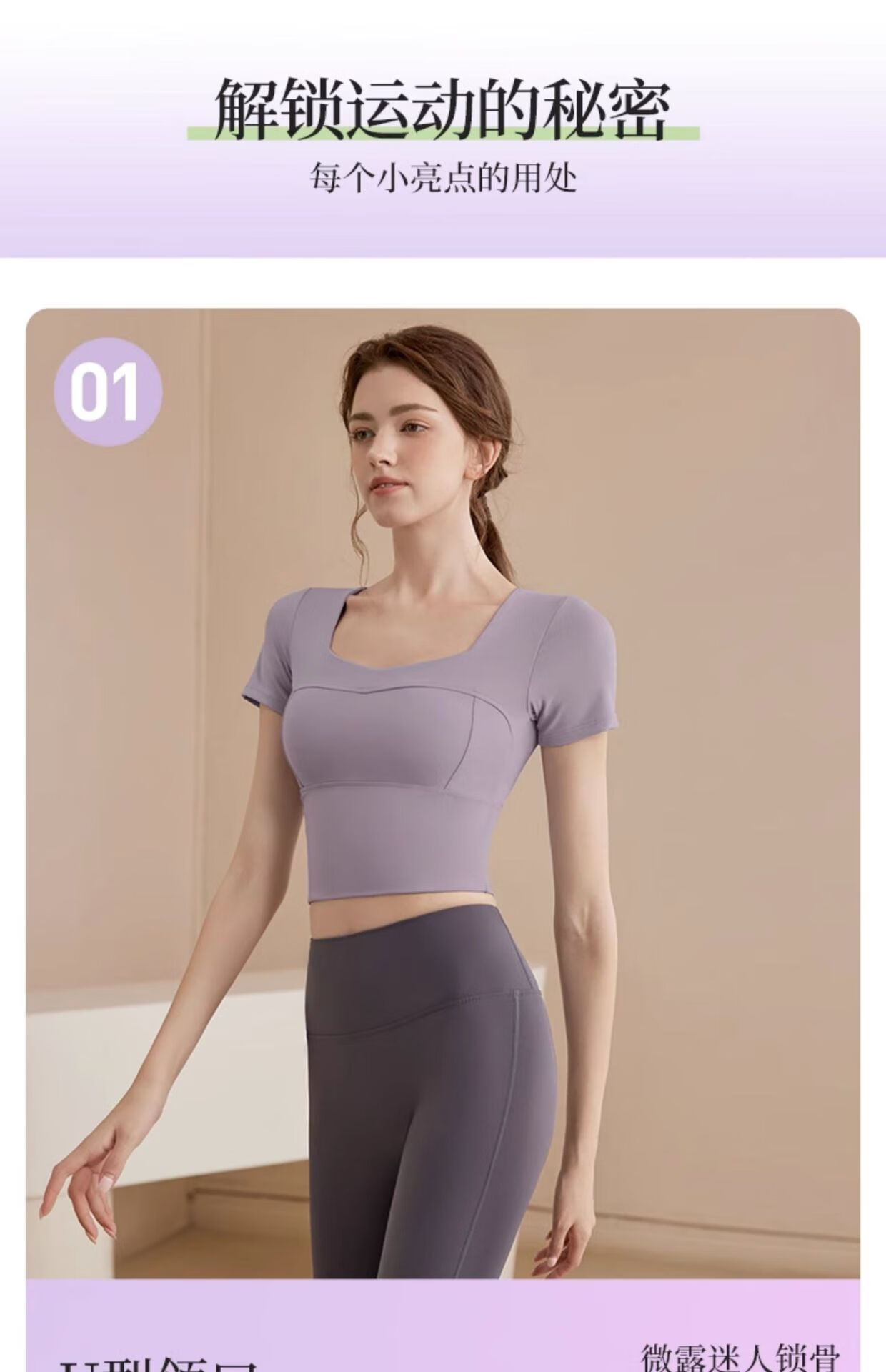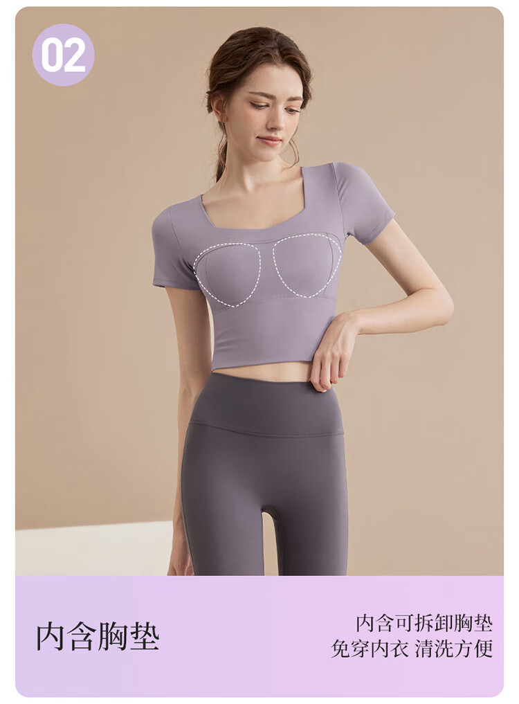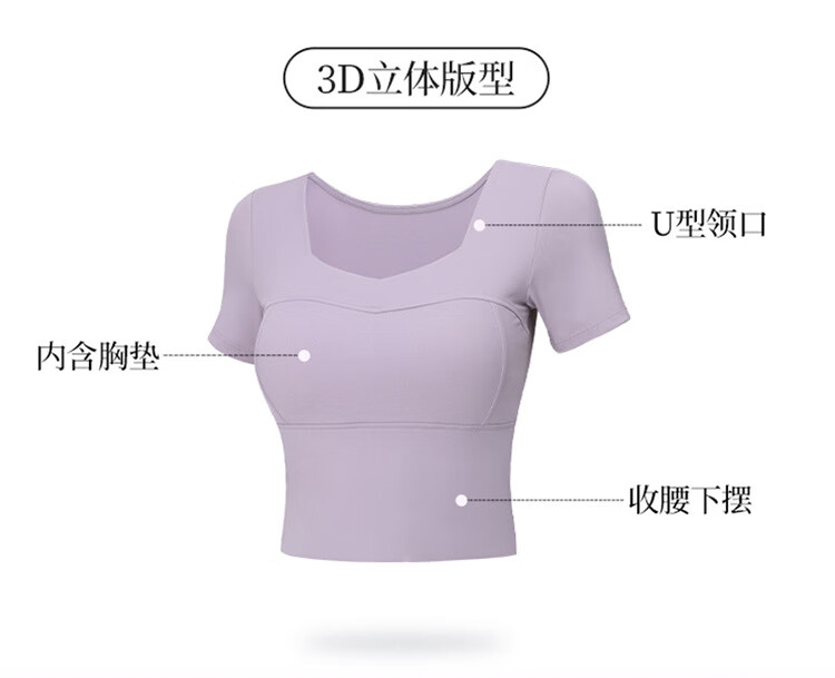 Ropa de yoga sumergida brillante Camiseta corta con almohadilla para el pecho para mujer Pilates profesional Adelgazamiento Correr Deportes Fitness Top de manga corta Púrpura L
