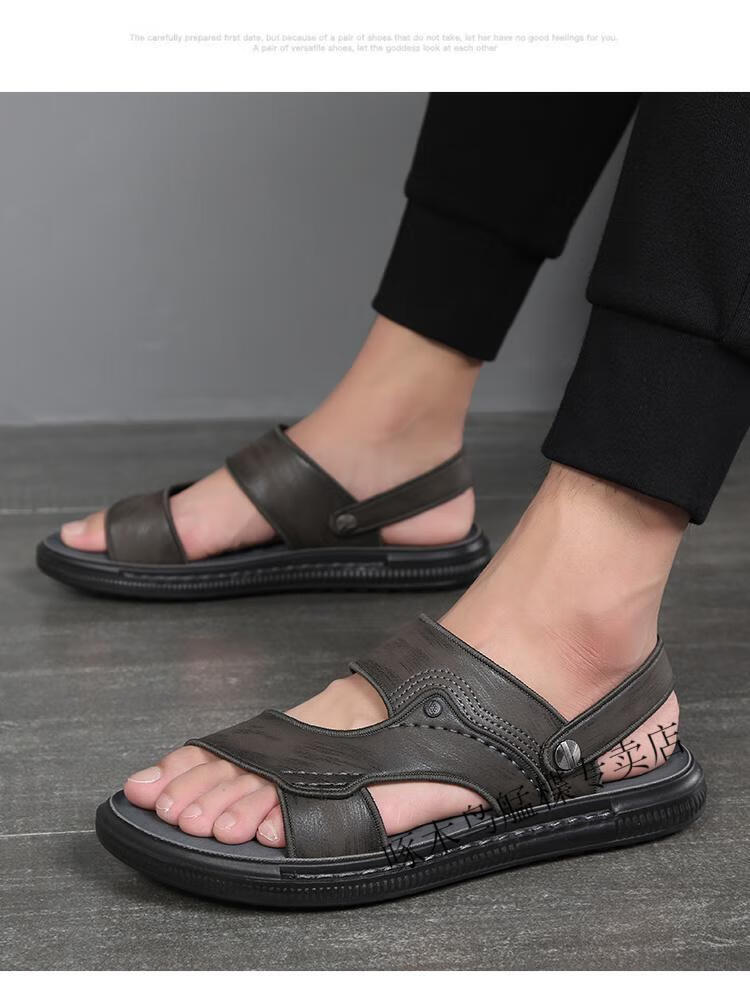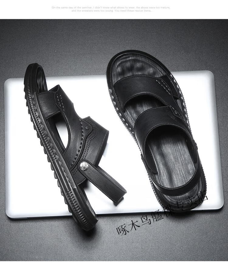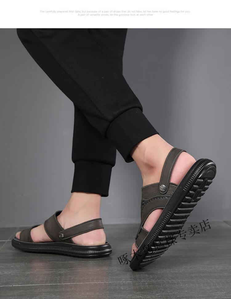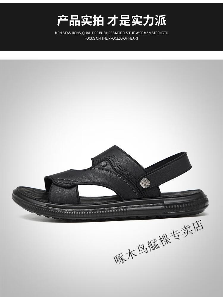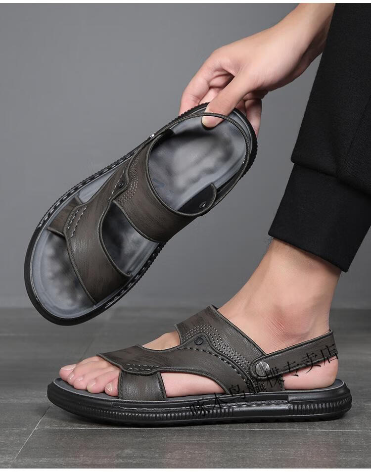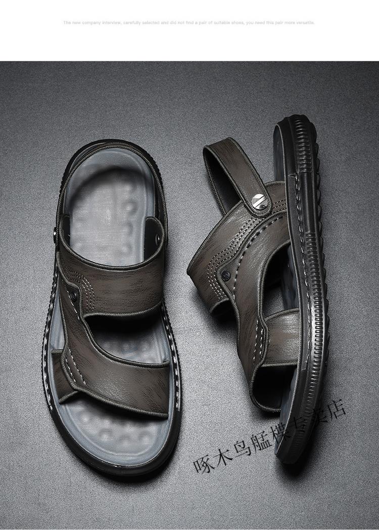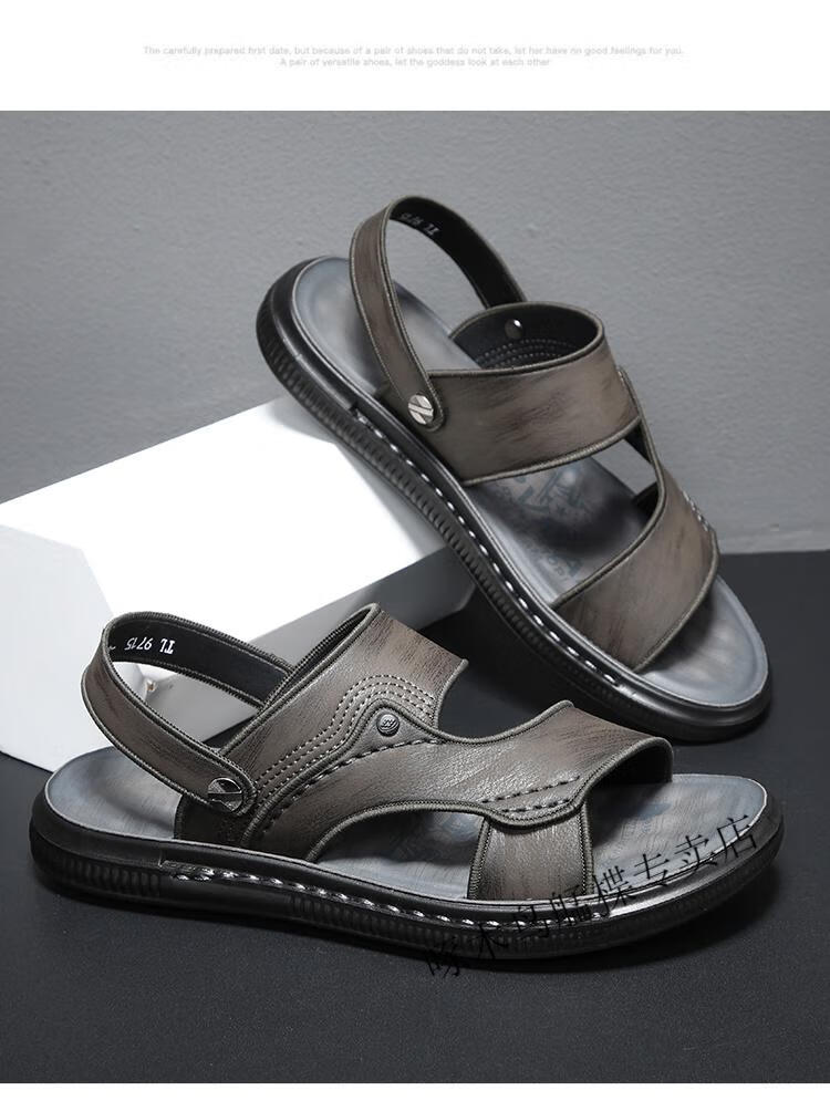 啄木鸟男士凉鞋男夏季2025新款真皮拖鞋休闲男鞋外穿开车沙滩皮凉拖两穿 9715 灰色 升级款 37