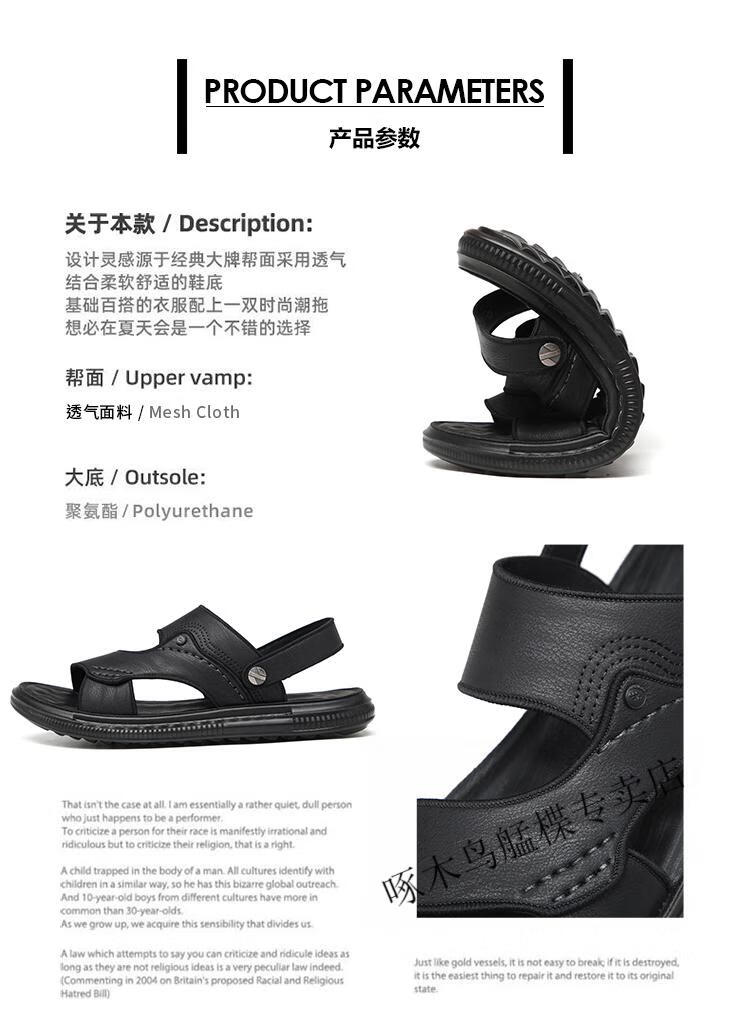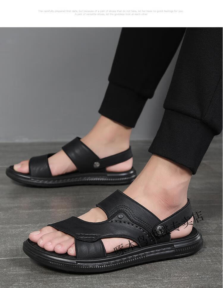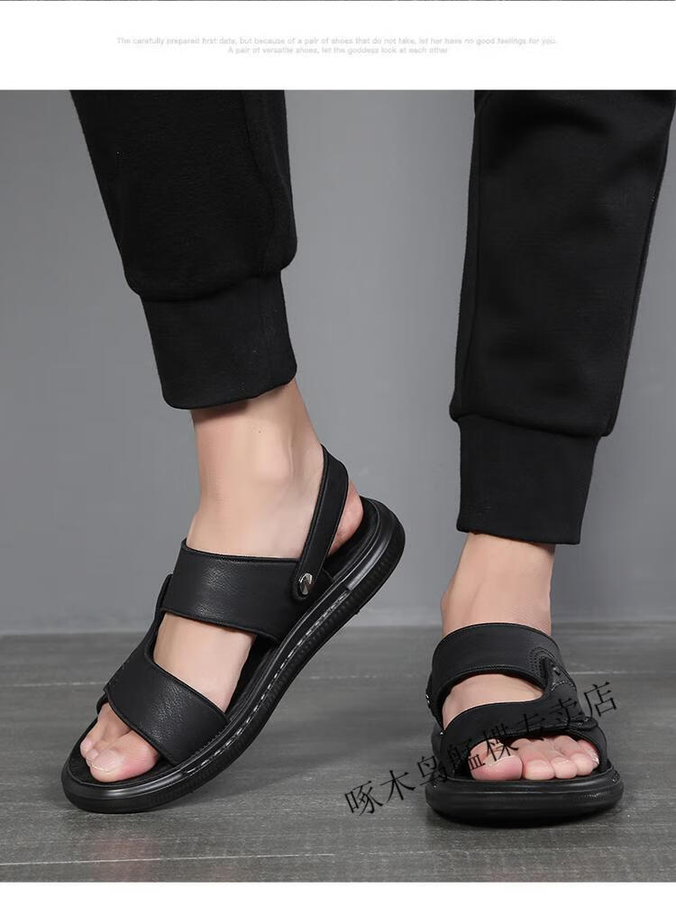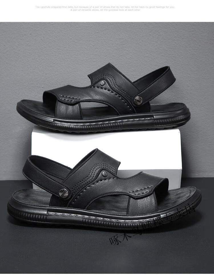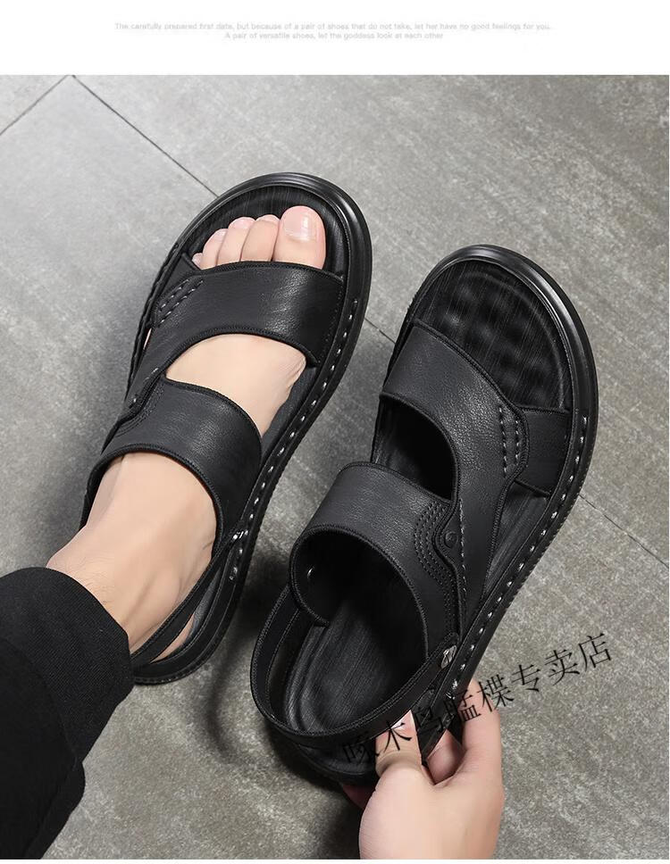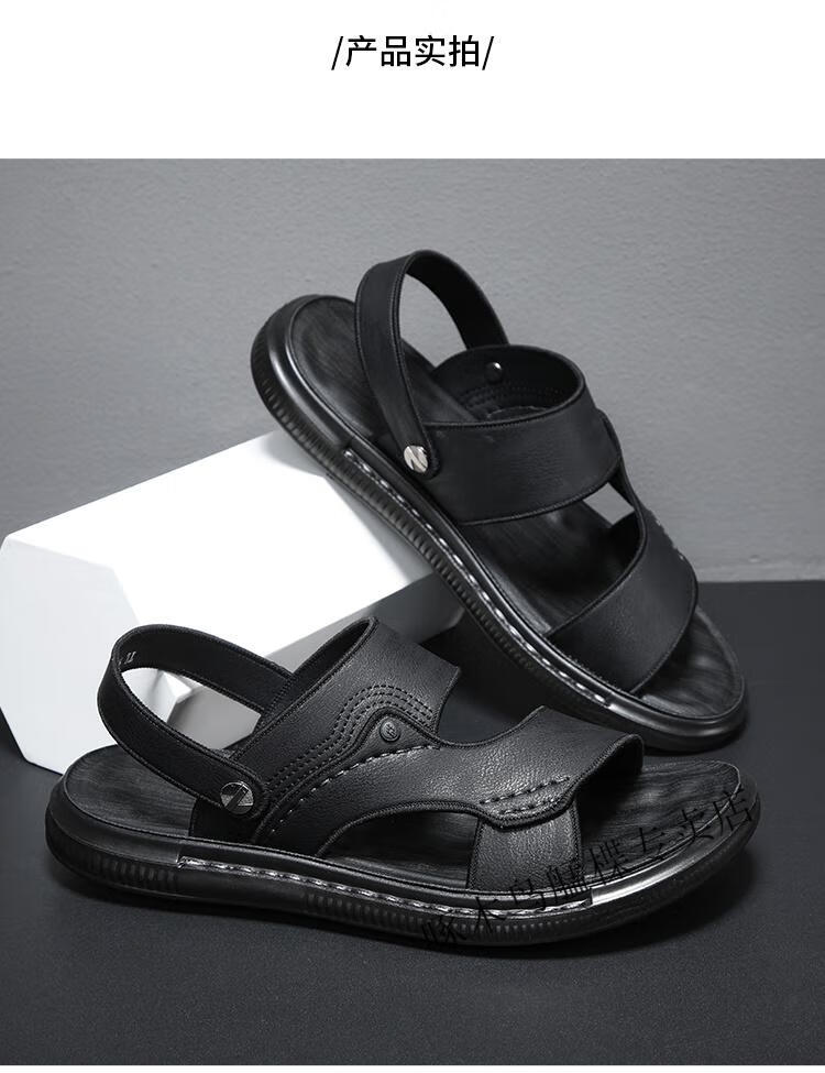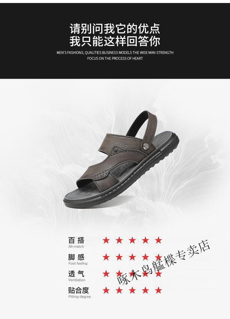 啄木鸟男士凉鞋男夏季2025新款真皮拖鞋休闲男鞋外穿开车沙滩皮凉拖两穿 9715 灰色 升级款 37