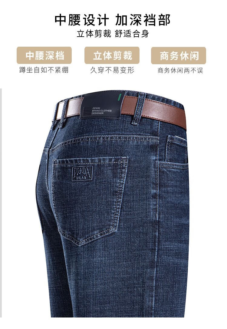 罗蒙(ROMON)春牛仔裤男高腰弹力休闲男裤宽松休闲中年爸爸夏季长裤子 3892黑色 38 (3 尺腰围)
