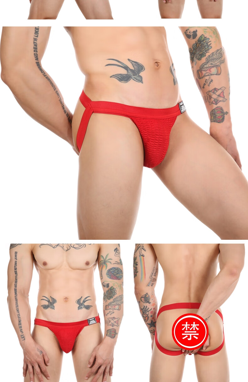 Men's Sexy Double T-Pants Low-Waist Sports Hip-Lifting Underwear Men's Back-Empty T-Pants Large Size T-Pants Small Socks Black S