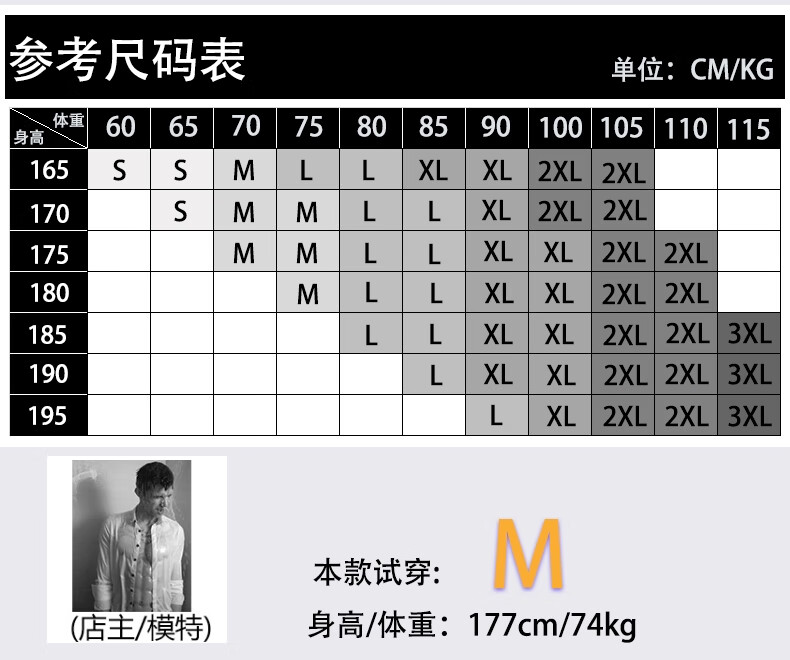 China (cm) 160-165/84-86 165-170 / 88-90 167-172 / 92-96 168-173 / 98-102 170-176 / 106-110
