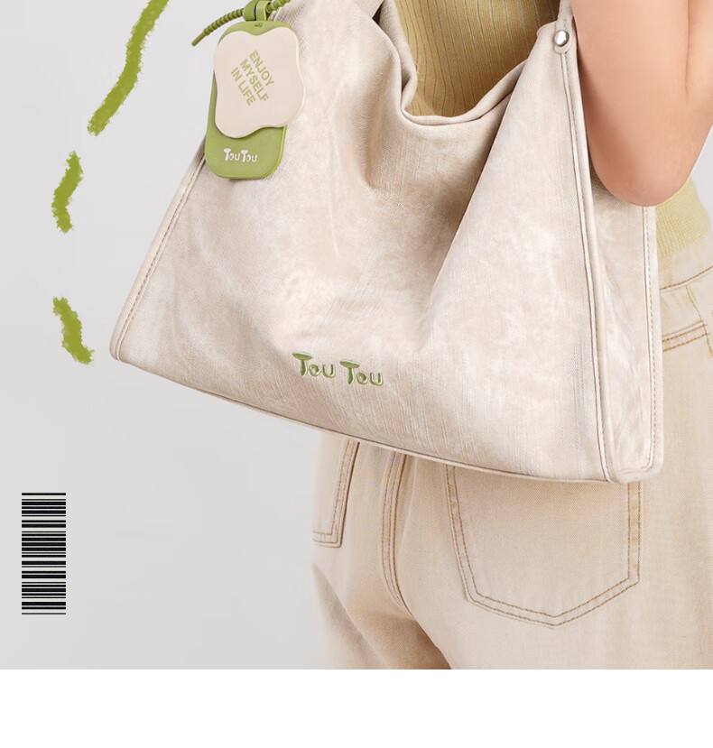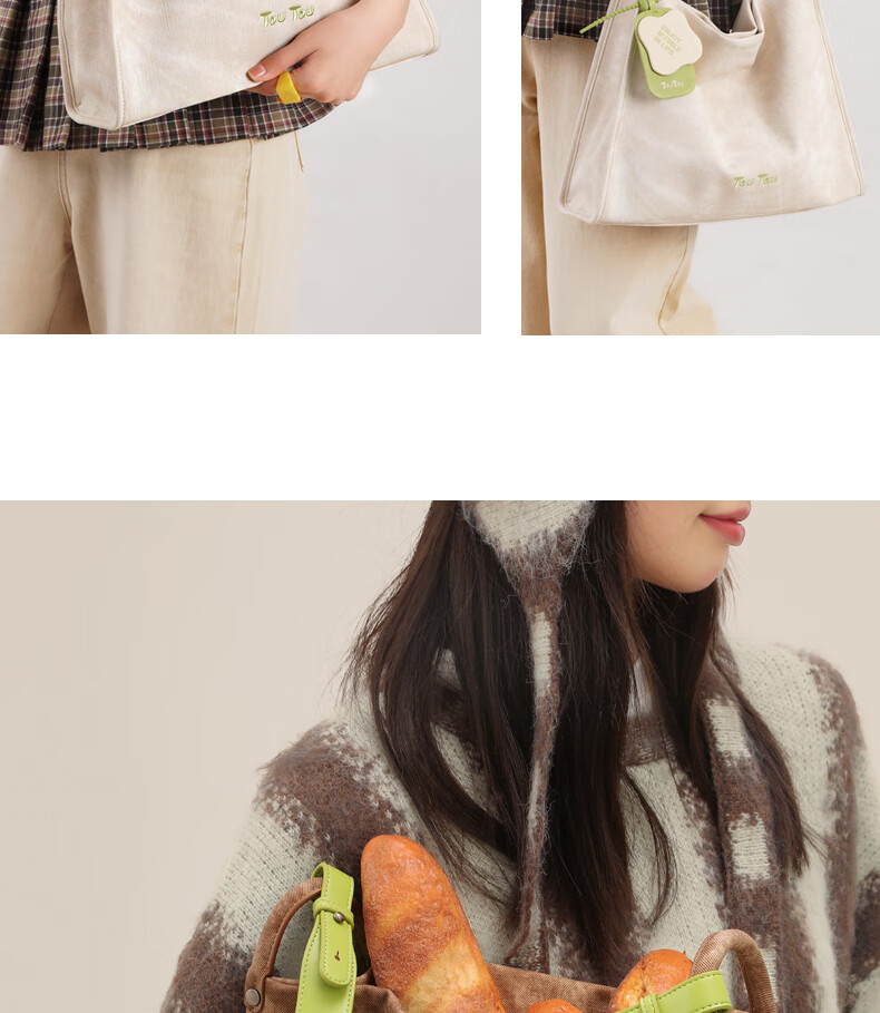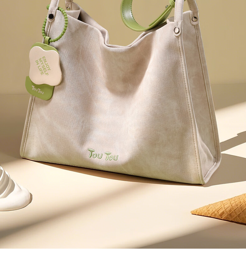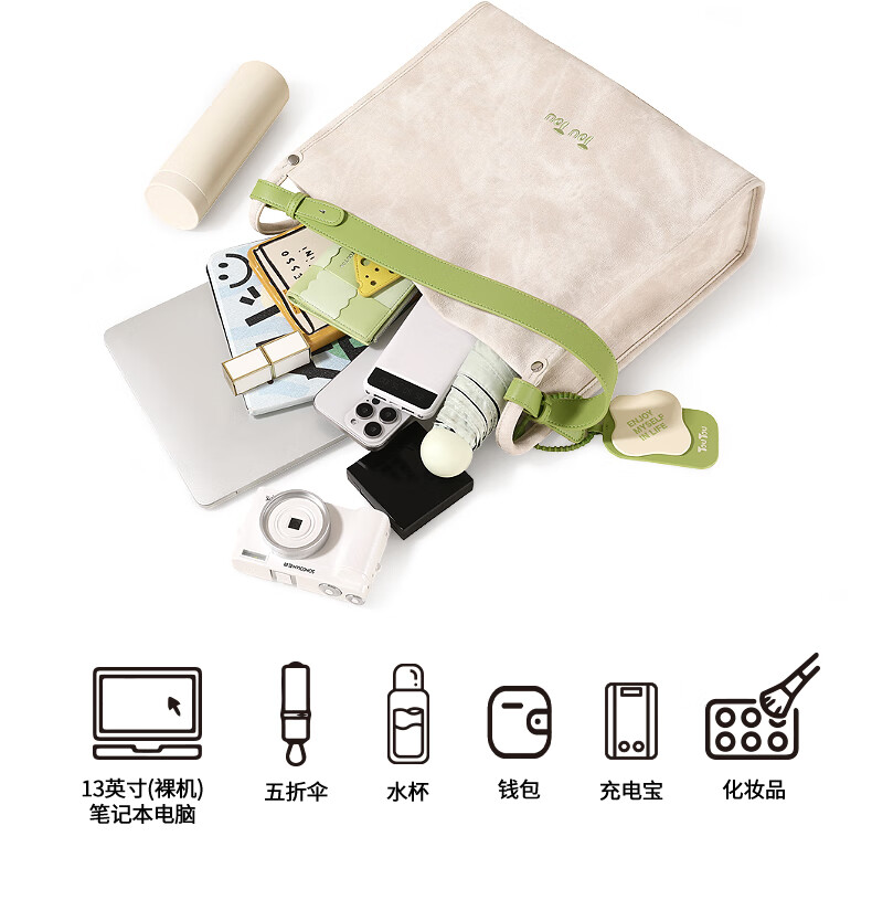 toutou抹茶托特包2025春季新款撞色大容量通勤质感百搭腋下大包包 现货奶油白春上新浅春穿搭