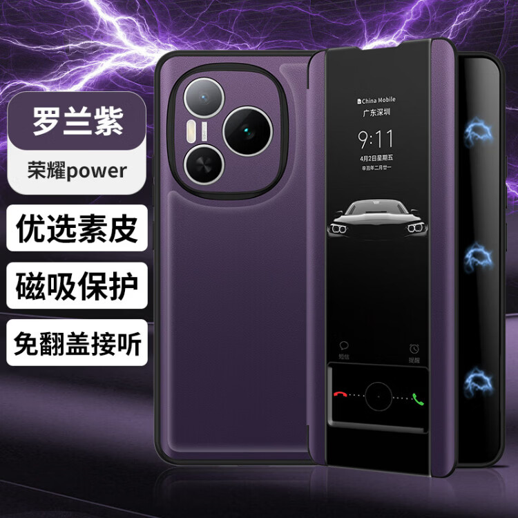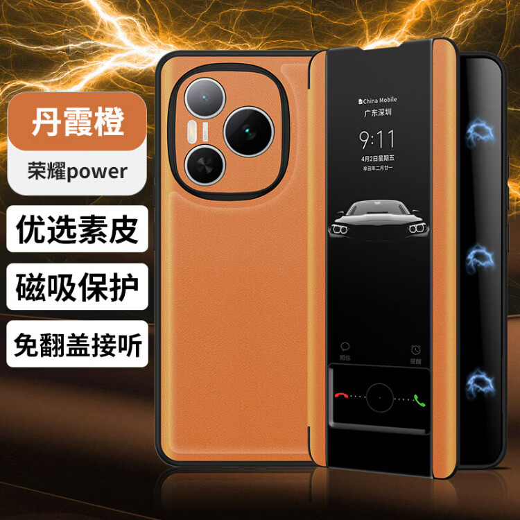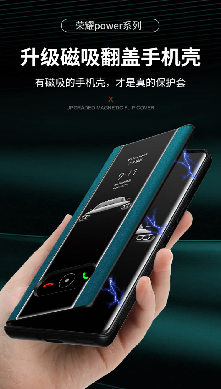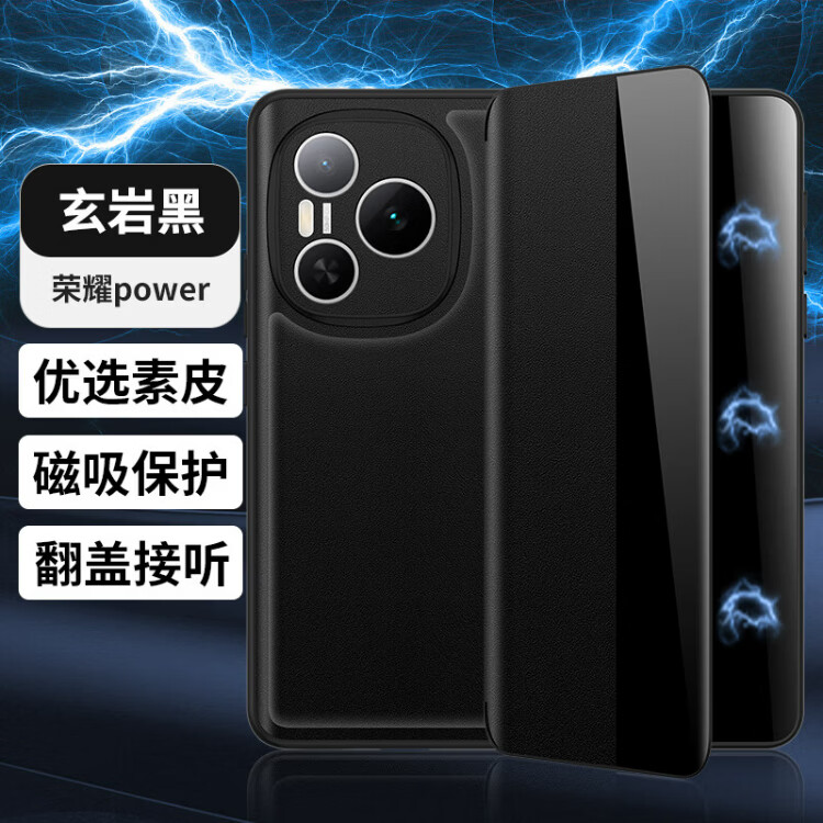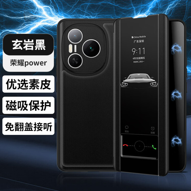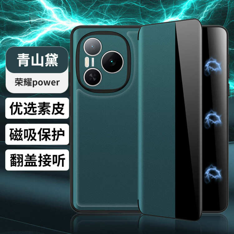 德曼尼 DAYMONY荣耀Power手机壳磁吸翻盖式保护套honor系列素皮新款全包防摔权力商务高级感外壳男女款 青山黛(素皮磁吸 免翻盖接听)+膜 荣耀power