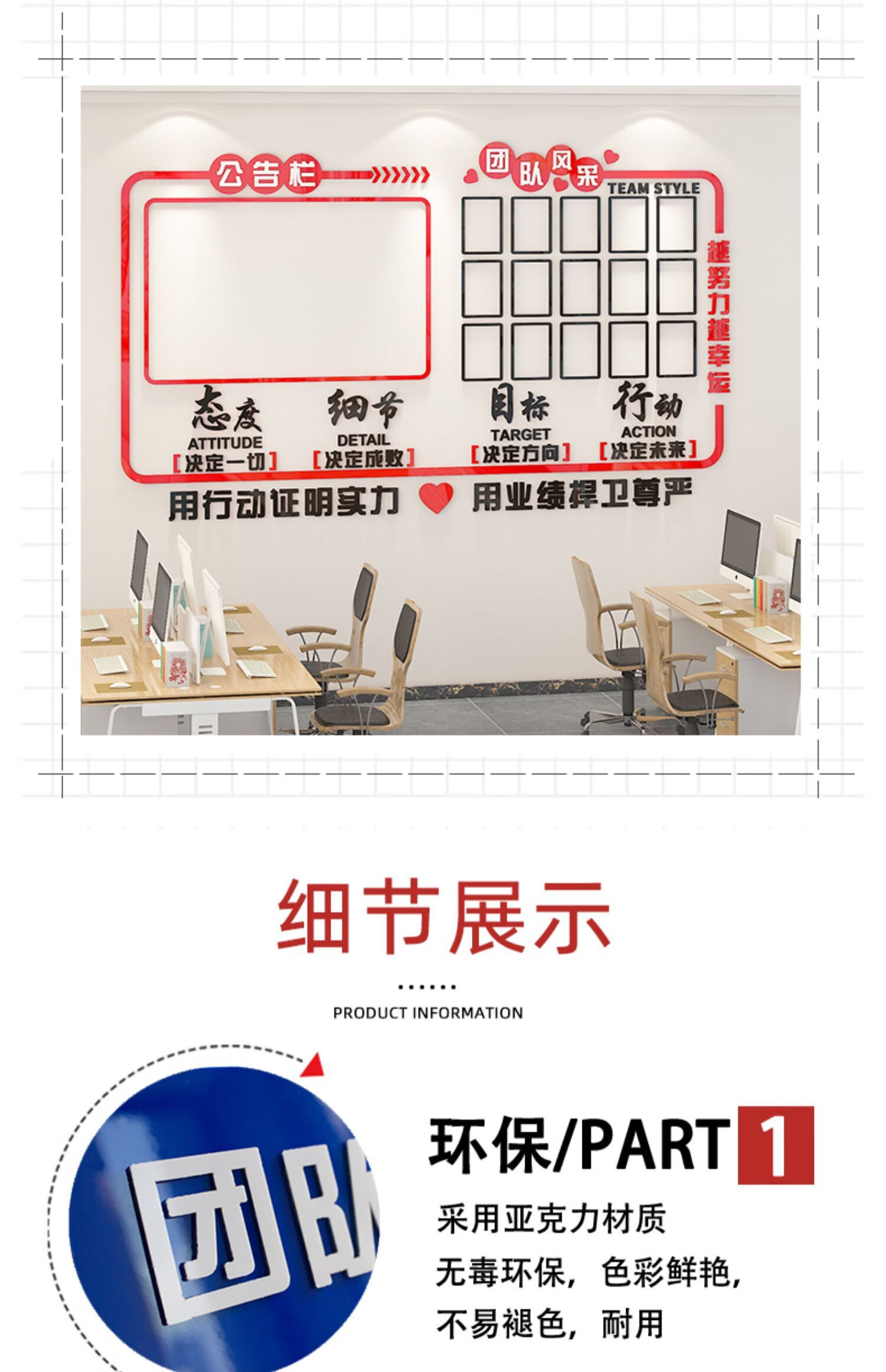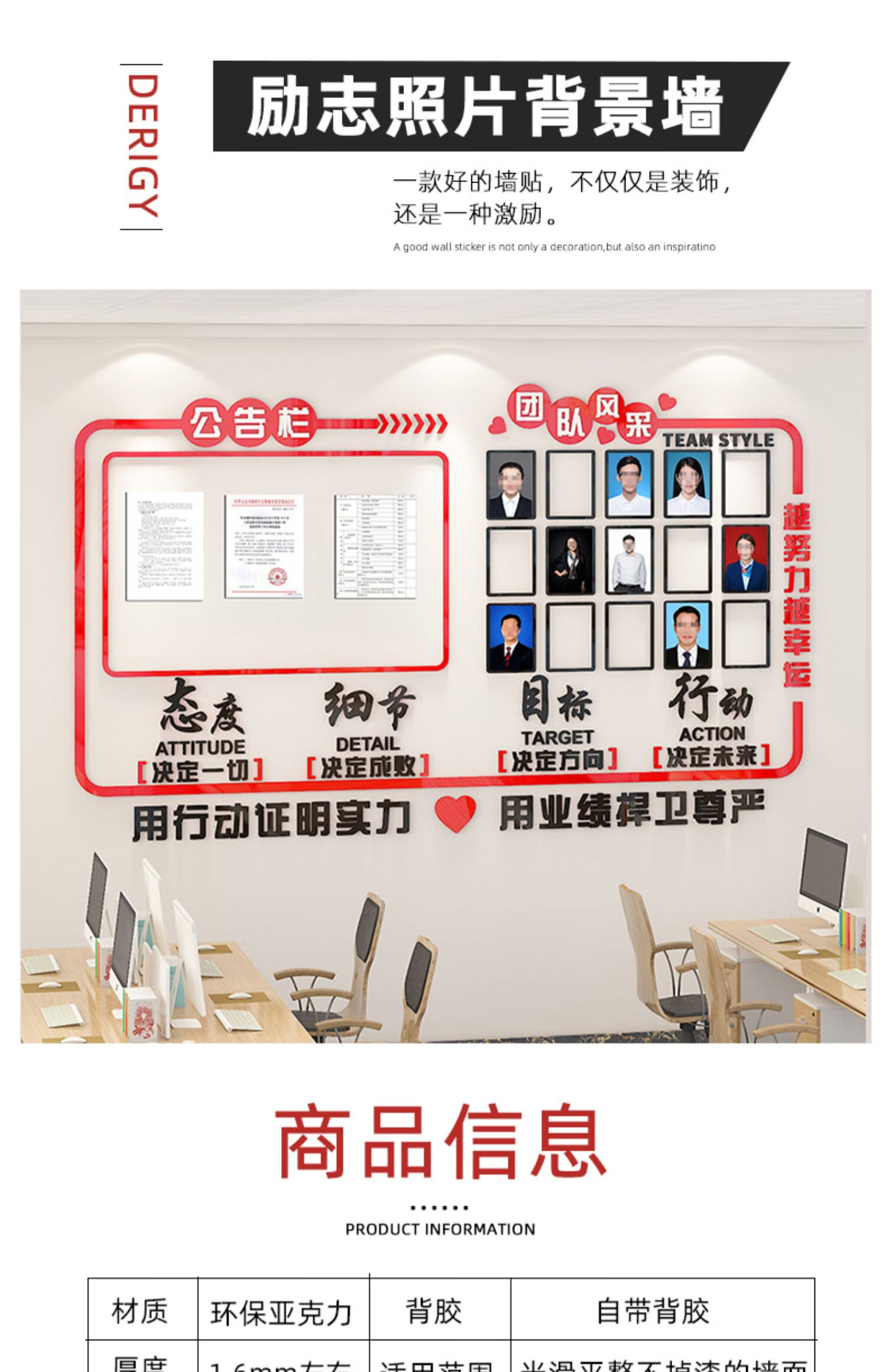 Chengliu Firmen-Pinnwand, Team-Stil, Display, Fotowand, Mitarbeitermotivation, Unternehmenskultur, Wand, Büro, Wanddekoration, 3879-a, Acryl, groß