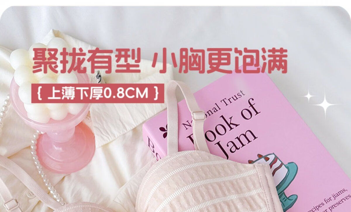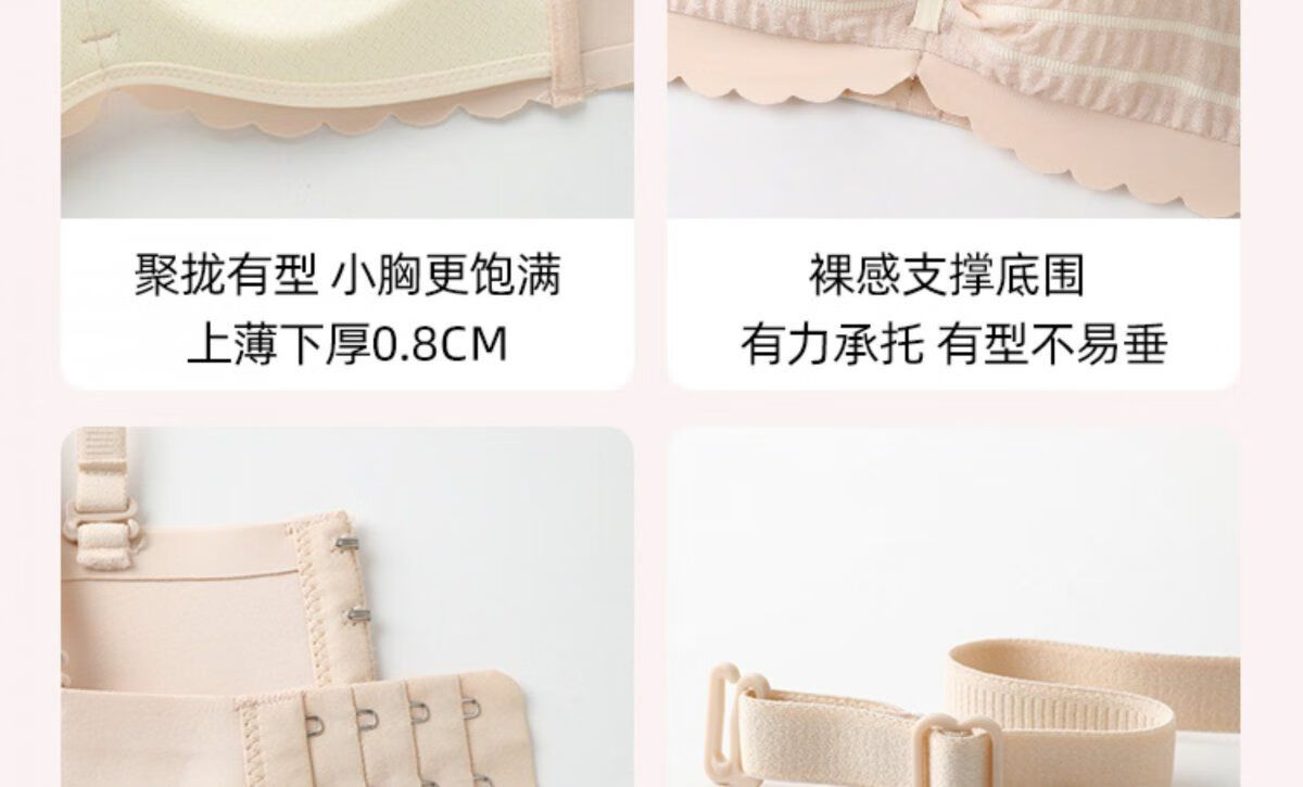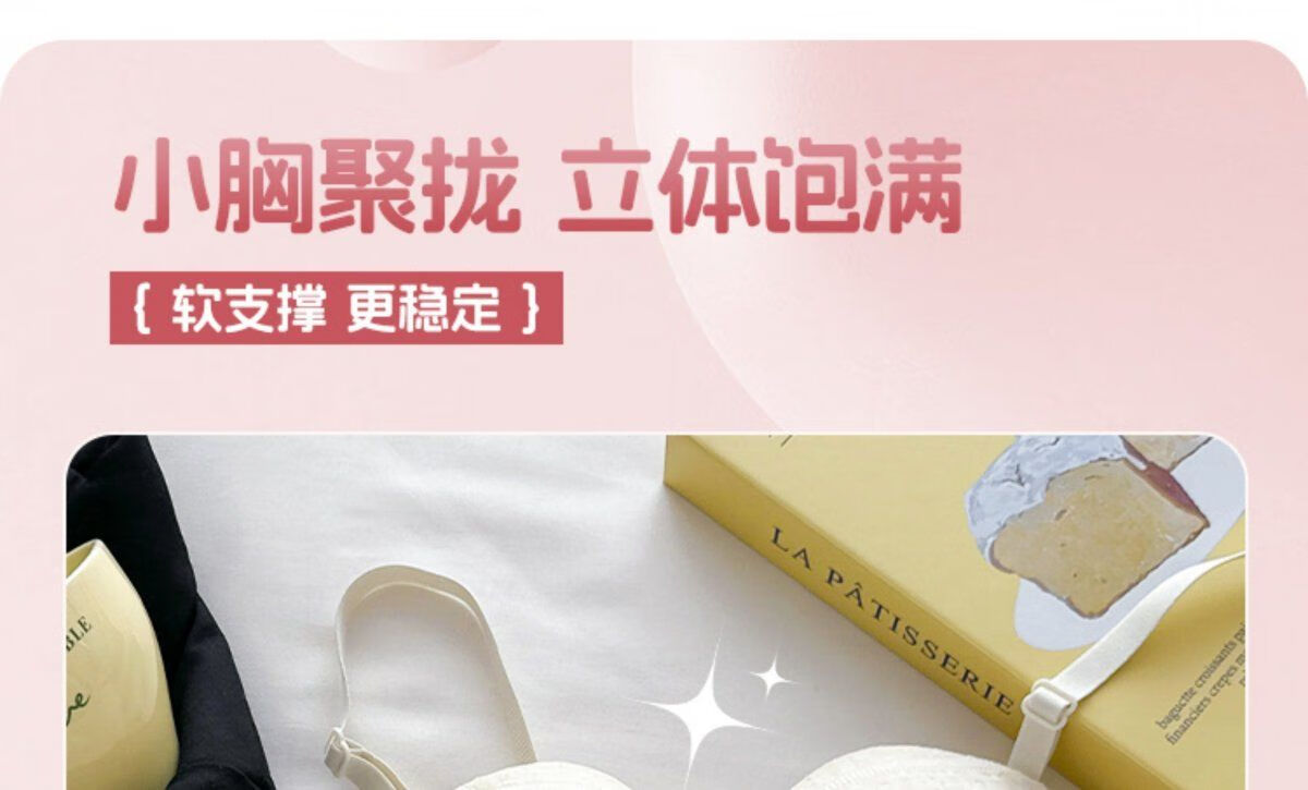 六只兔子性感半杯内衣女小胸聚拢显大防下垂舒适无钢圈甜美文胸罩 粉色 S 70AB